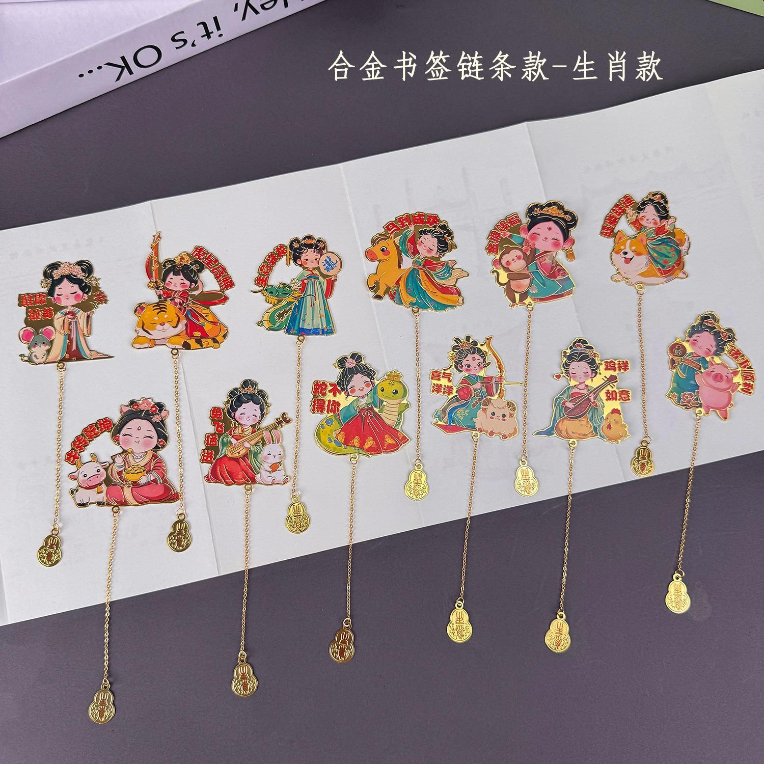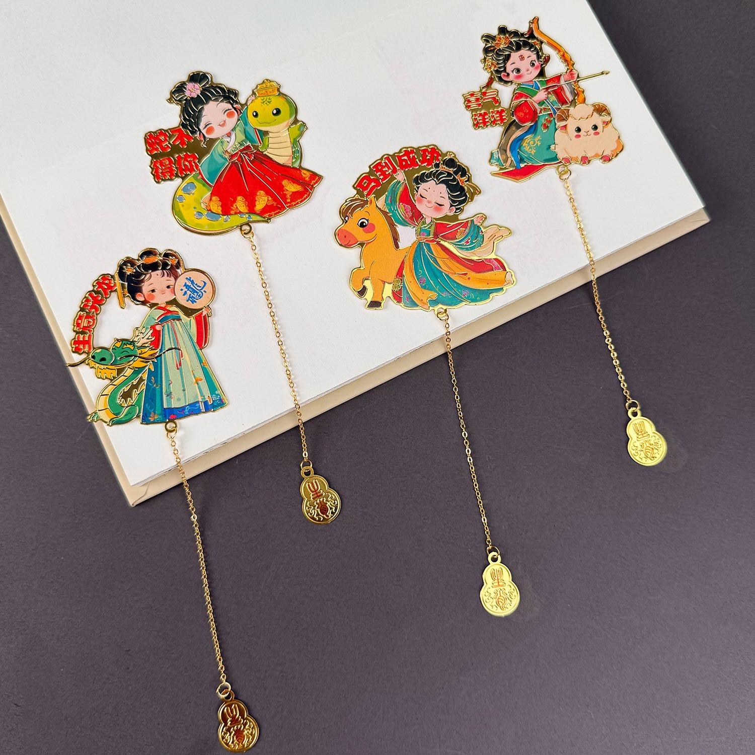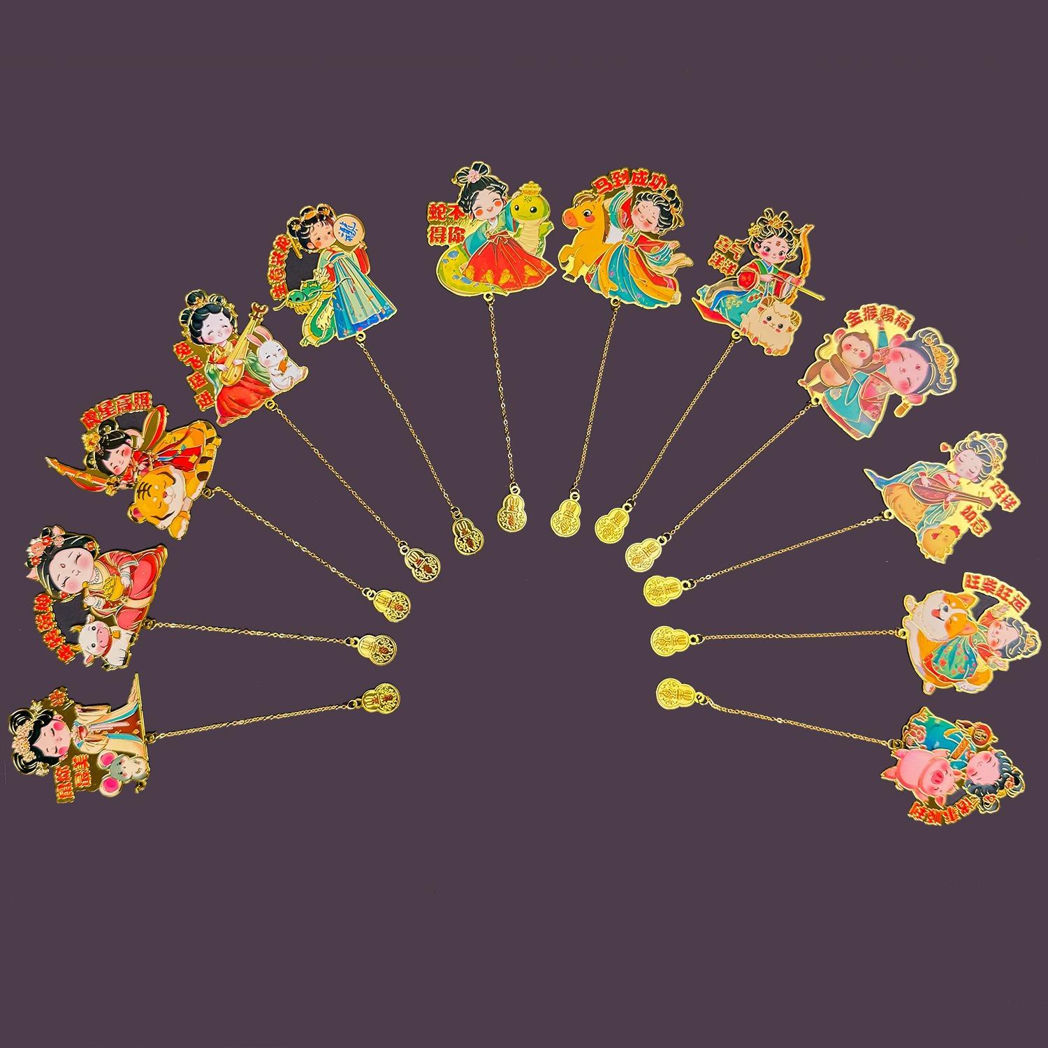 Marcapáginas de metal antiguo creativo con colgante del zodiaco, marcapáginas de metal, marcapáginas creativo de estilo chino retro, marcapáginas de recuerdo.