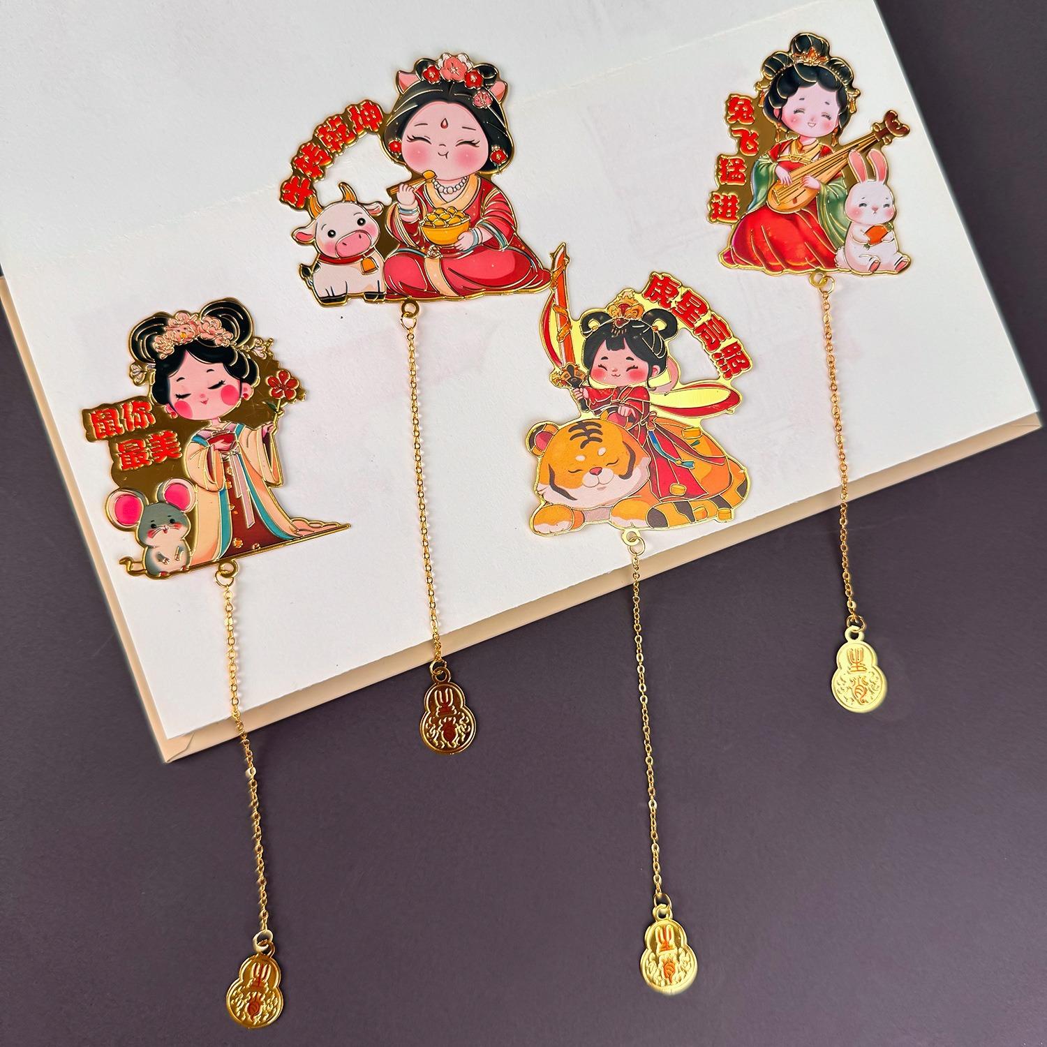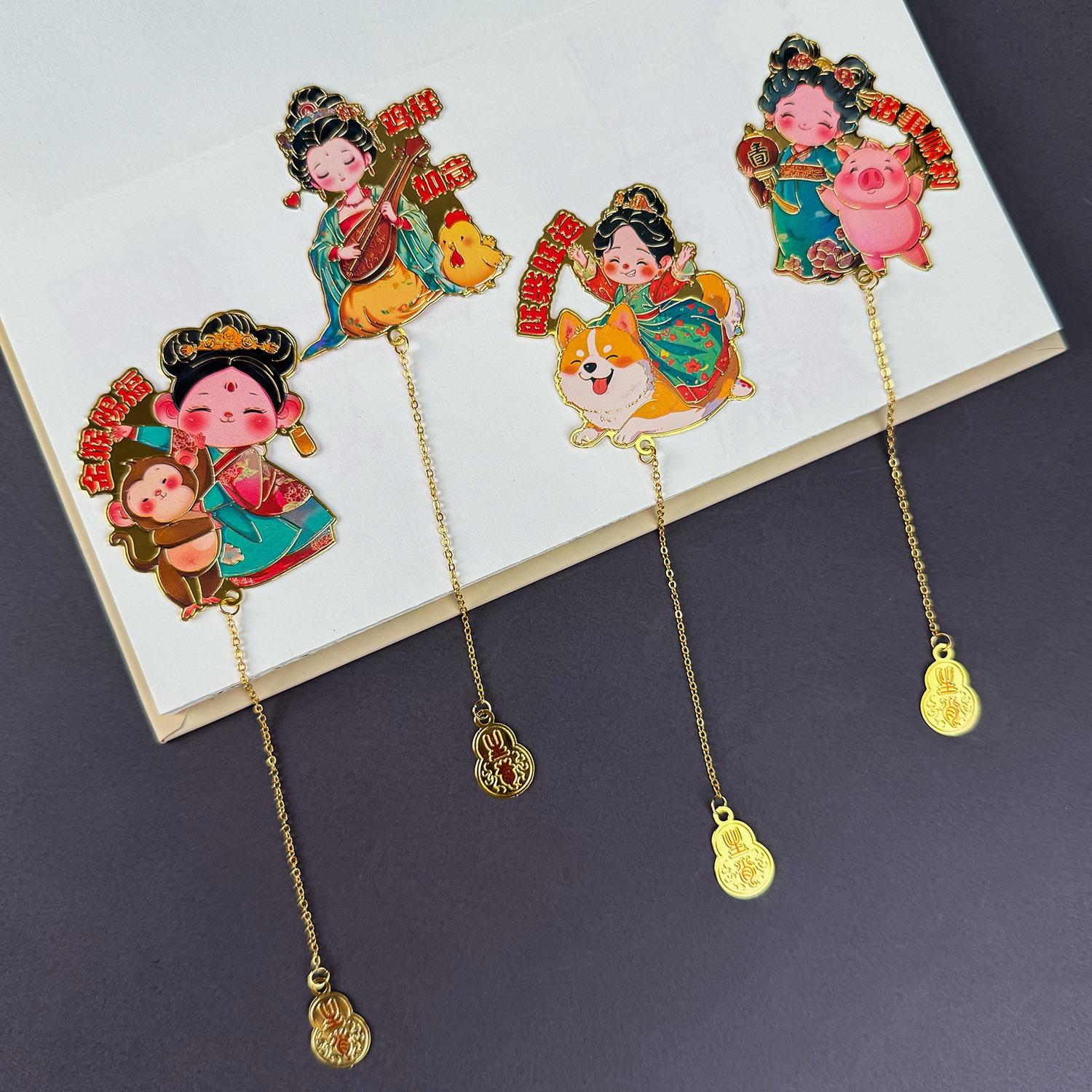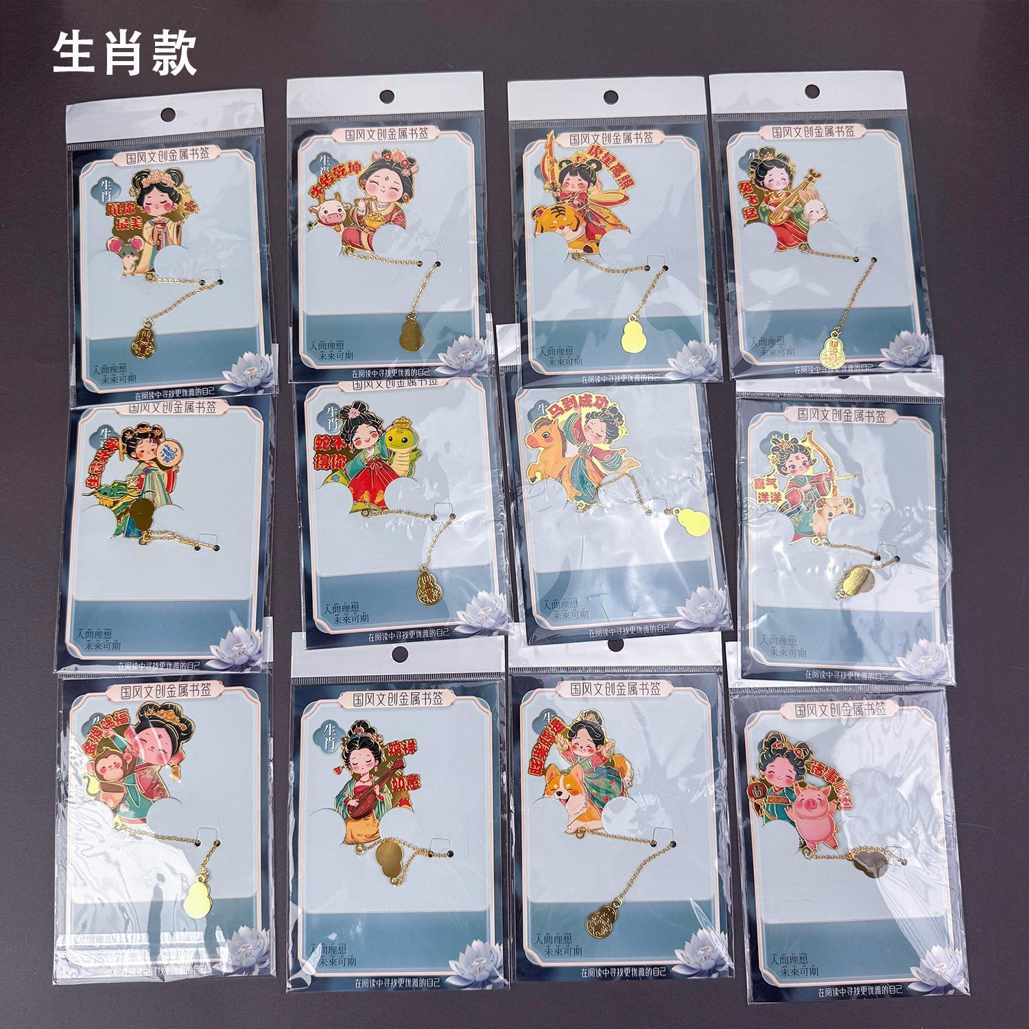 Marcapáginas de metal antiguo creativo con colgante del zodiaco, marcapáginas de metal, marcapáginas creativo de estilo chino retro, marcapáginas de recuerdo.