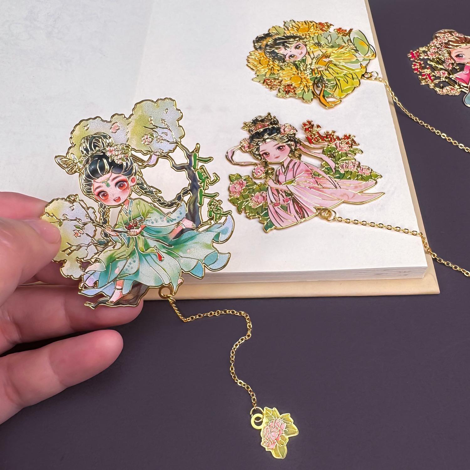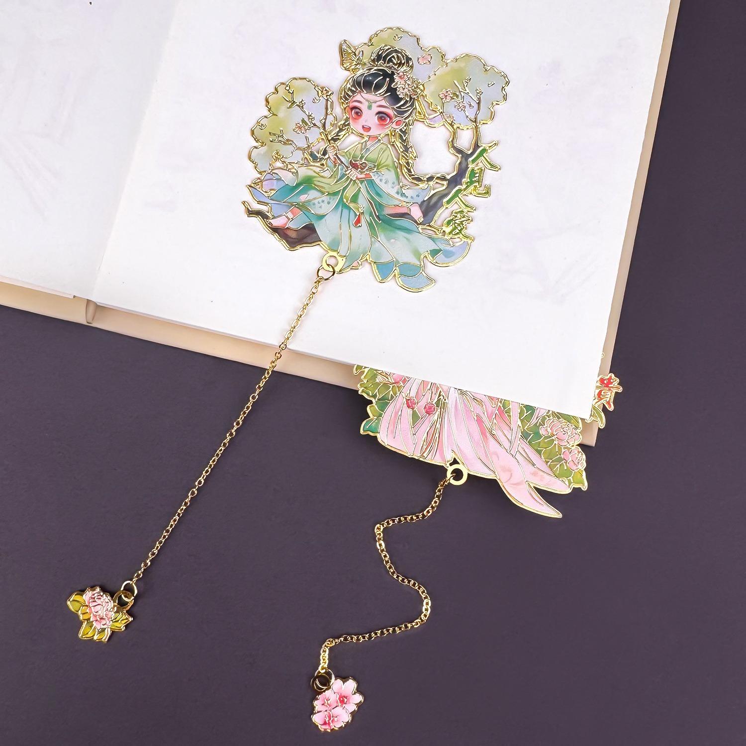 L alloy bookmark chain terms-flowers bloom and wealth, L alloy bookmark chain style-peach blossom luck, L allo...