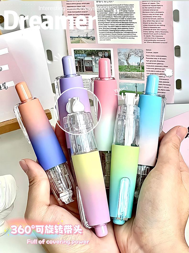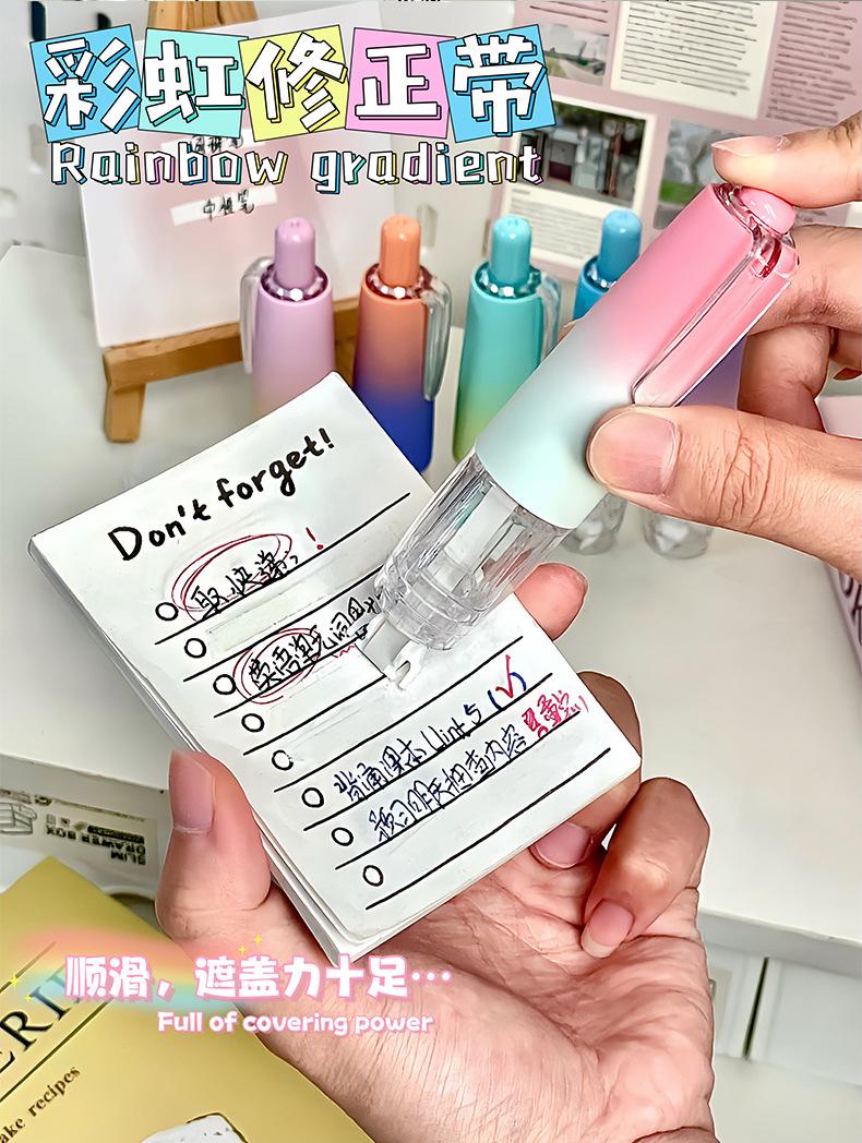 Cinta correctora tipo push cinta correctora arcoíris cinta correctora de alto valor de color cinta correctora para estudiantes de primaria núcleo reemplazable
