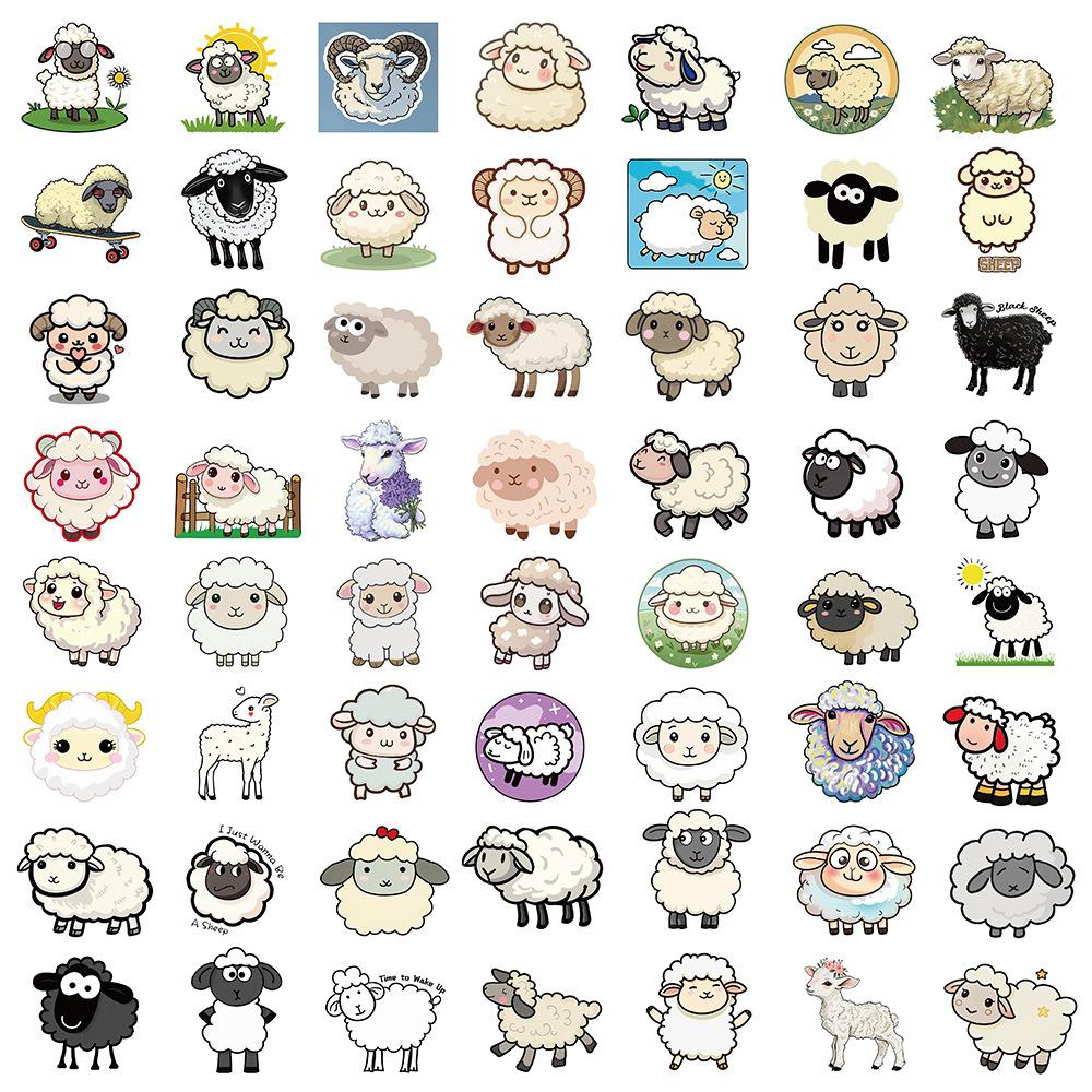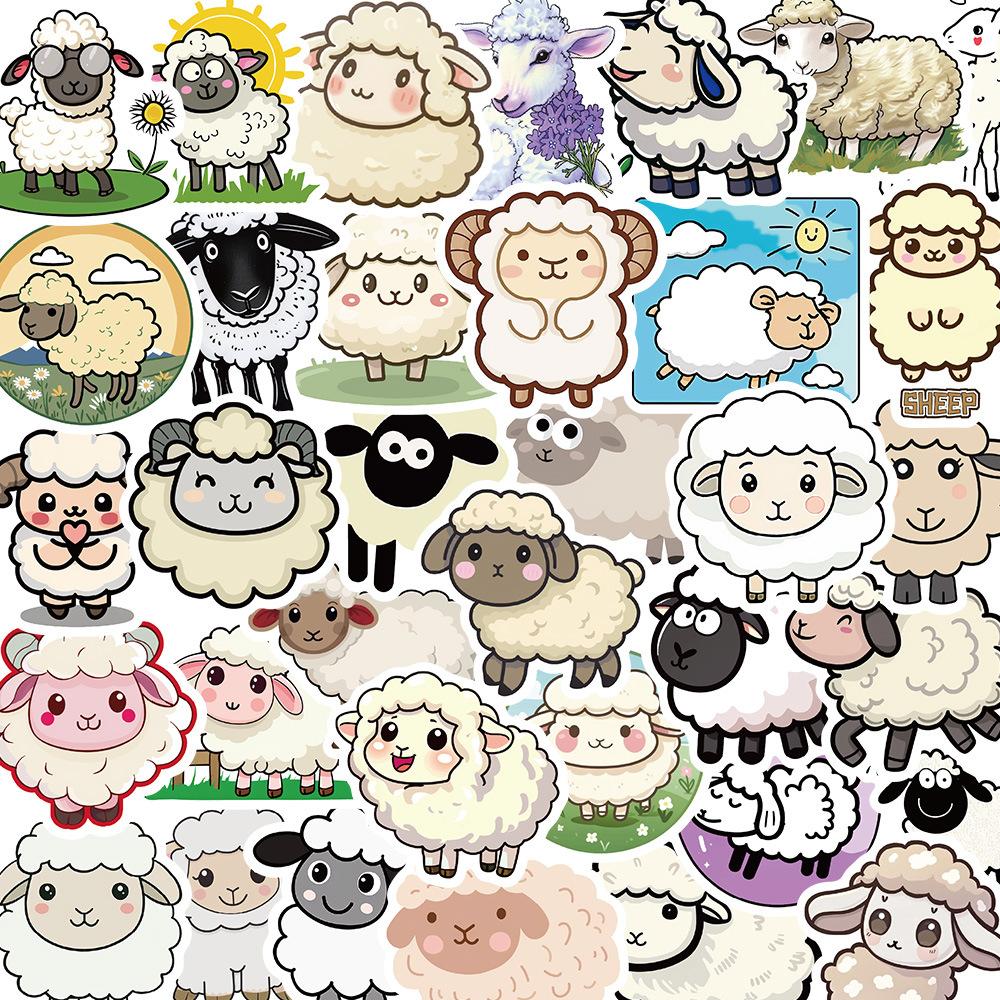 50 pegatinas de cordero, lindos dibujos animados, grafiti, bricolaje, cuenta de mano, teléfono móvil, cuaderno, taza, decoración, pegatinas impermeables