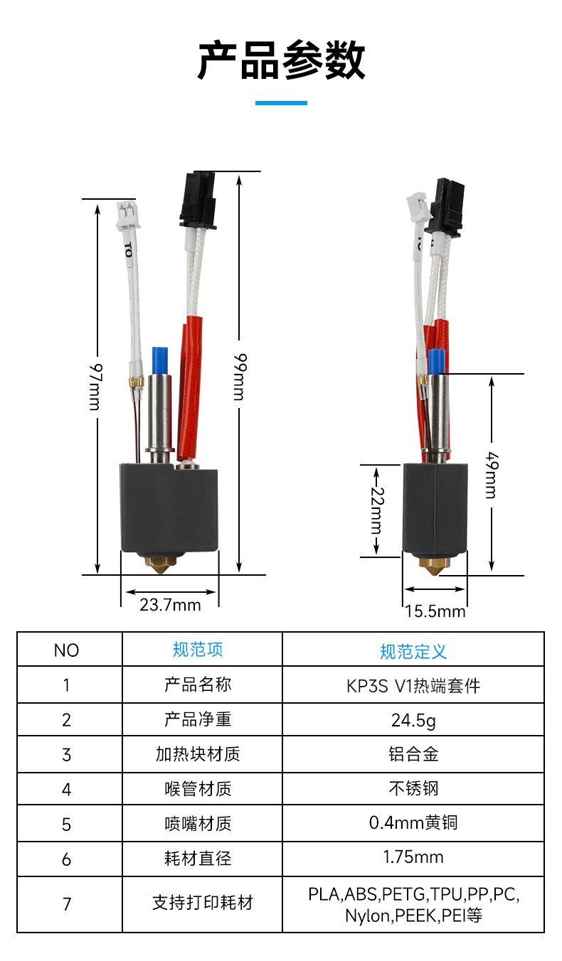 Accesorios para impresora 3D Kit de extremo caliente Kai Pang KP3S V1