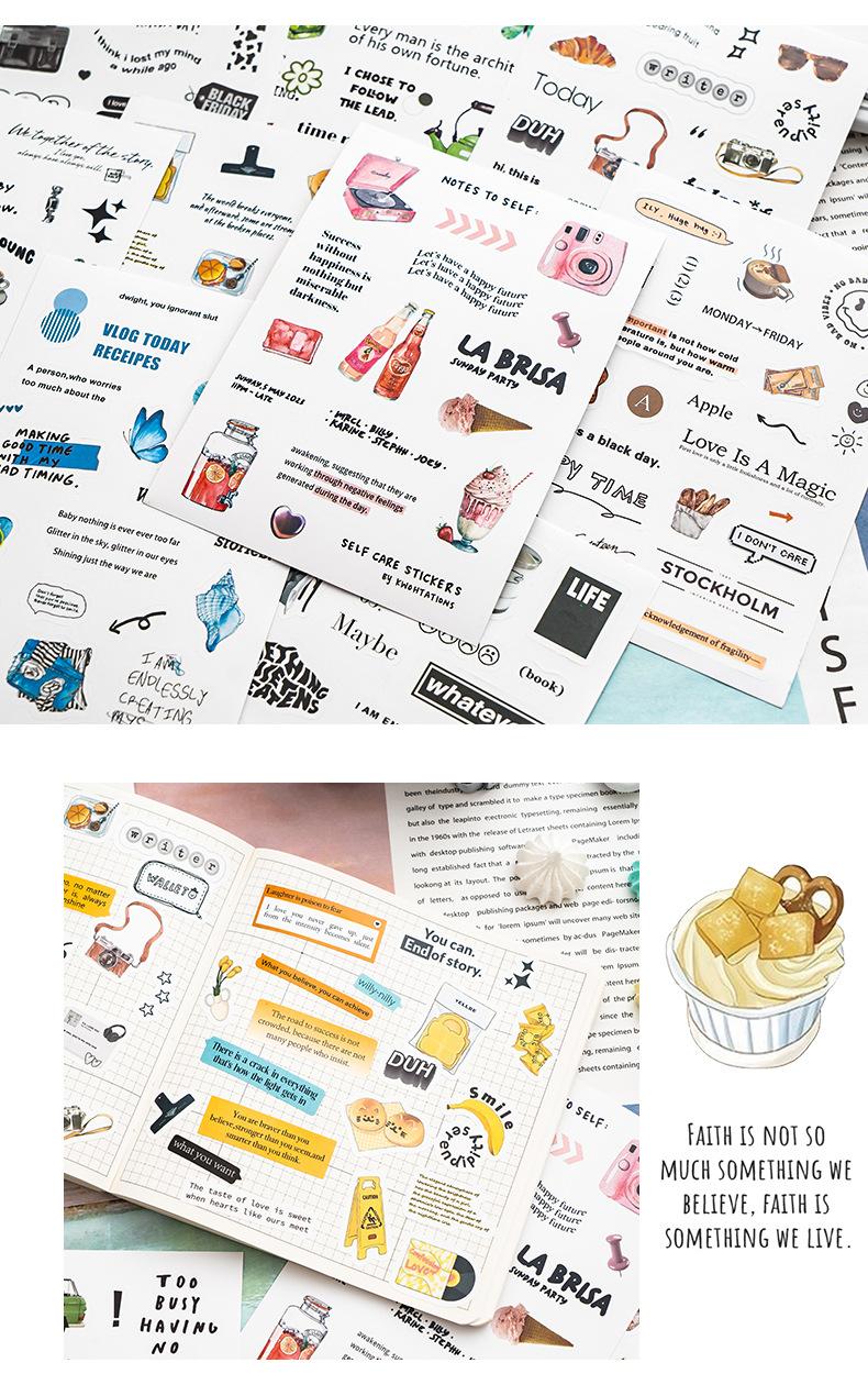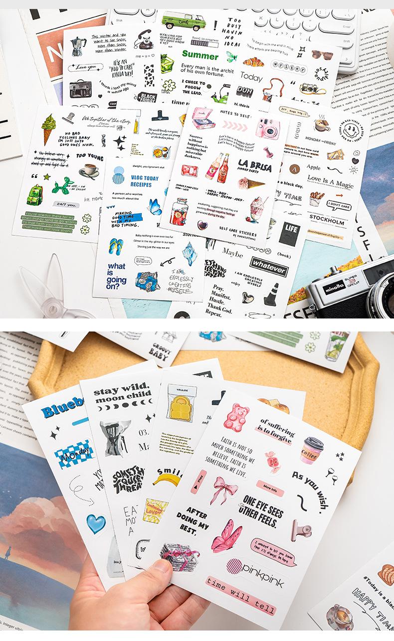 Pegatina de artista de la vida sin cortar, cuenta de mano en inglés, material de decoración creativo, bricolaje, taza, funda de teléfono móvil, pegatina de cuenta de mano