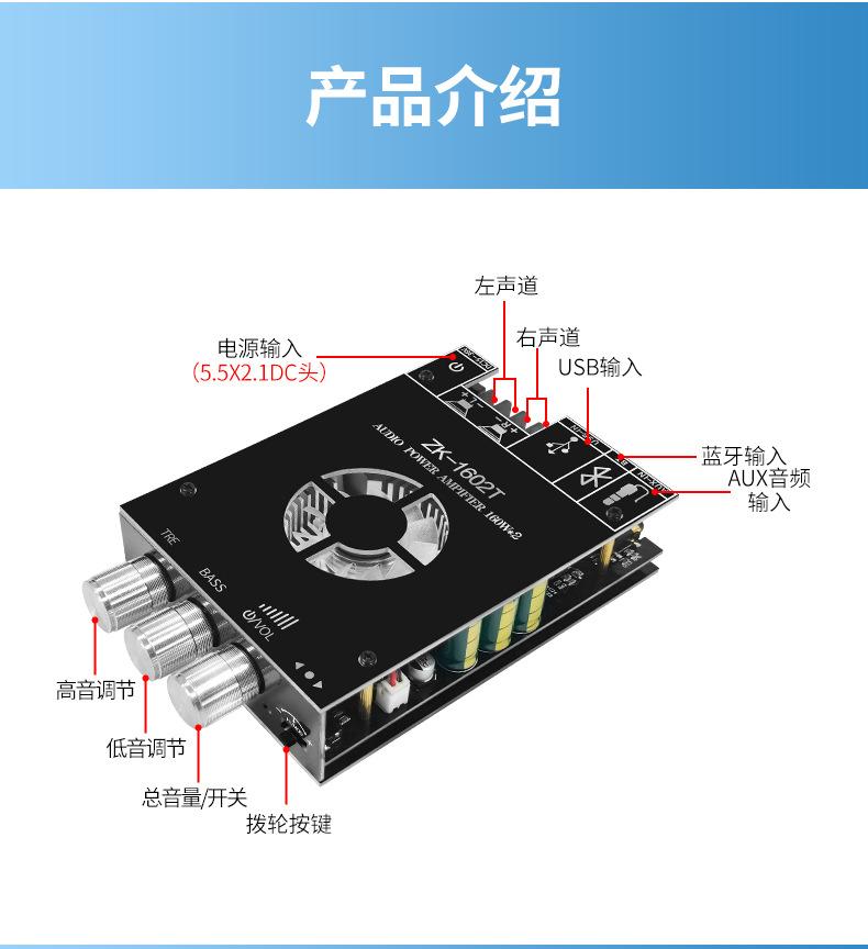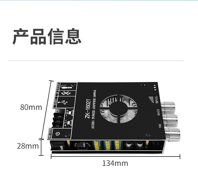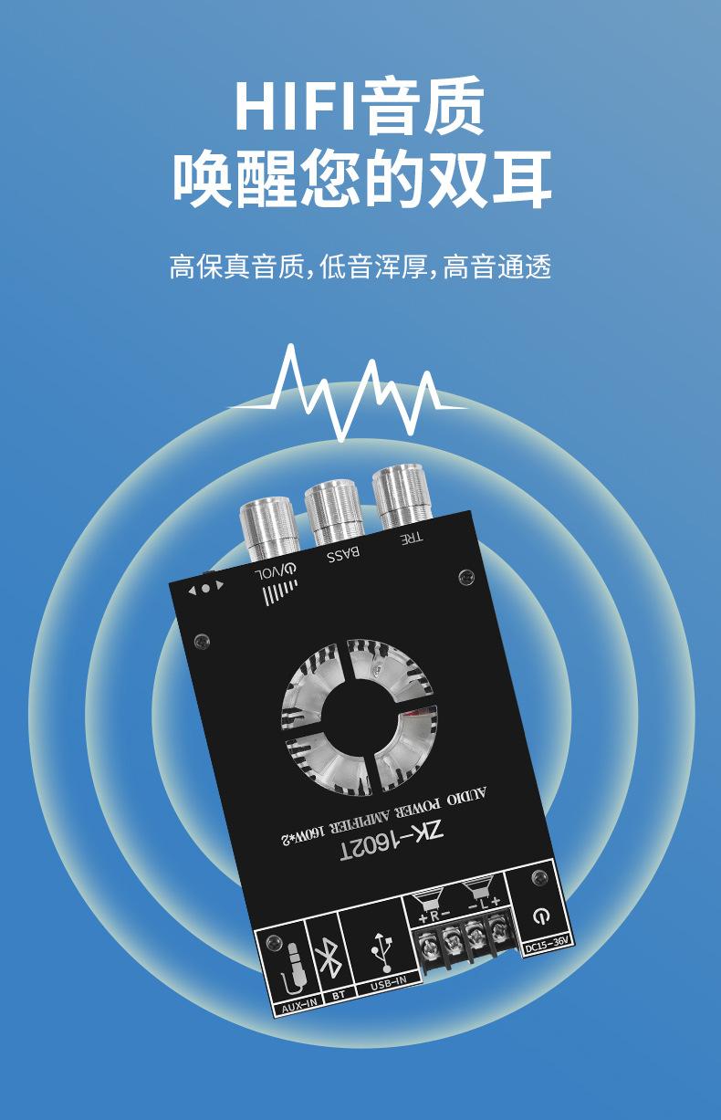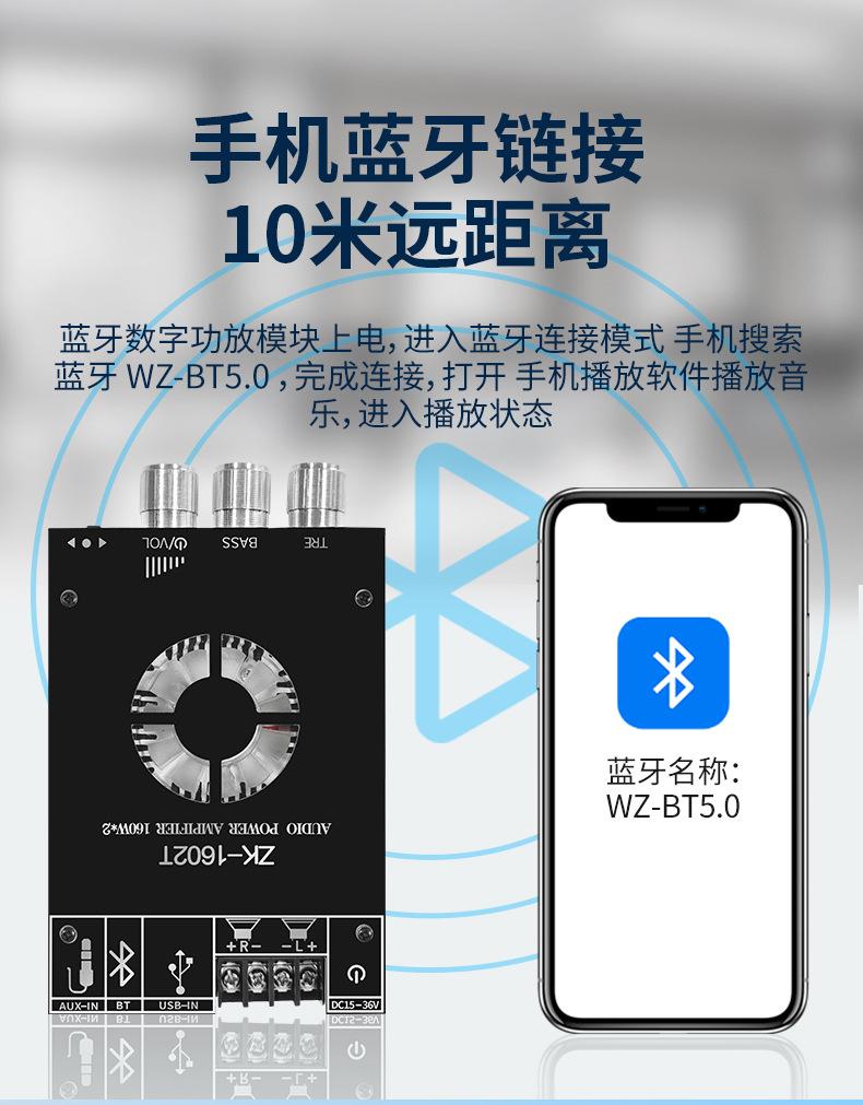 Módulo amplificador digital Bluetooth ZK-1602T TDA7498E Ajuste de graves Neutral de audio Bluetooth. Sin registro