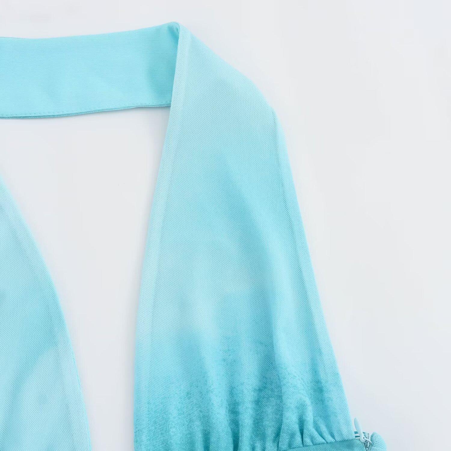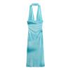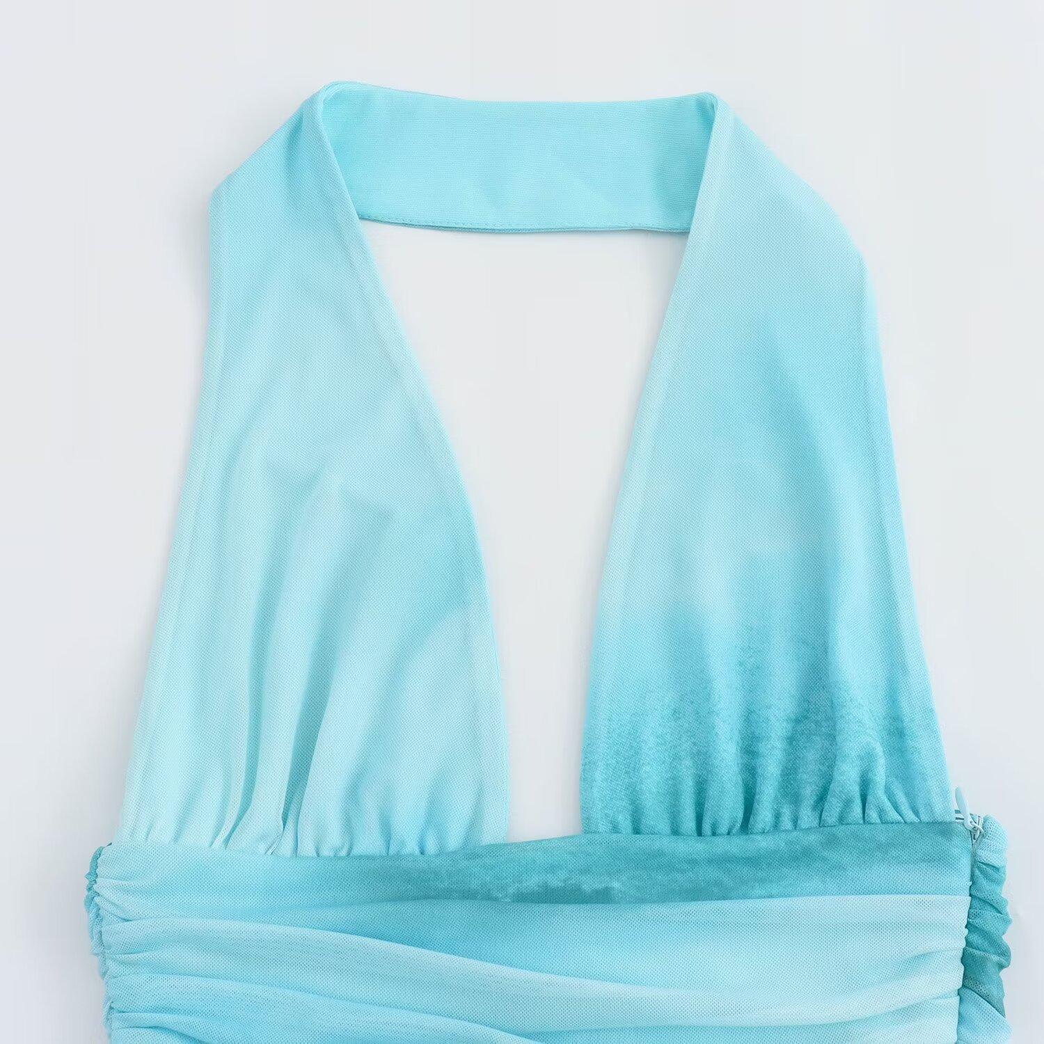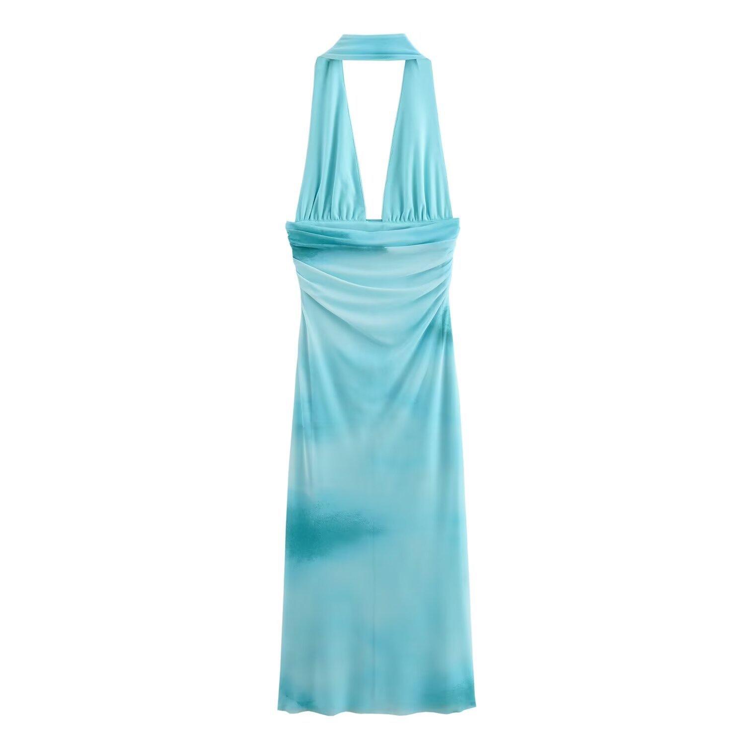 Venta al por mayor de ropa europea y americana transfronteriza Vestido de malla de verano con temperamento europeo y americano estampado con cuello halter