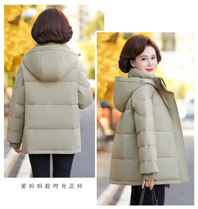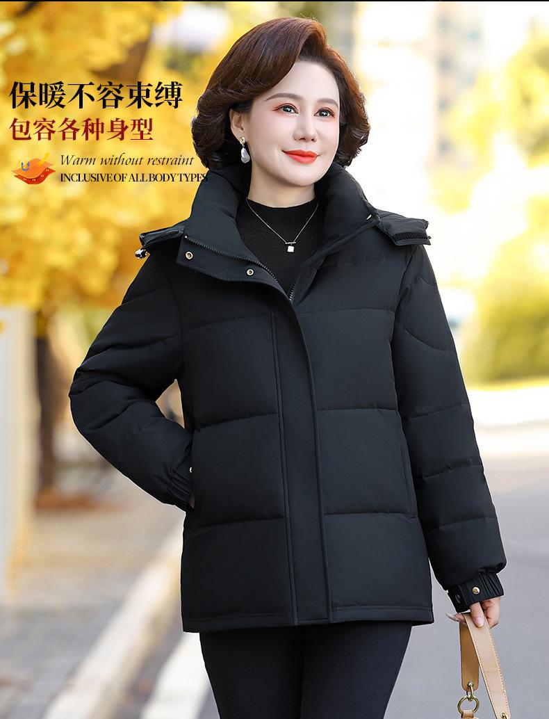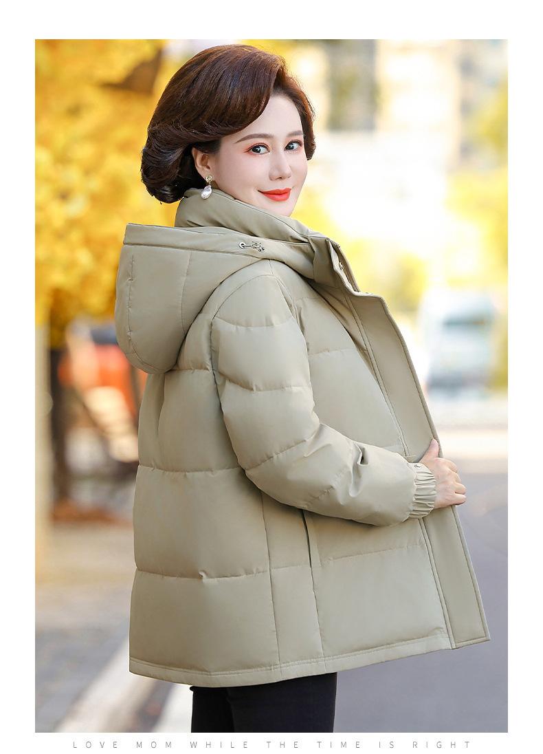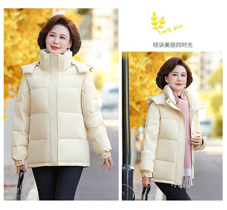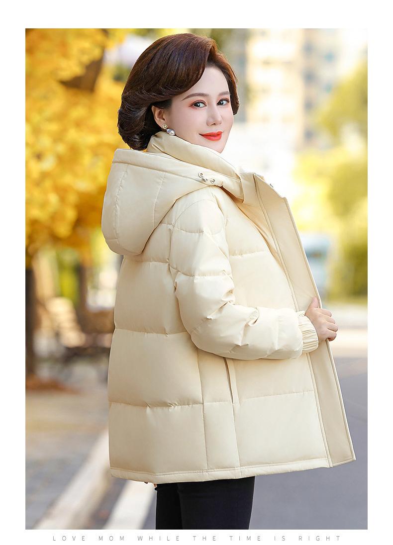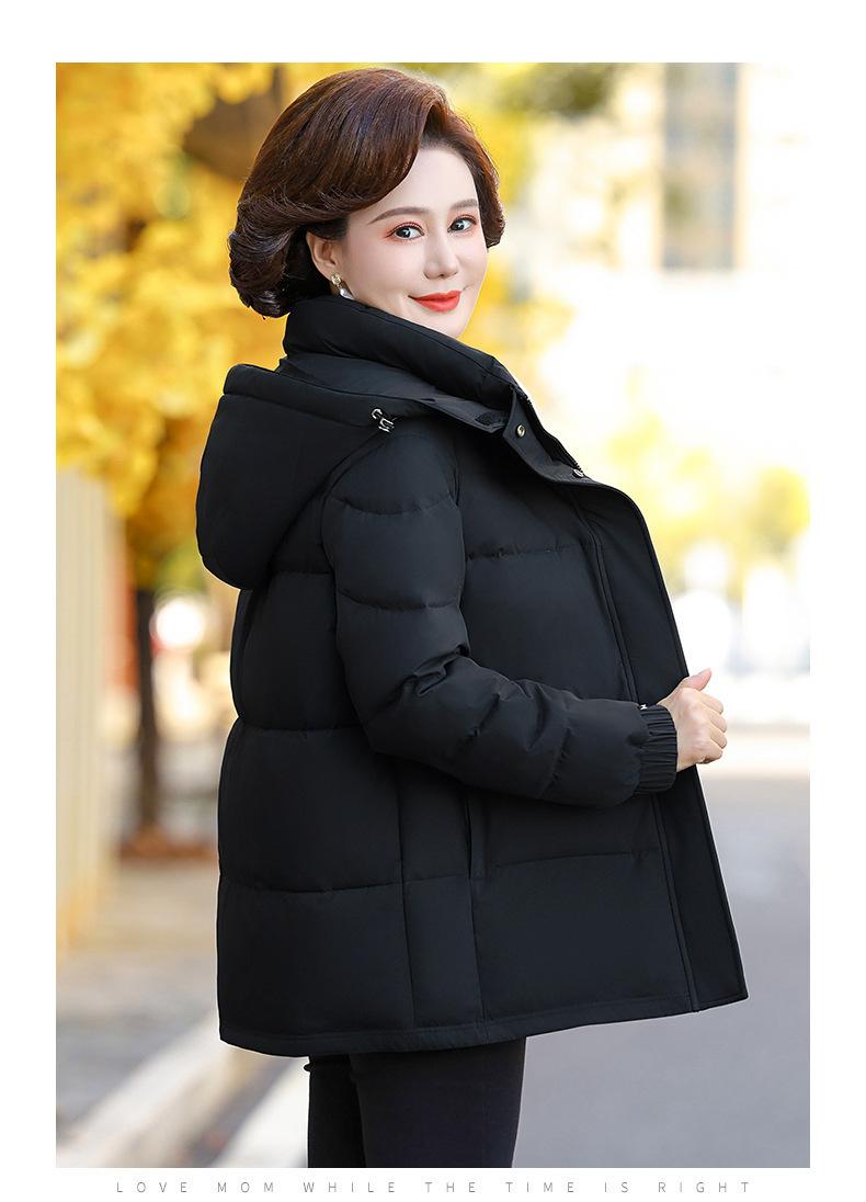Chaqueta de plumón de invierno con capucha de estilo occidental para madres, nueva para mujeres de mediana edad y mayores, de talla grande, corta, gruesa, holgada, 2024