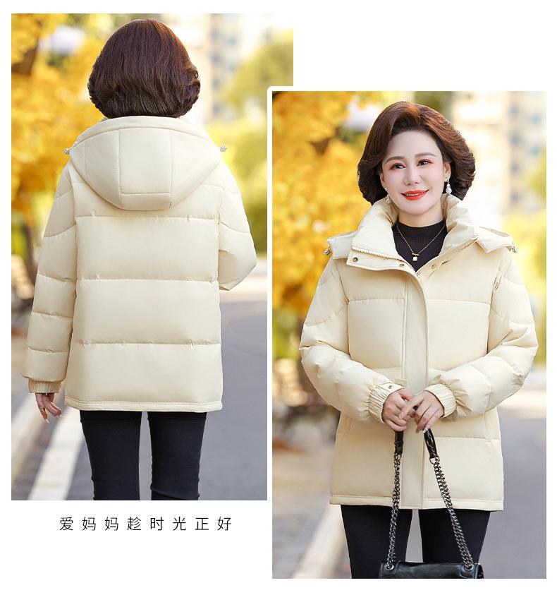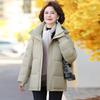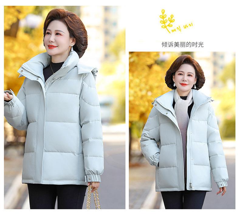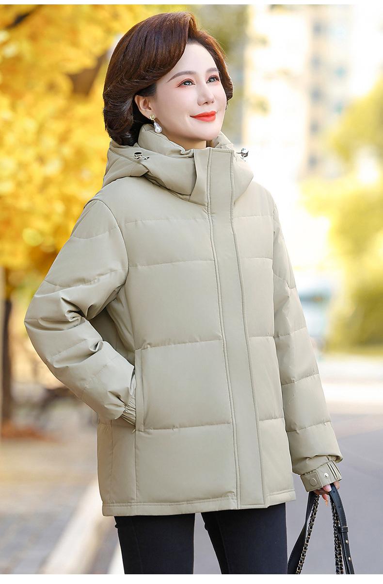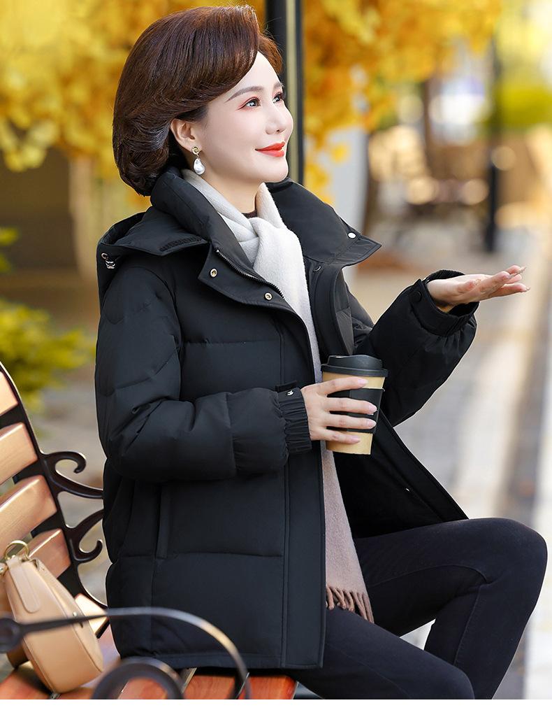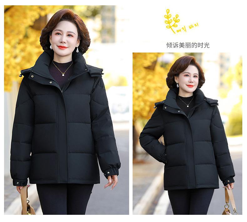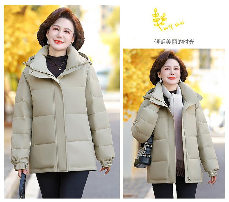 Chaqueta de plumón de invierno con capucha de estilo occidental para madres, nueva para mujeres de mediana edad y mayores, de talla grande, corta, gruesa, holgada, 2024