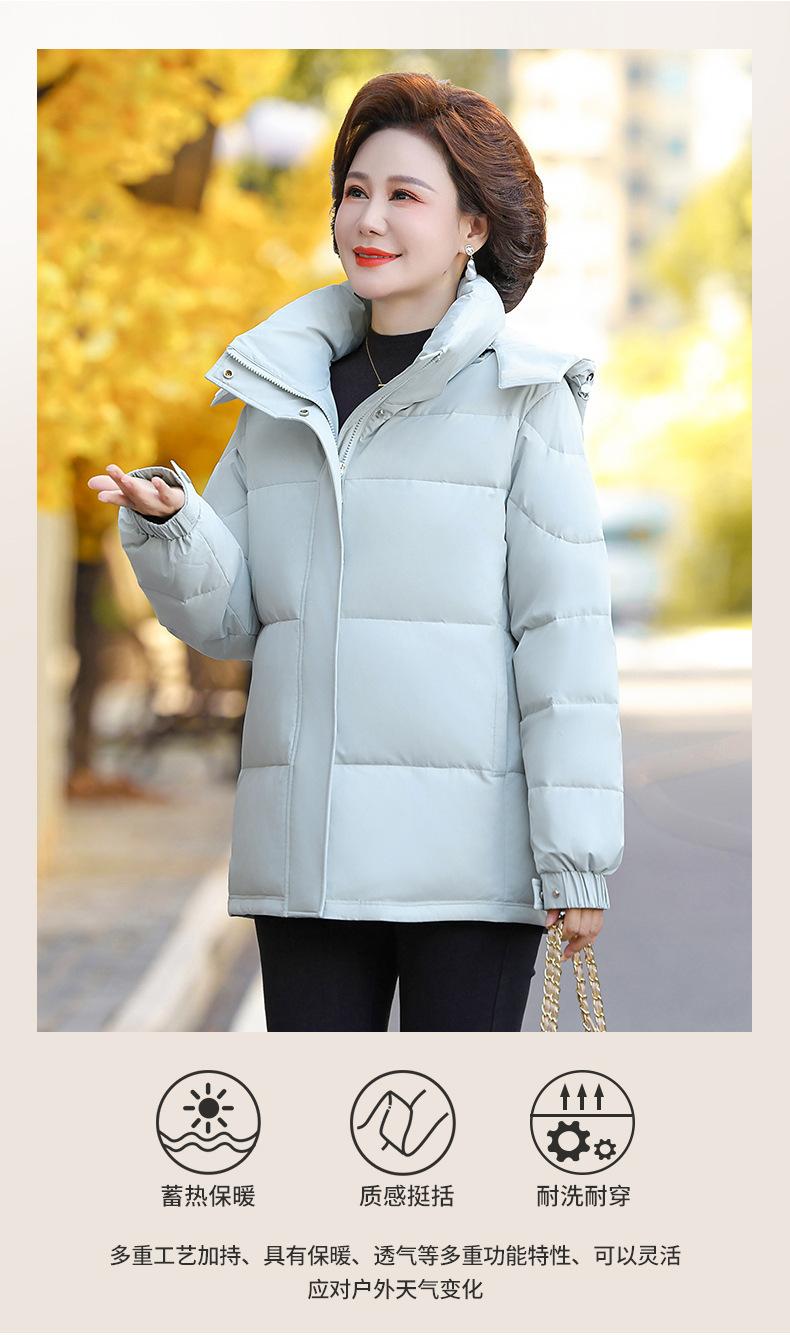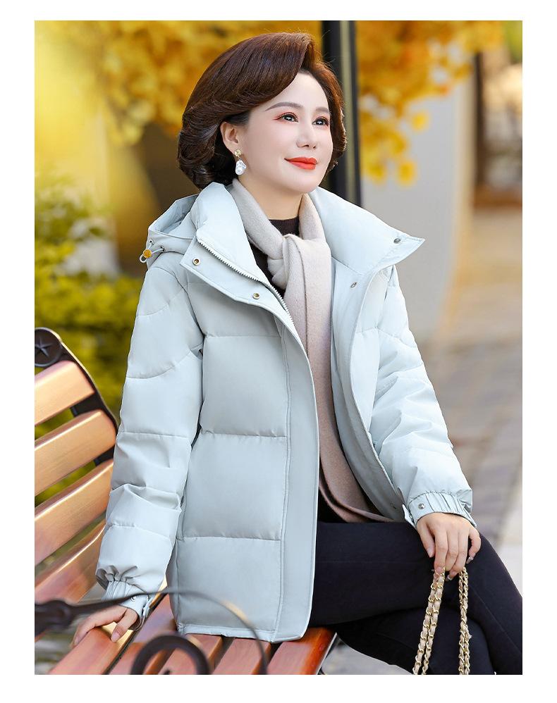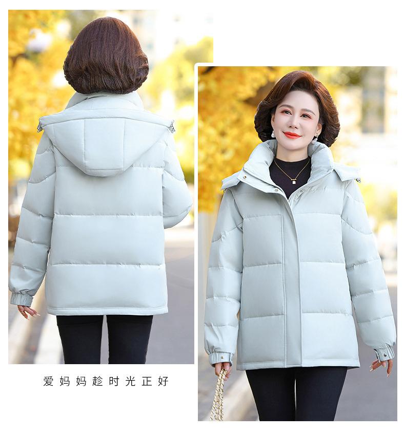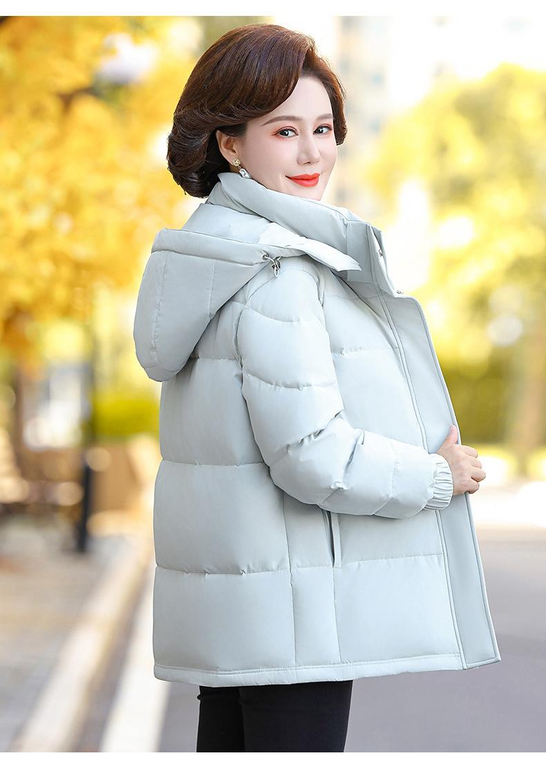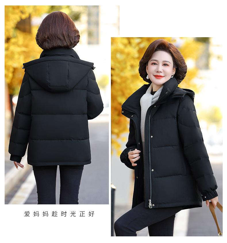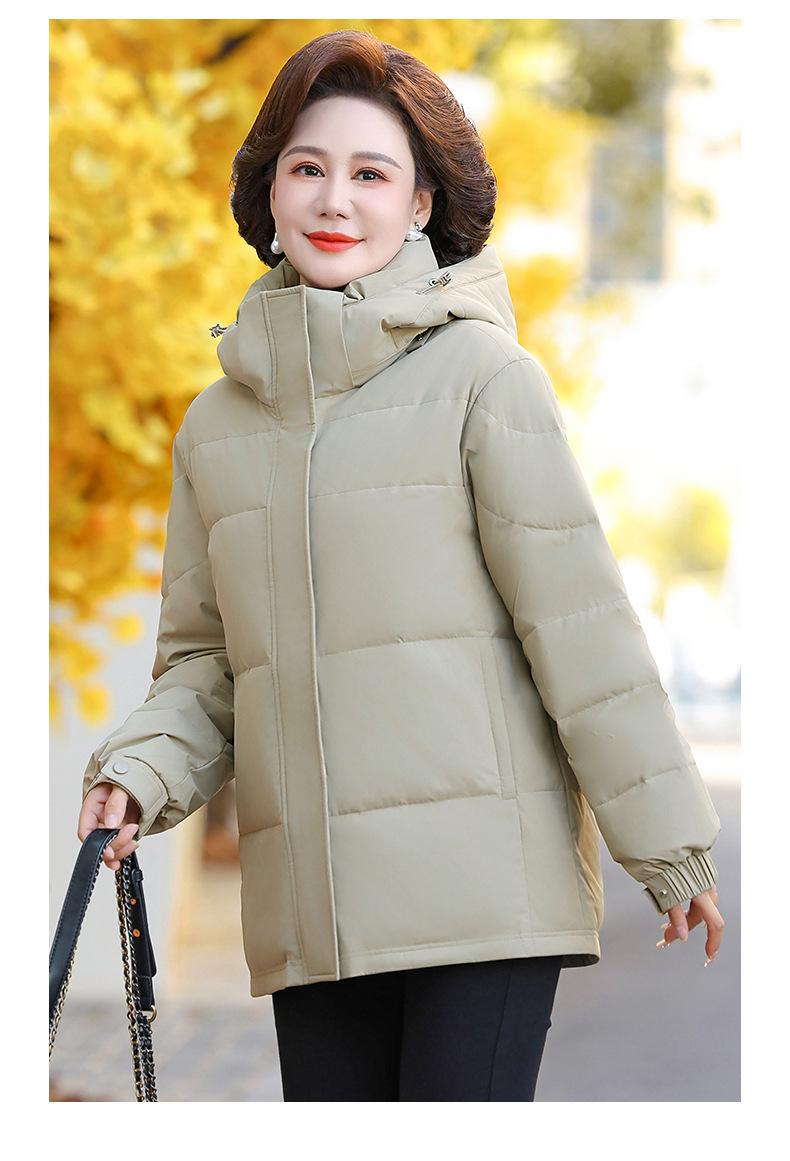 Chaqueta de plumón de invierno con capucha de estilo occidental para madres, nueva para mujeres de mediana edad y mayores, de talla grande, corta, gruesa, holgada, 2024