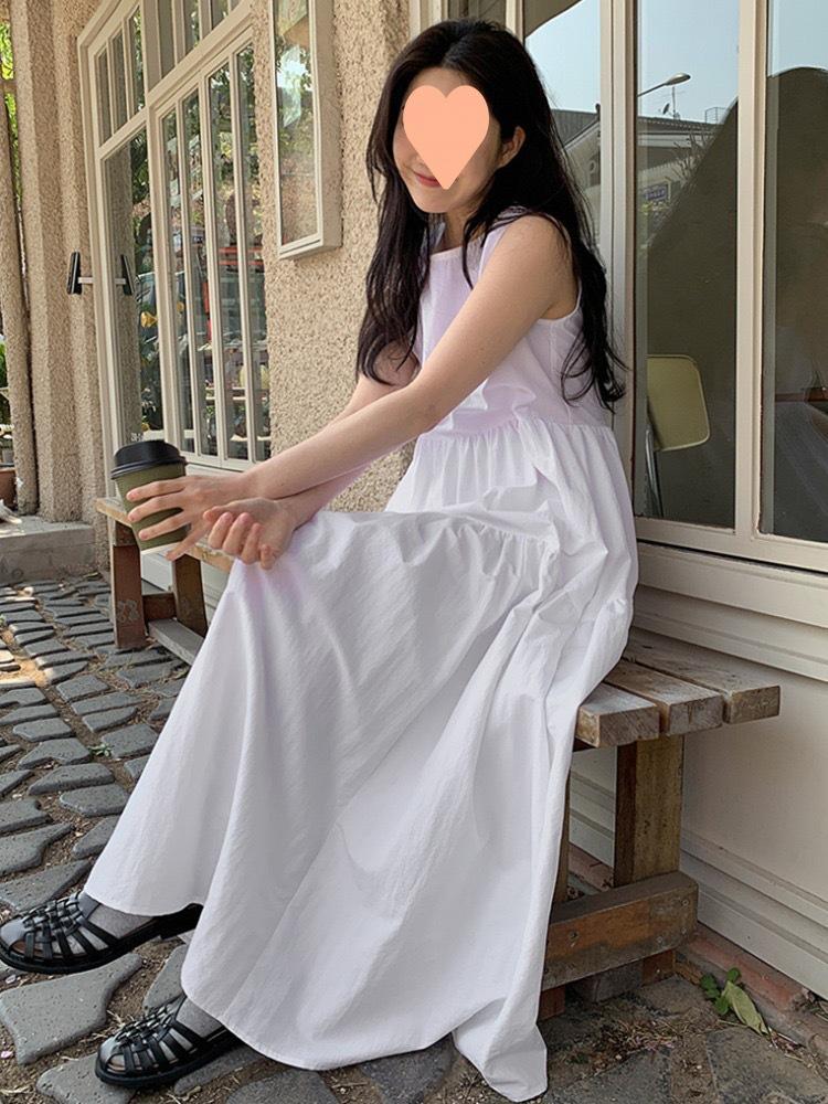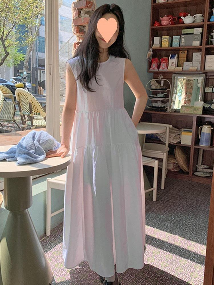 Vestido de verano minimalista francés para niña, plisado, holgado, ajustado, sin mangas, estilo pastel
