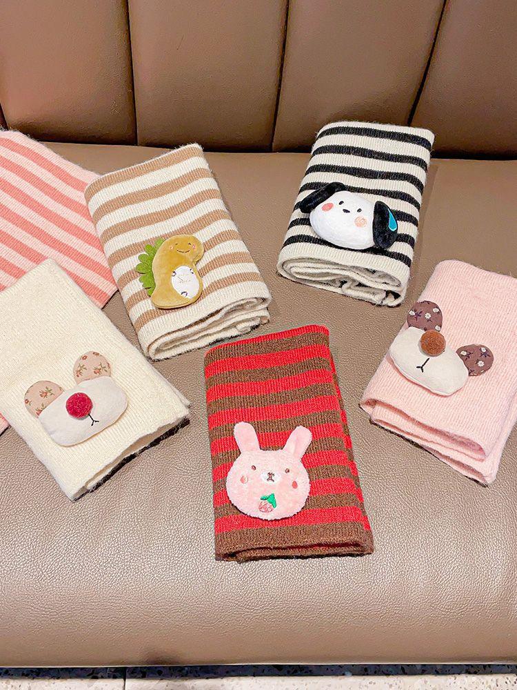 Brown and green bear scarf [children's belt for men and women], Black and white puppy scarf [children's belt f...