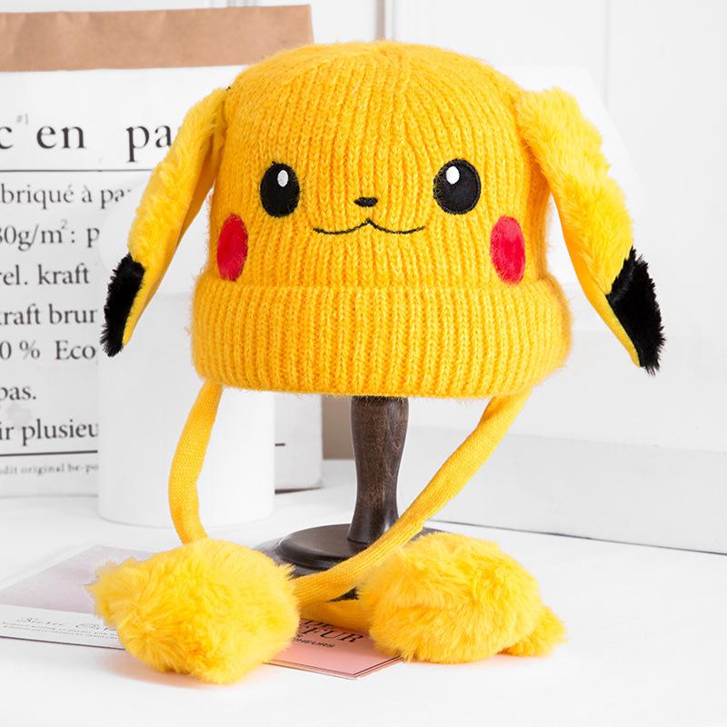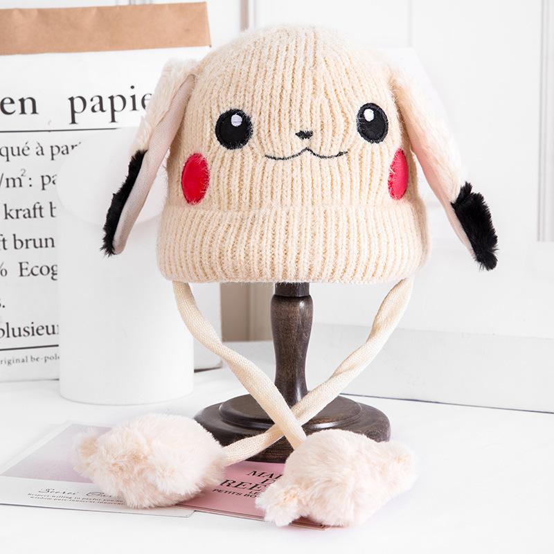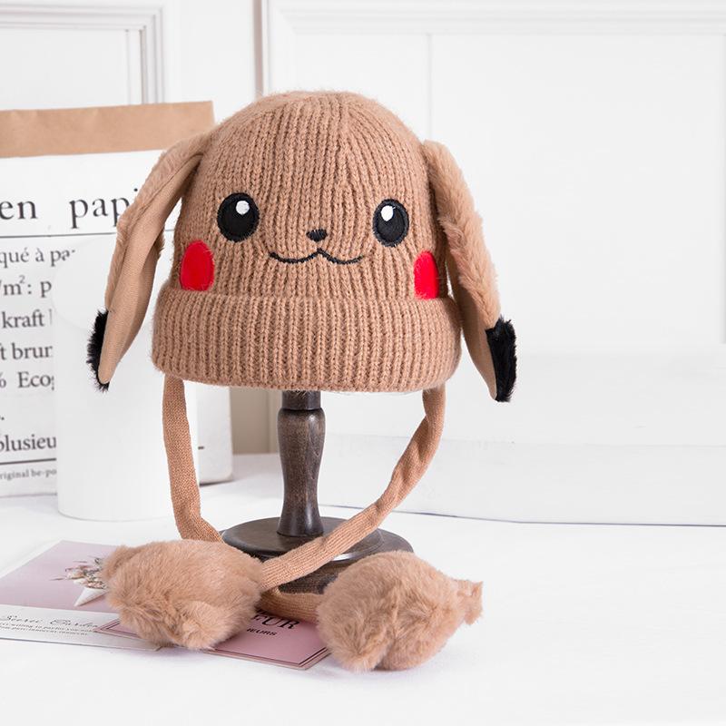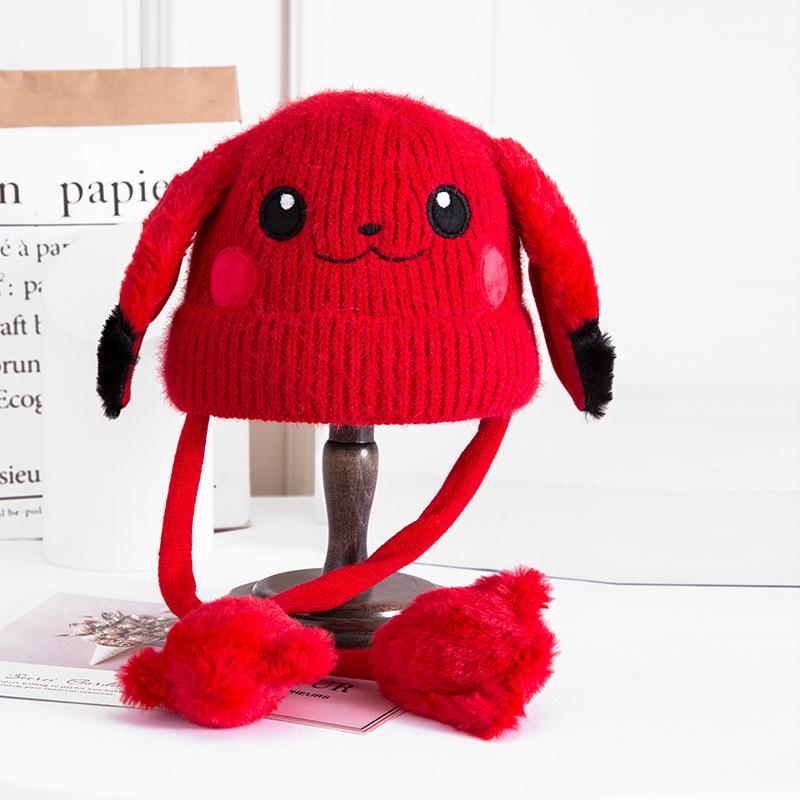 Gorro de lana con orejas móviles de dibujos animados para niños de 3 a 8 años, bonito y súper lindo, tejido para niños y niñas.