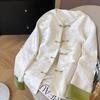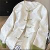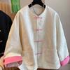 Nuevo abrigo de color contrastante jacquard con hebilla de estilo nacional ligero de estilo chino para mujer, primavera y otoño 2024, nueva camisa pequeña de alta calidad a la moda
