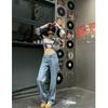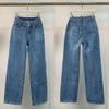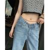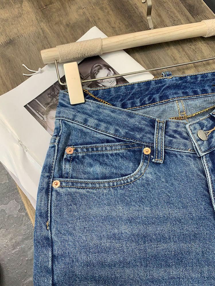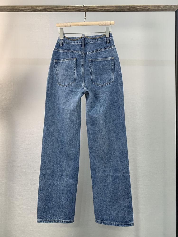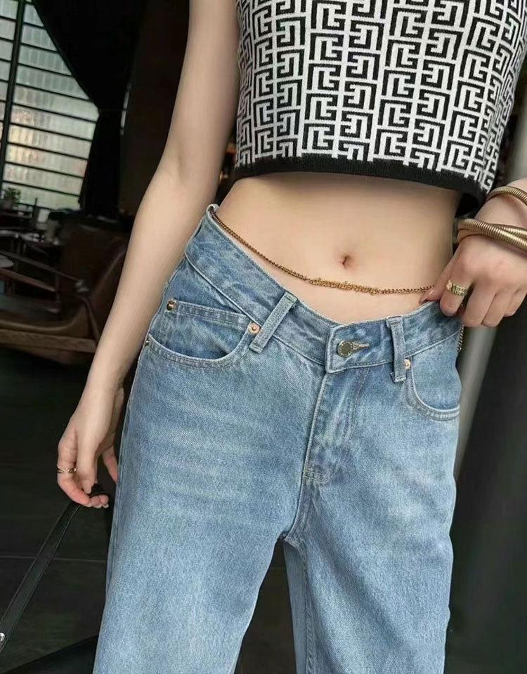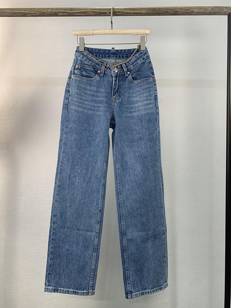 MetalJeans rectos de cintura en V para mujer con cadena de cintura