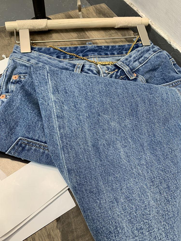 Cintura baja en forma de V, decorada con cadena de cintura metálica;