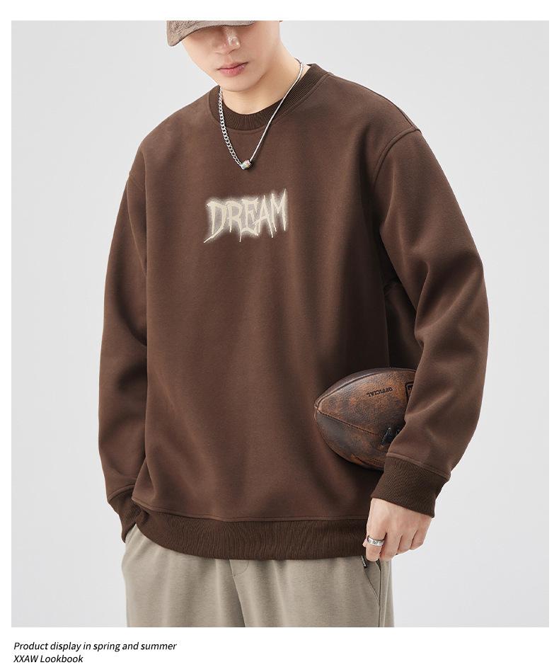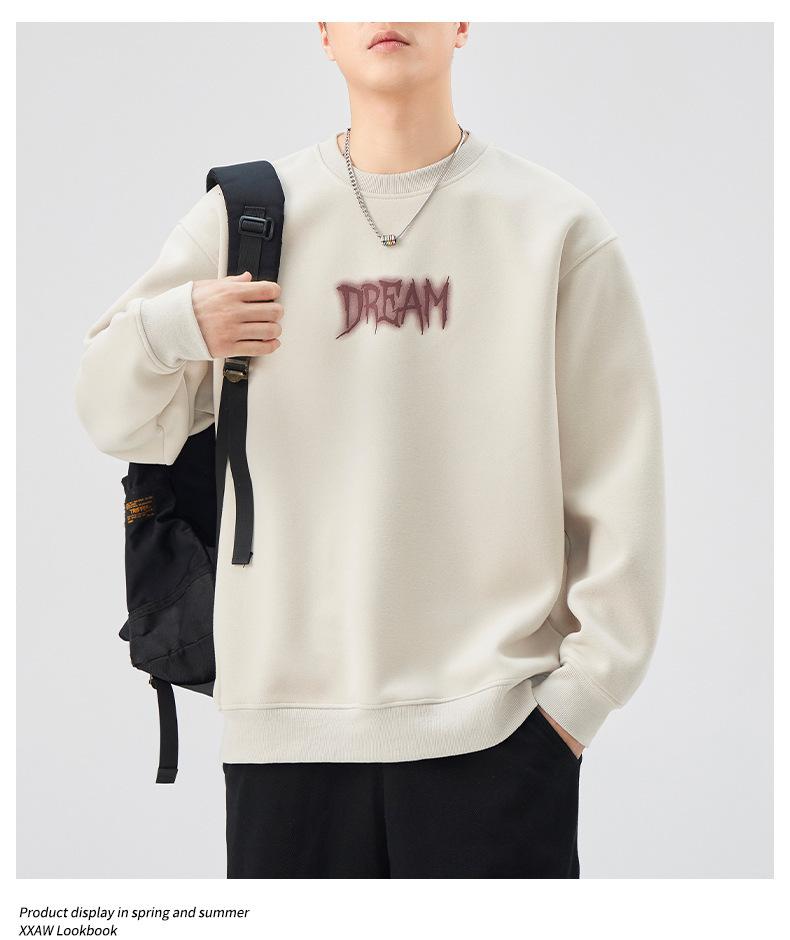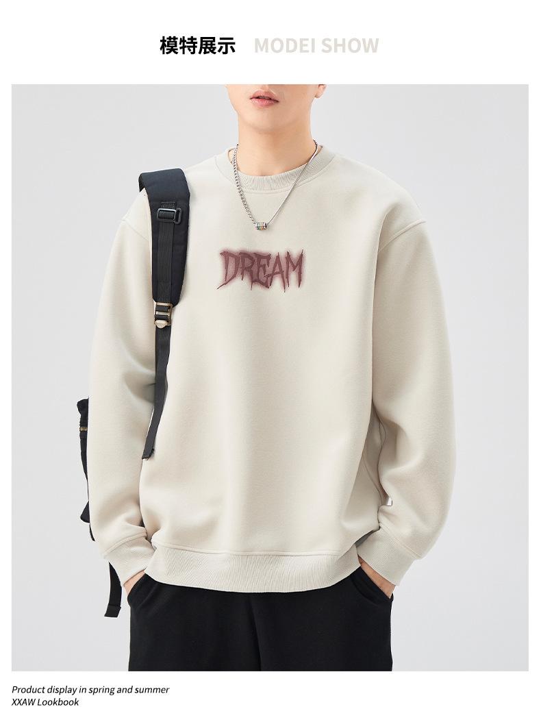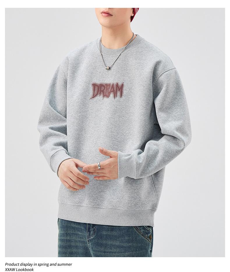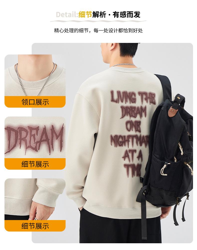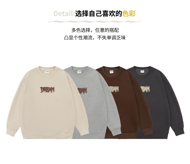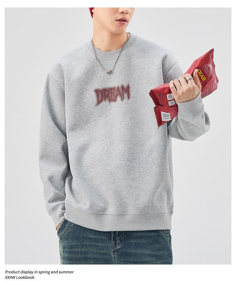Sudadera con cuello redondo y estampado de letras para hombre, 420 g, estilo informal, holgada y a la moda, para otoño de 2024