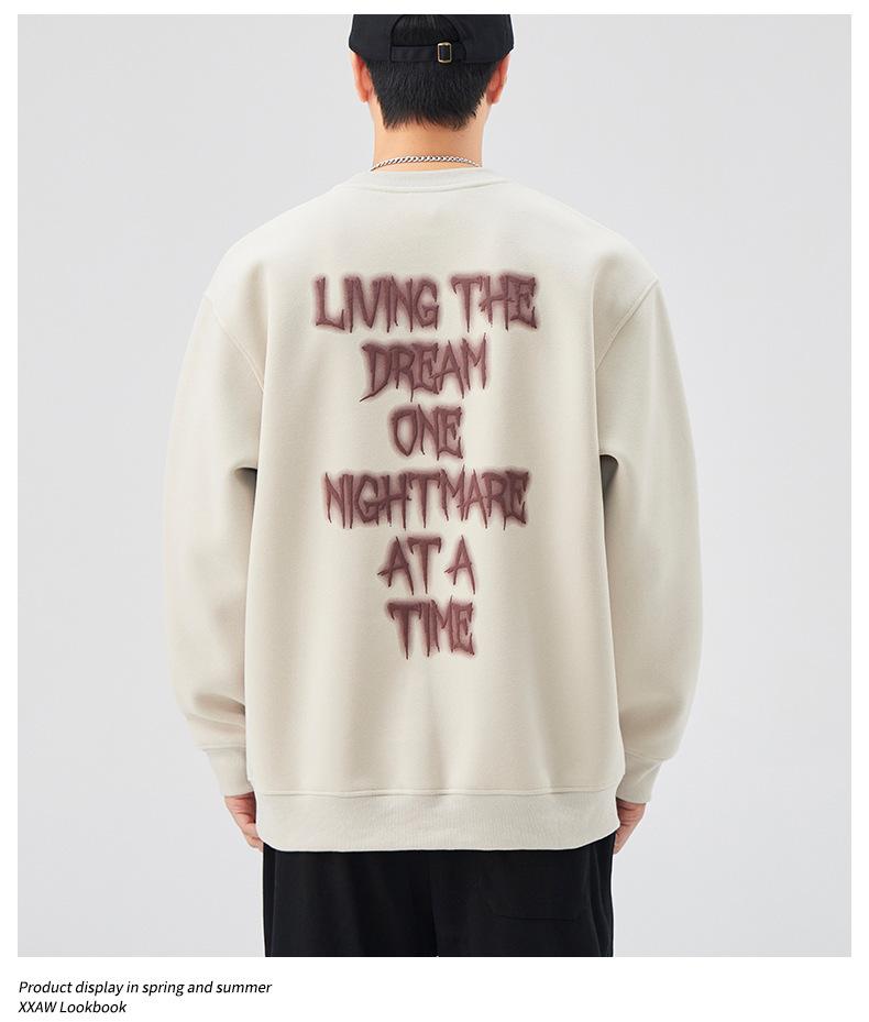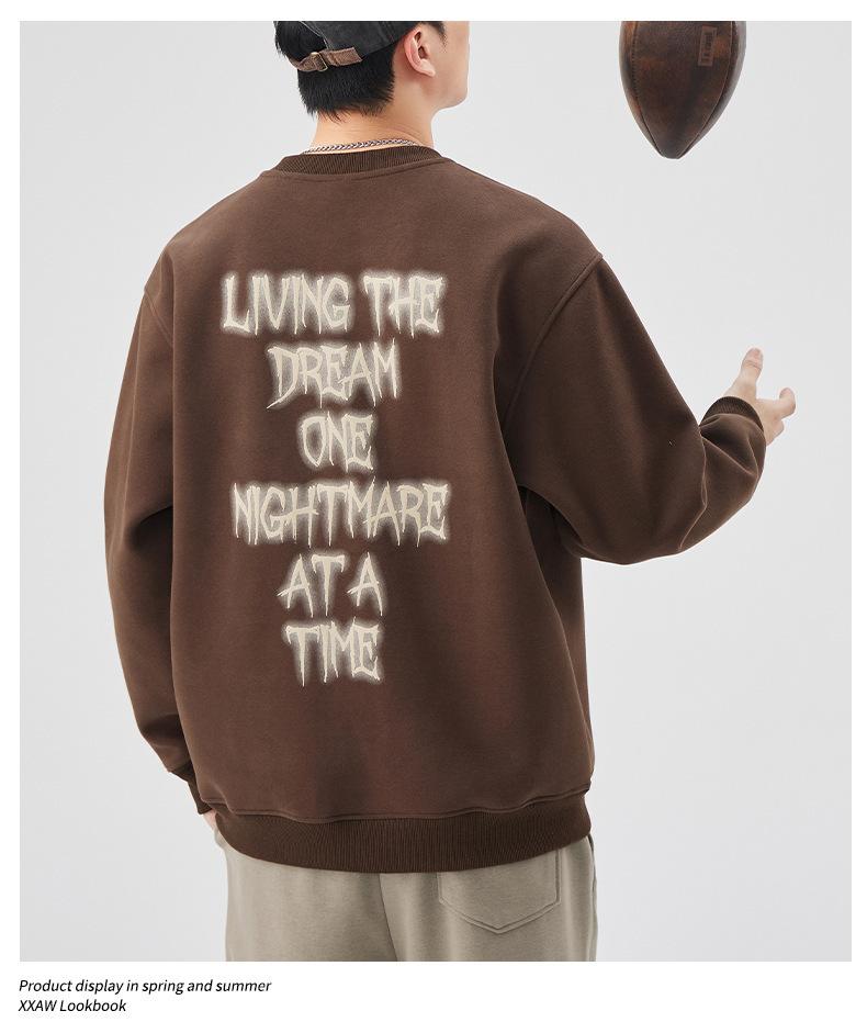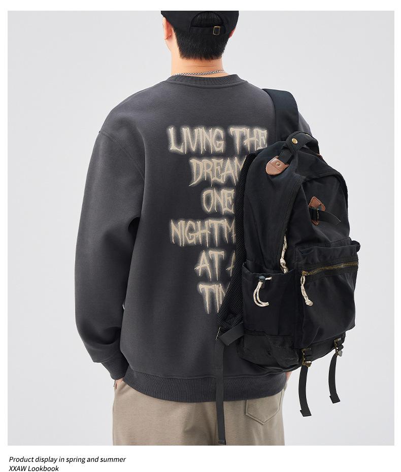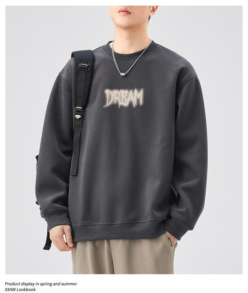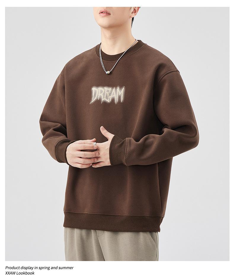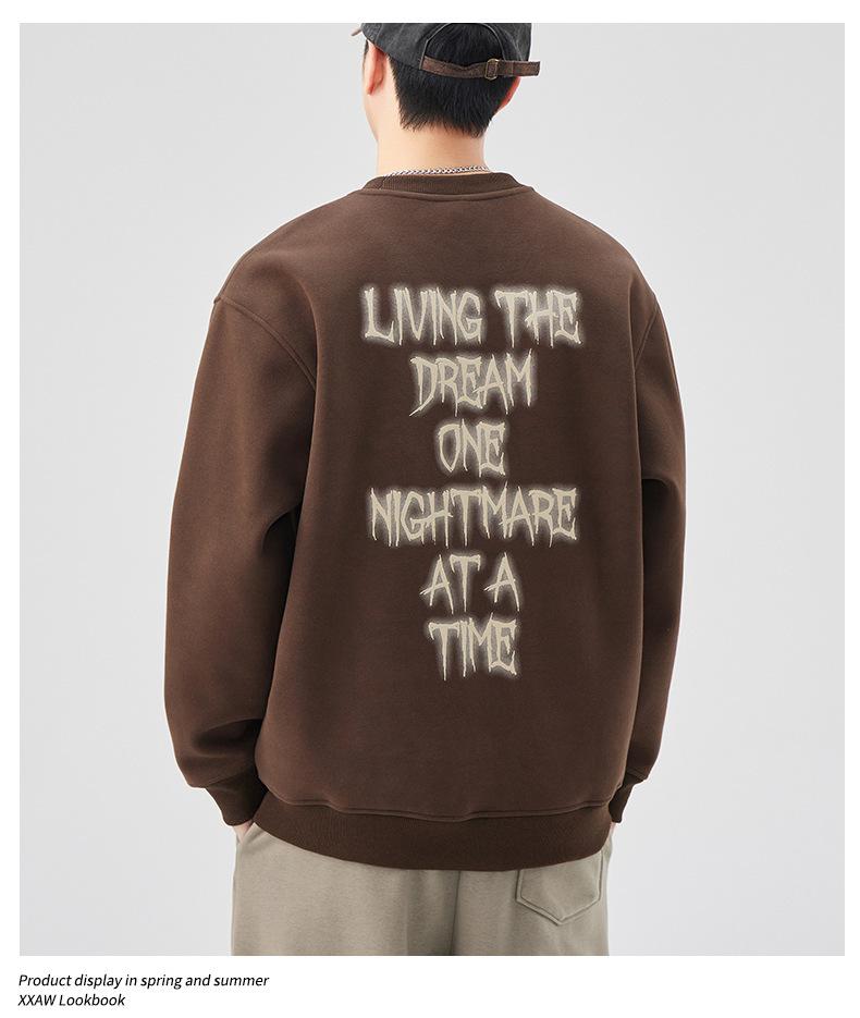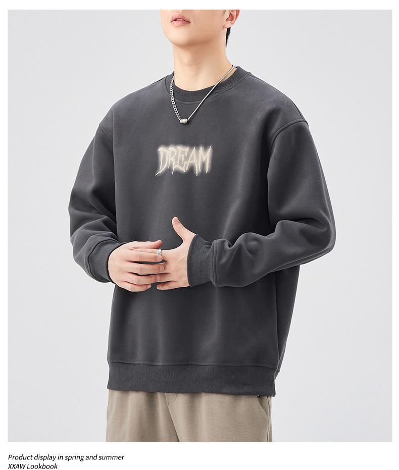 Sudadera con cuello redondo y estampado de letras para hombre, 420 g, estilo informal, holgada y a la moda, para otoño de 2024