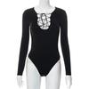 Amazon Transfronterizo Otoño Ropa Europea y Americana Sexy Hottie Manga Larga Color Sólido Encaje Hueco Mono Ajustado Al Por Mayor