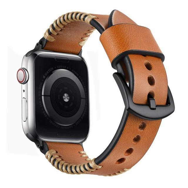 Correa universal de piel de becerro para Apple Watch de 5.ª y 6.ª generación, nueva, cosida a mano, de 22 mm.