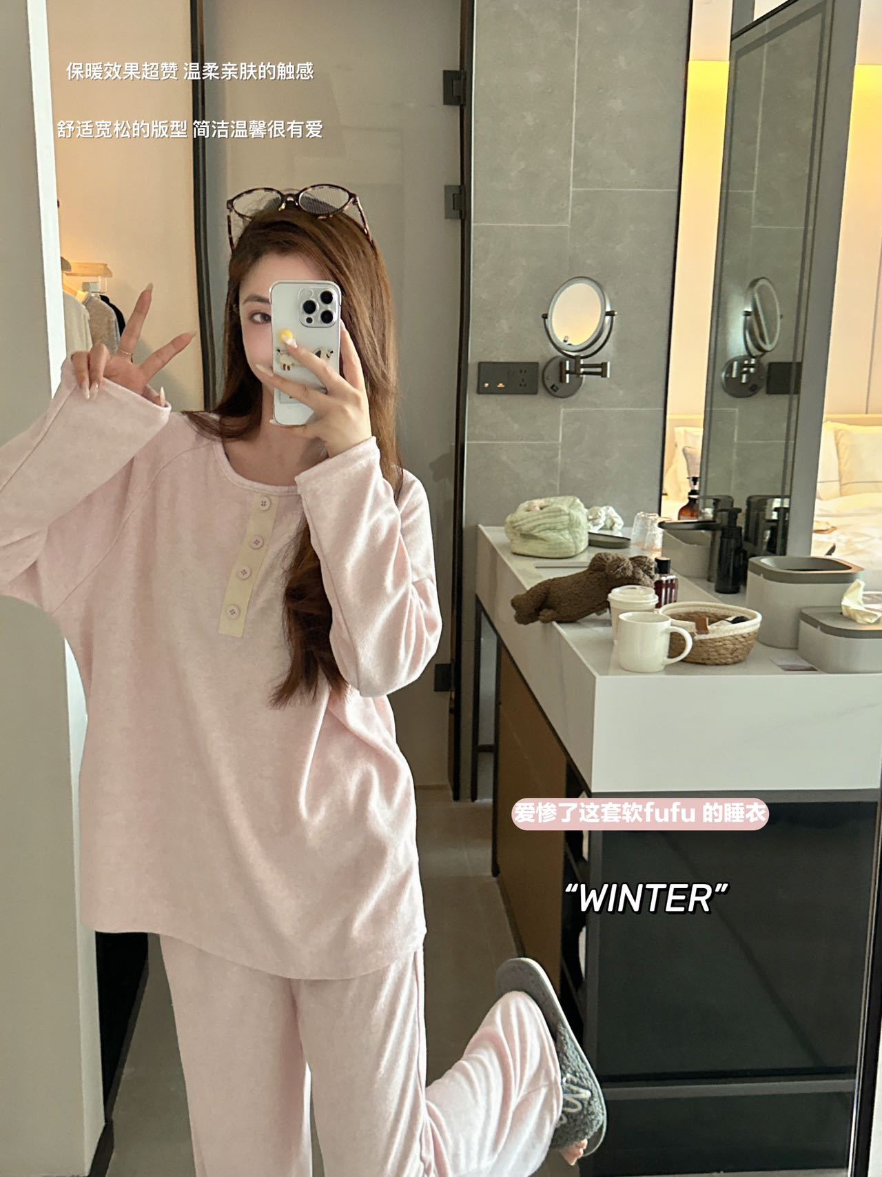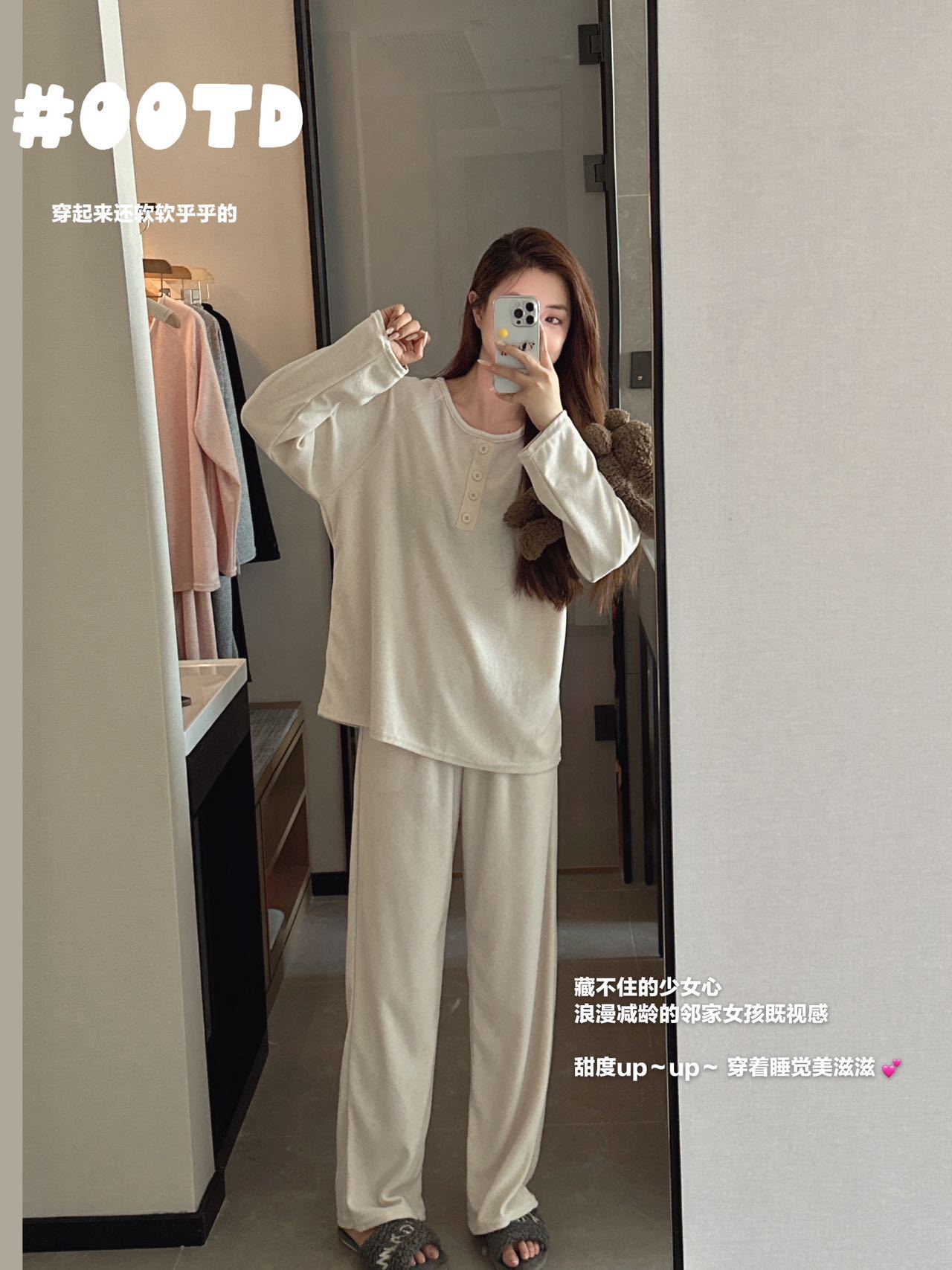 Suéter de terciopelo de color sólido para mujer, nueva toalla de otoño e invierno, ropa para el hogar, traje de pijama, se puede usar al aire libre