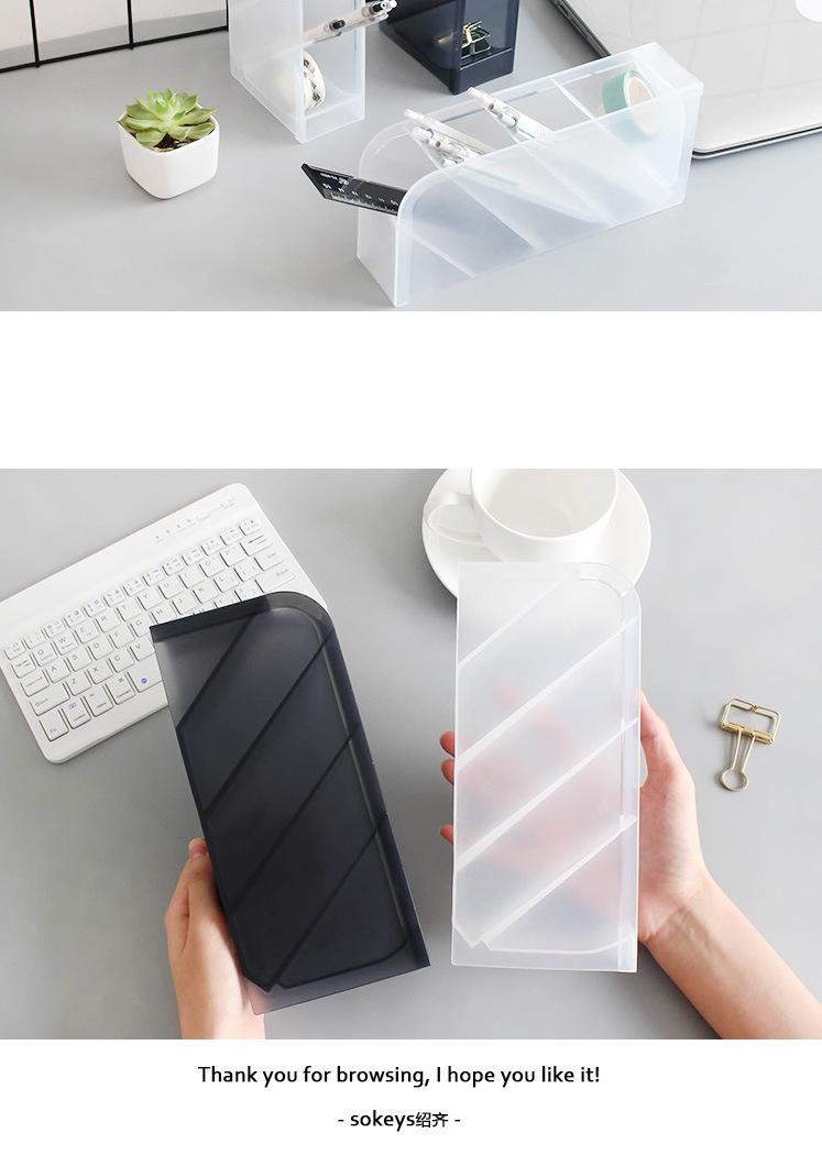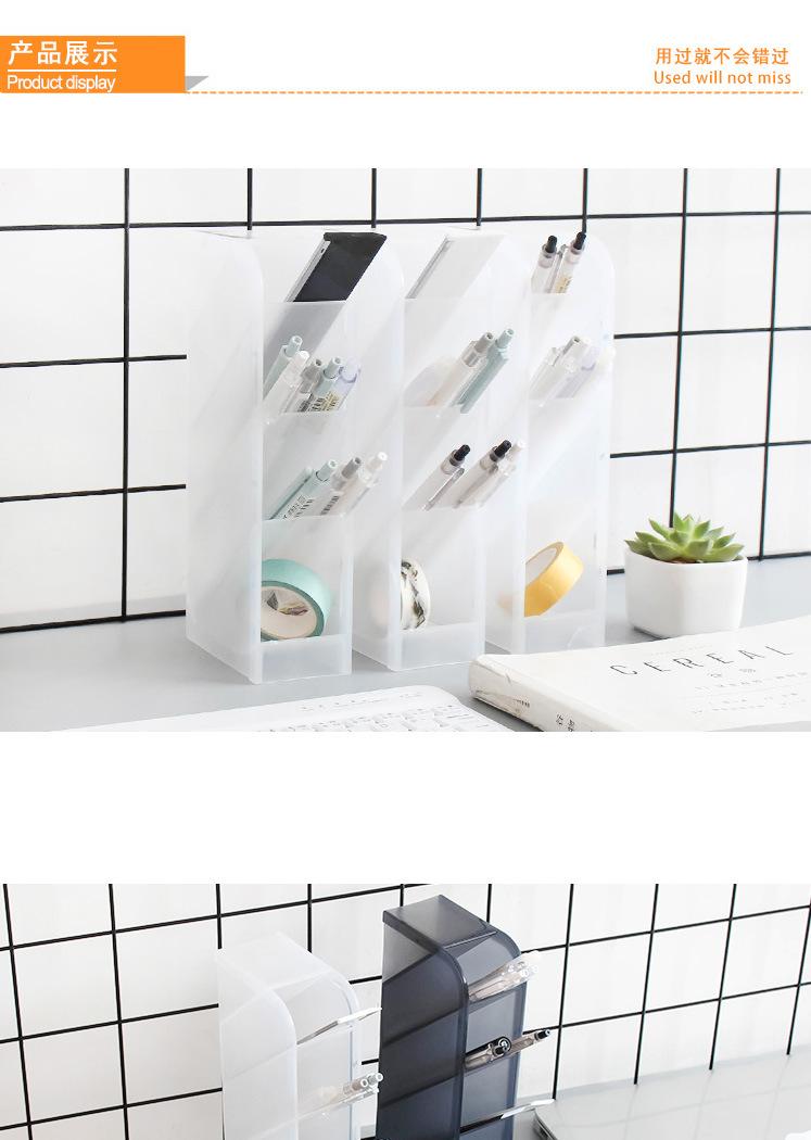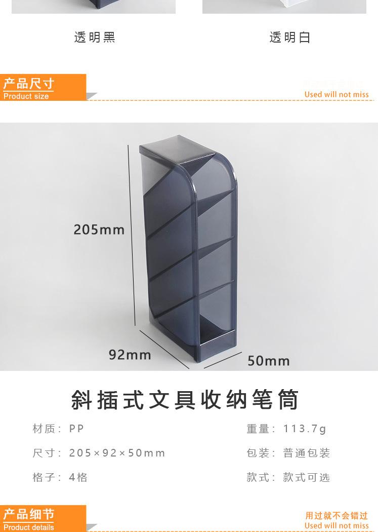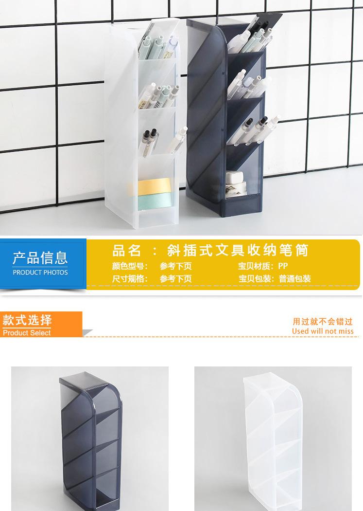 Portalápices oblicuo para escritorio, caja de almacenamiento de escritorio, estante de almacenamiento de papelería, almacenamiento transparente para brochas de maquillaje