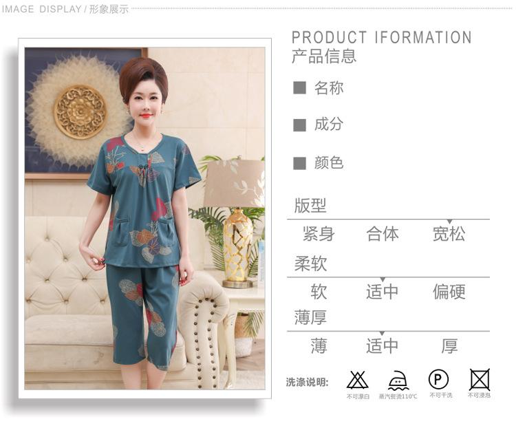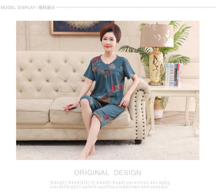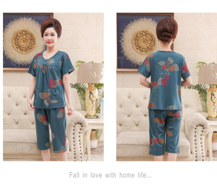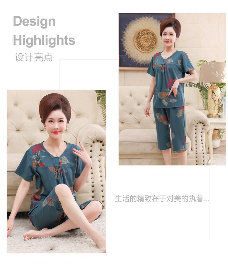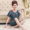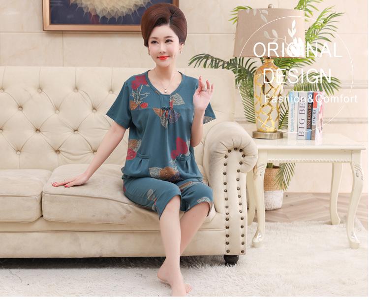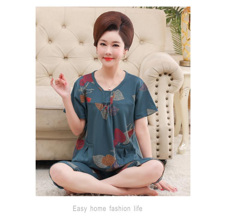 Pijamas para mujeres de mediana edad y mayores, pantalones cortos de algodón de verano de manga corta, ropa de casa para madres, traje de verano de talla grande para mujeres de mediana edad