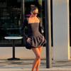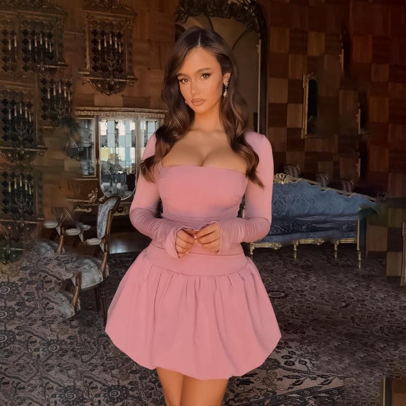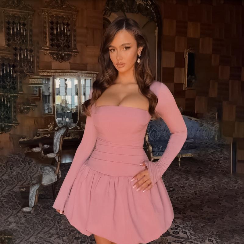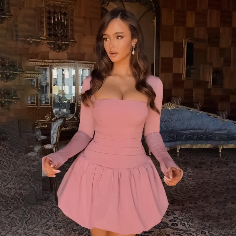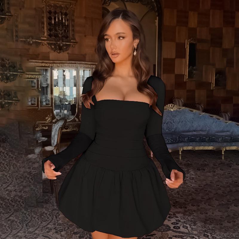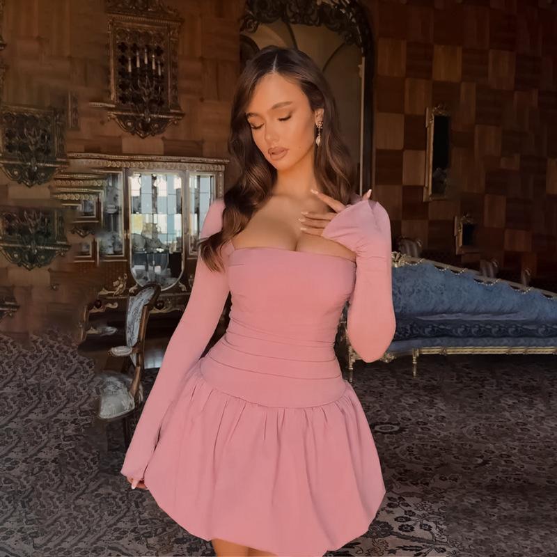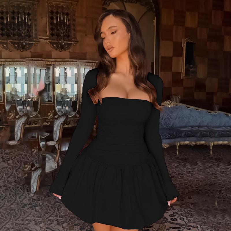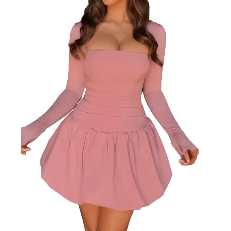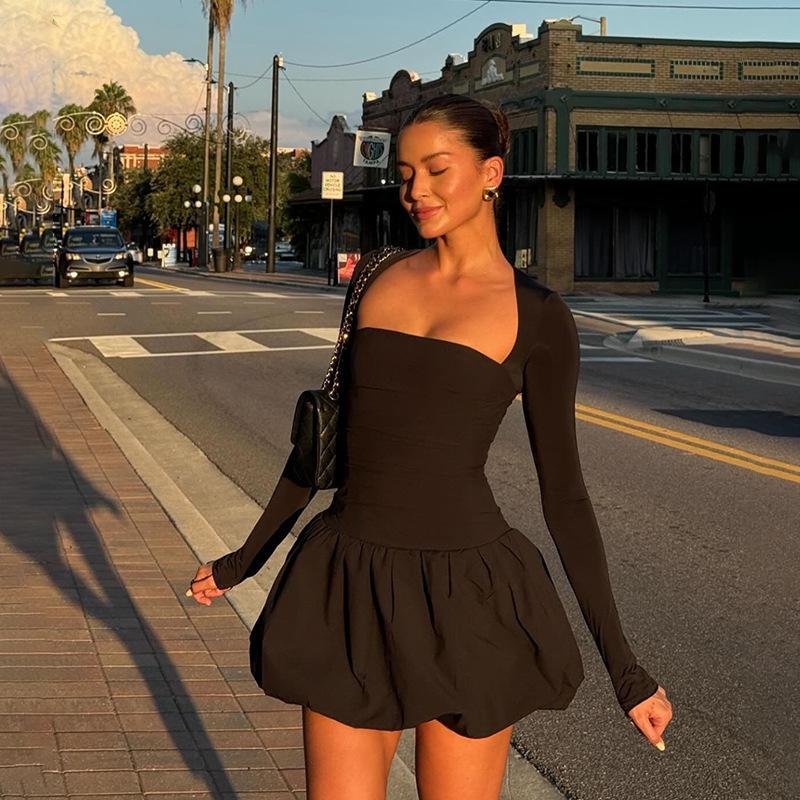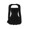 JY24516 Elegante vestido de manga larga con dobladillo abullonado para mujer Otoño 2024 Nueva moda Elegante falda ajustada