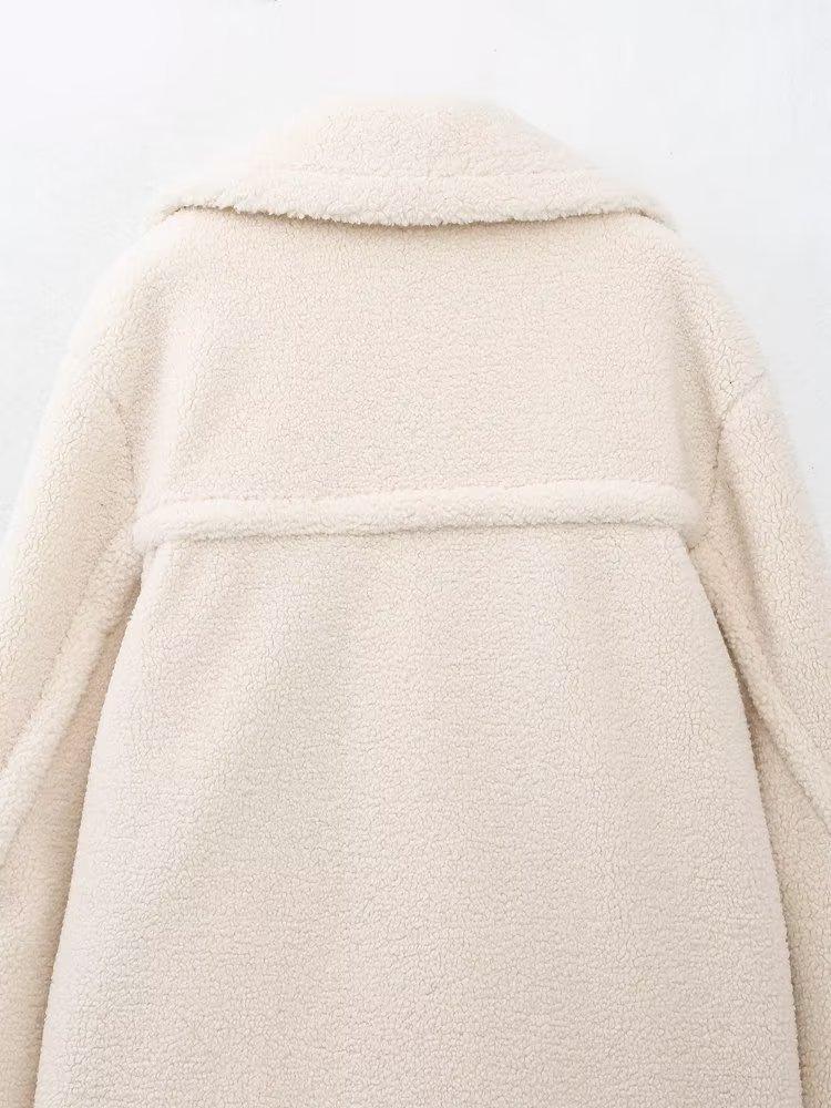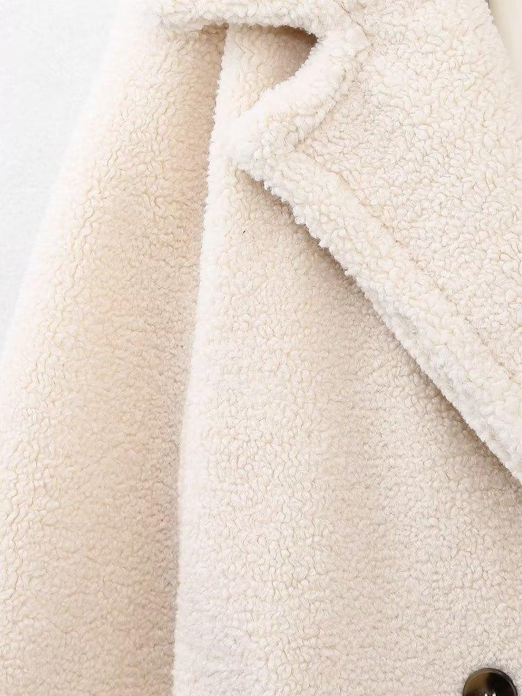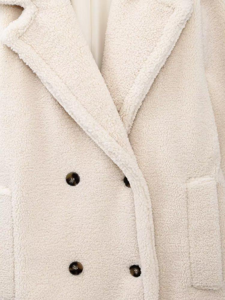 Abrigo largo informal de lana de cordero cálido para mujer, otoño e invierno, nuevo, transfronterizo europeo y americano, de color sólido, 2023