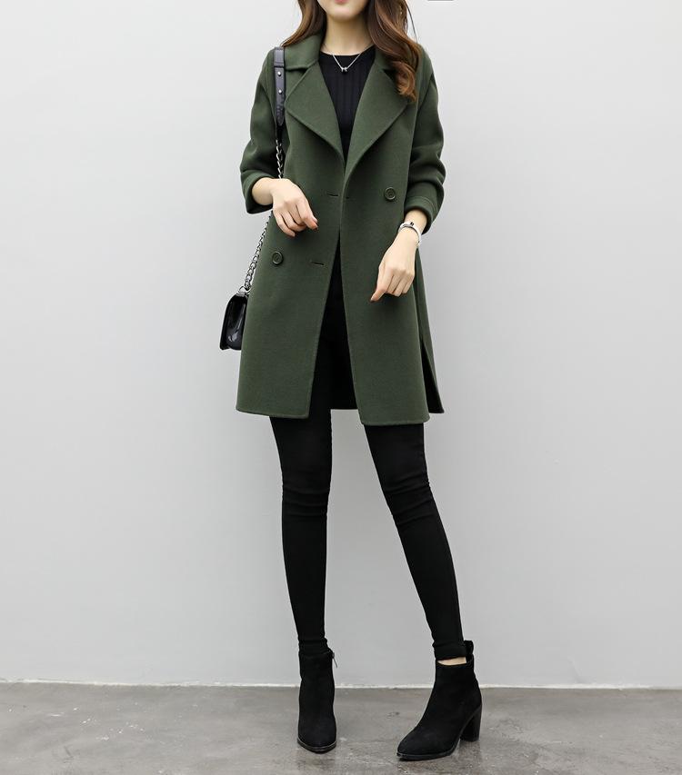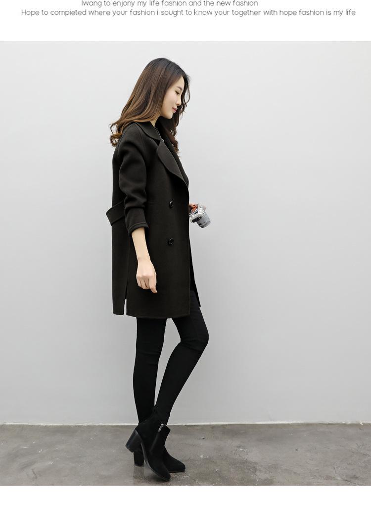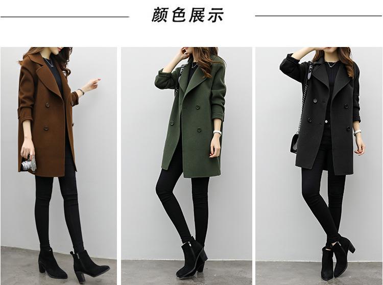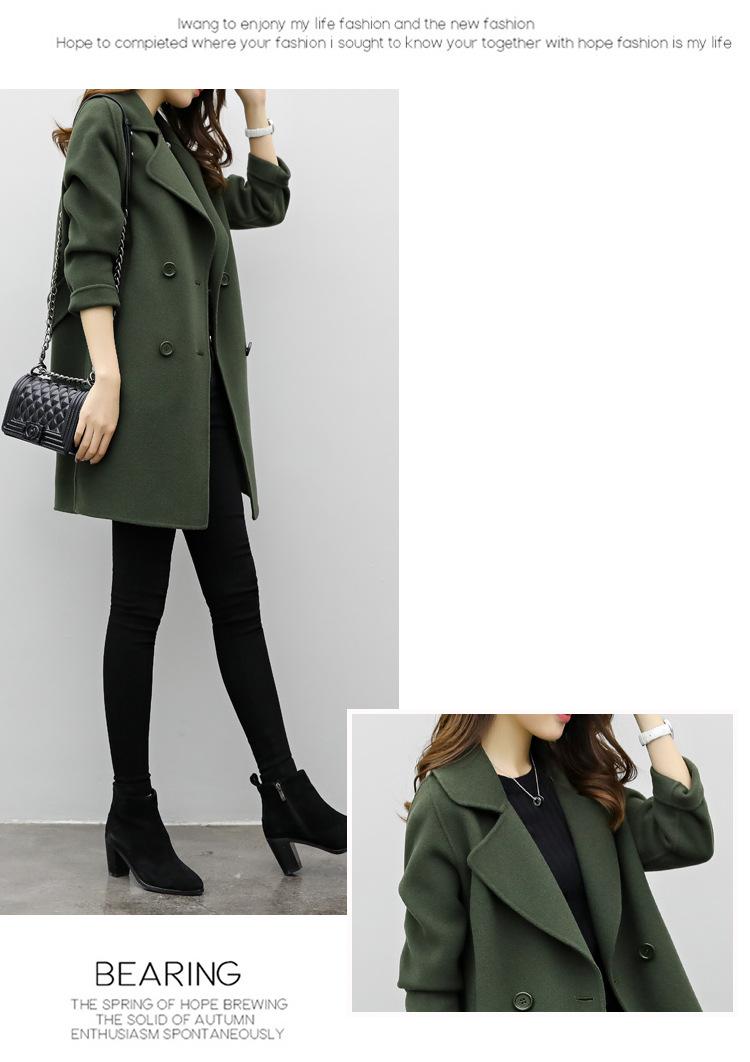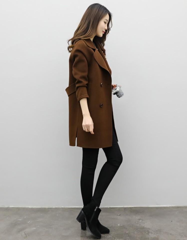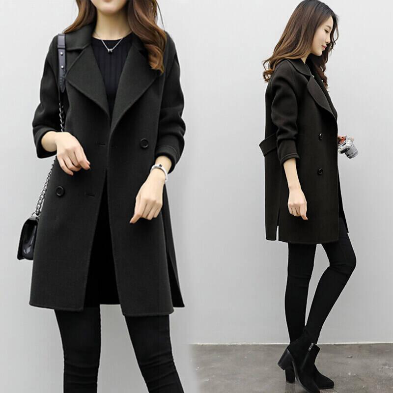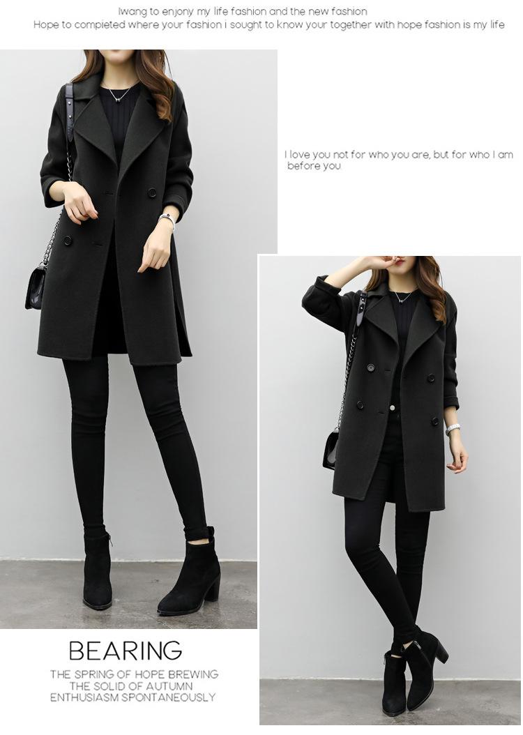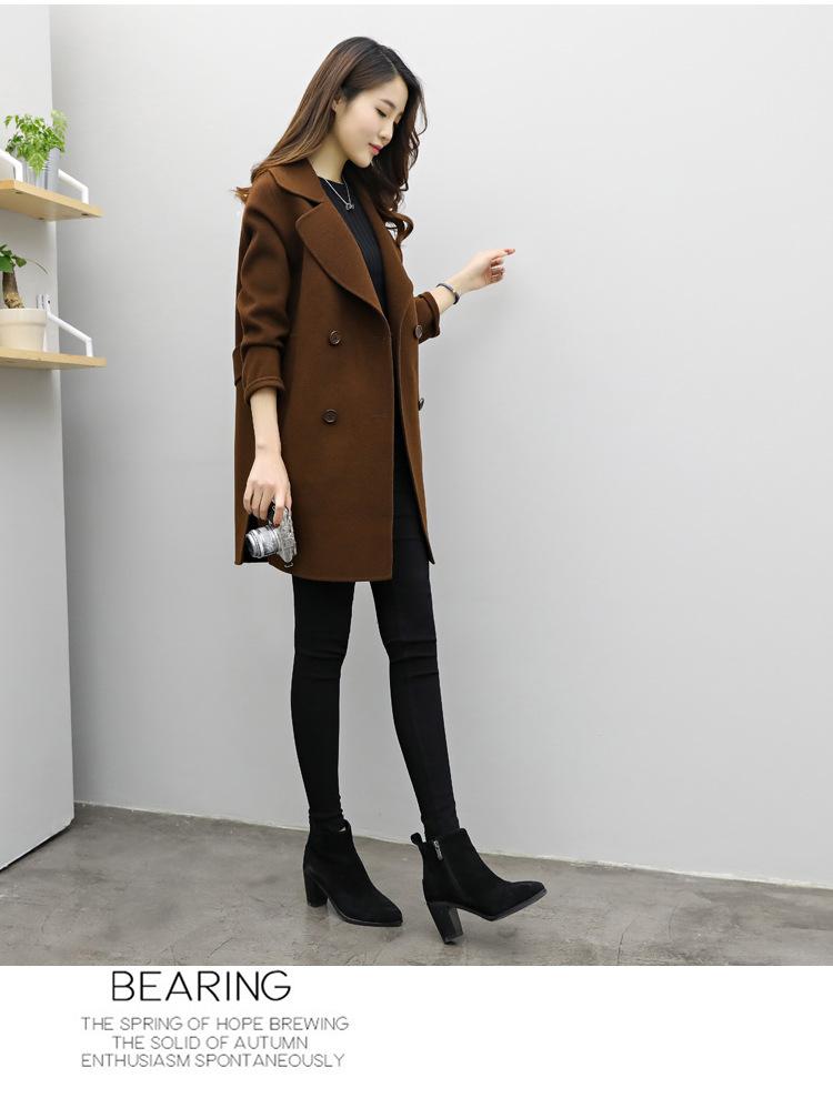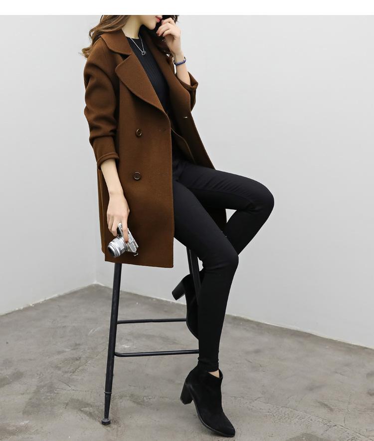 Primavera, Otoño e Invierno 2025 Nuevo Abrigo de Lana de Doble Botonadura Simple y Ajustado de Estilo Coreano a la Moda