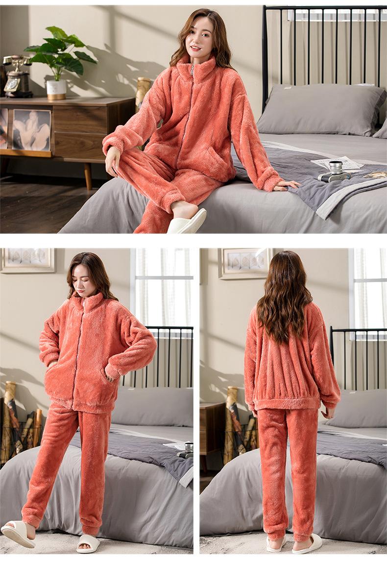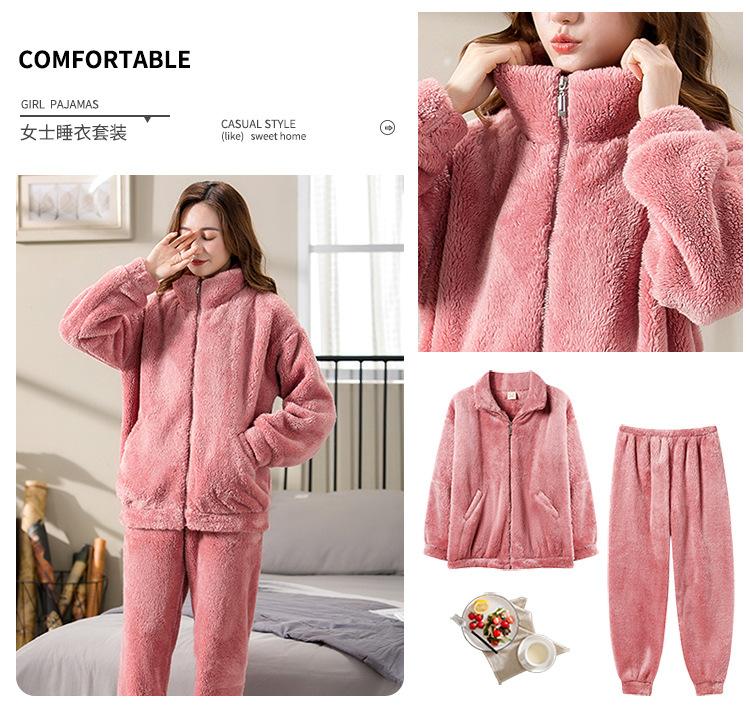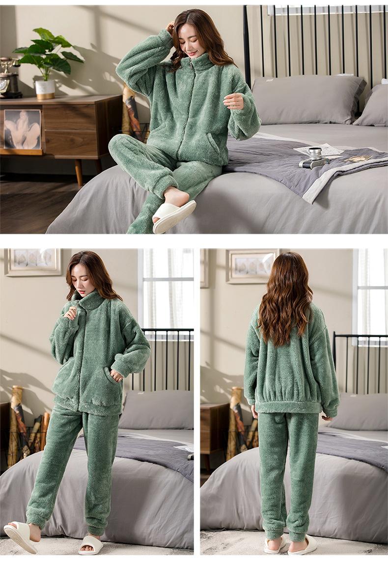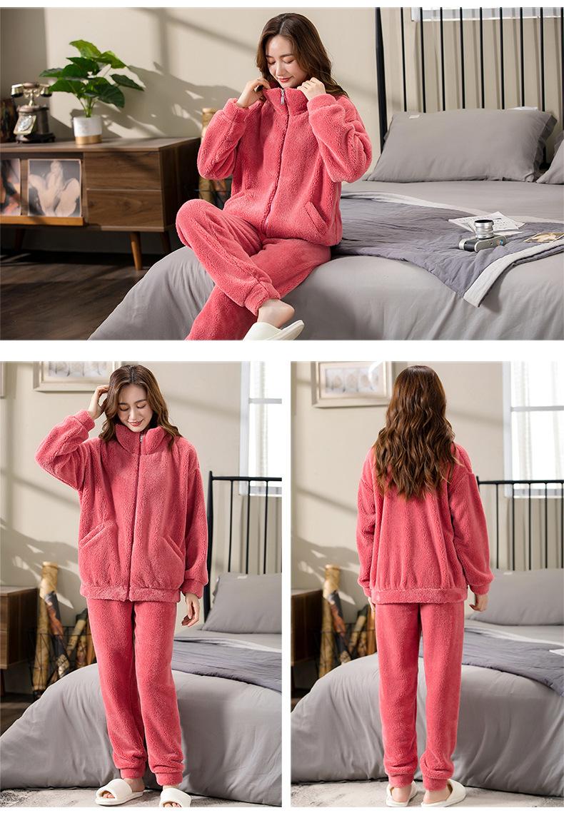 [6] Pijama de invierno para dama invierno grueso cálido polar de coral más terciopelo franela felpa ropa de casa