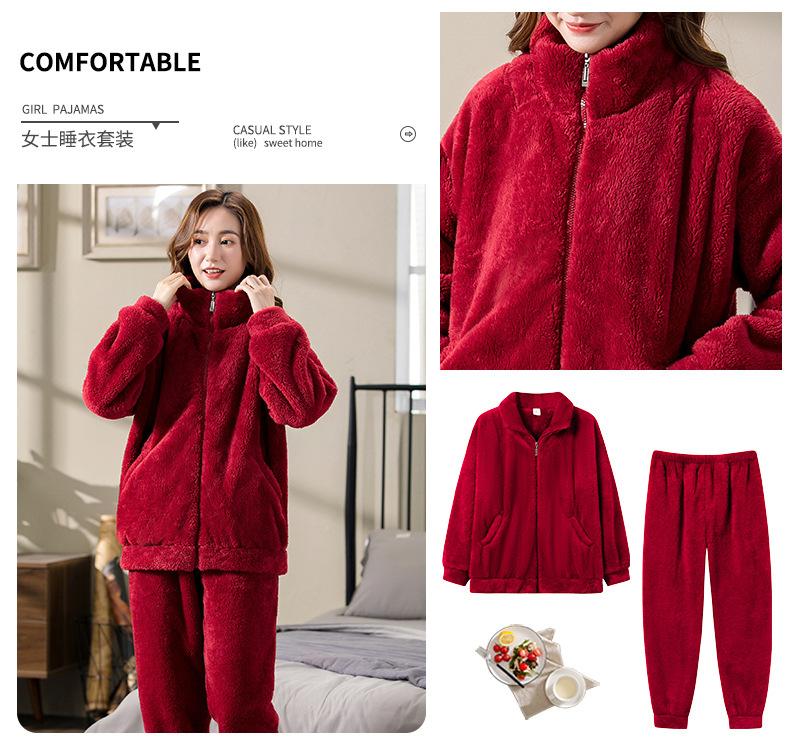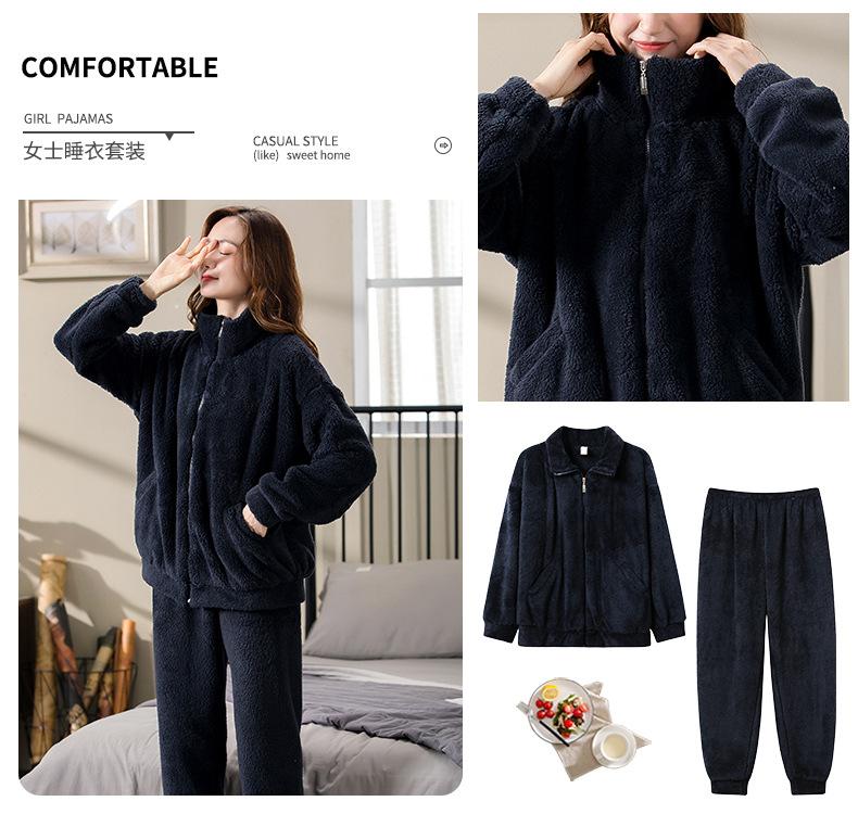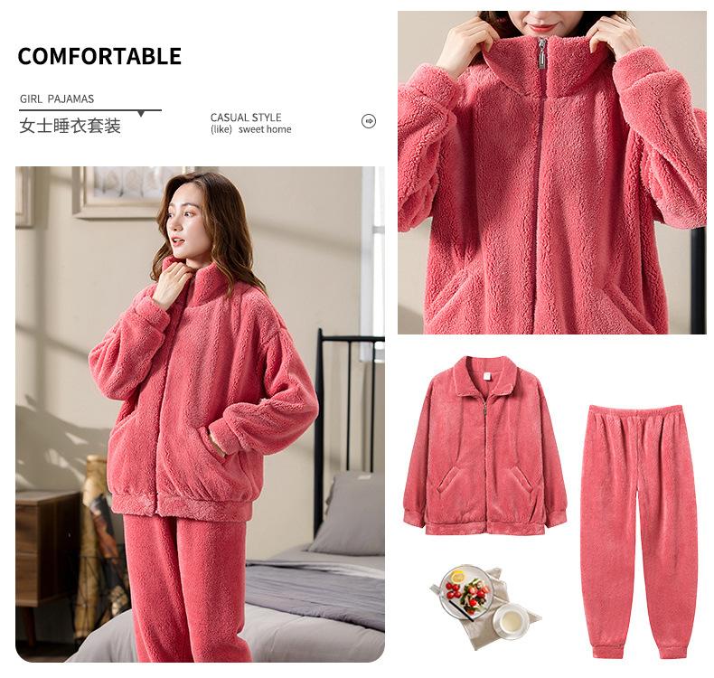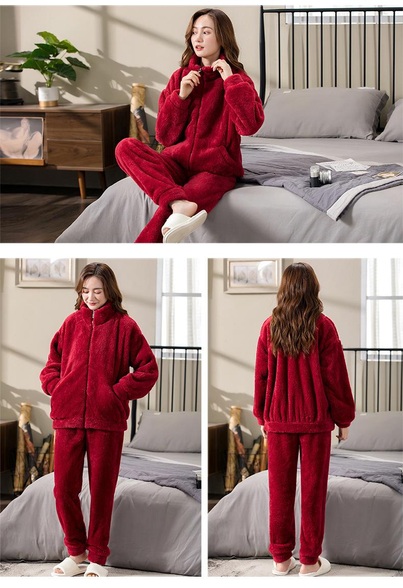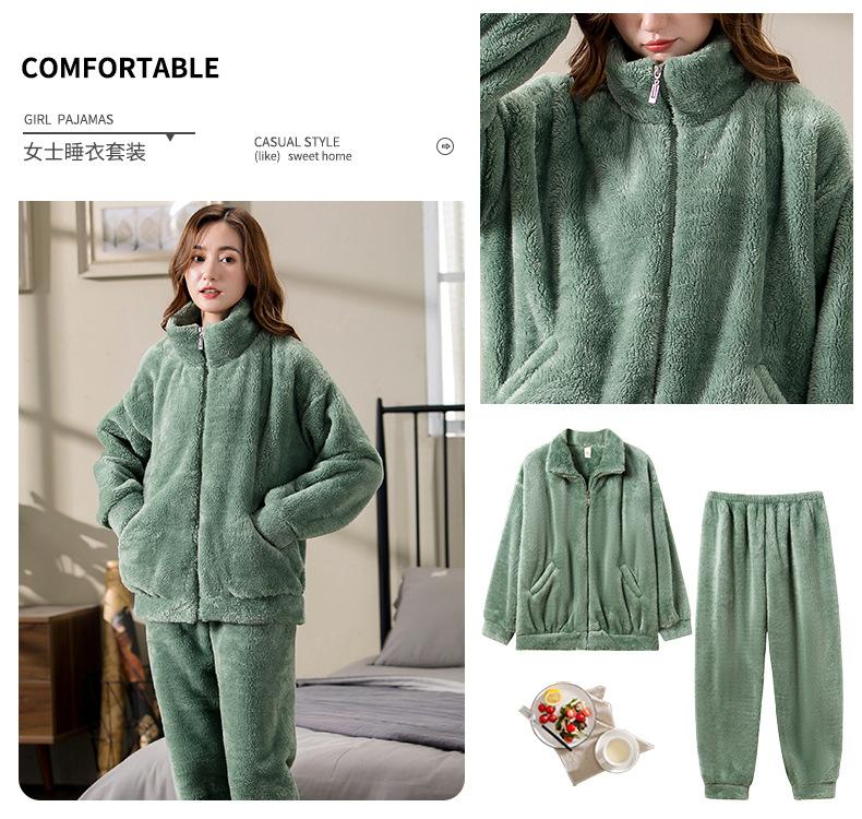 [6] Pijama de invierno para dama invierno grueso cálido polar de coral más terciopelo franela felpa ropa de casa