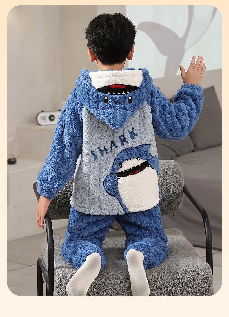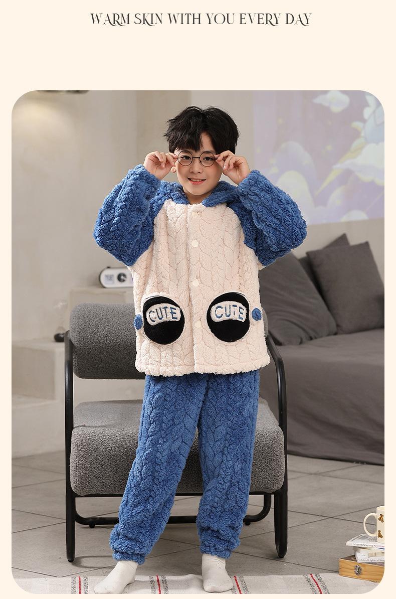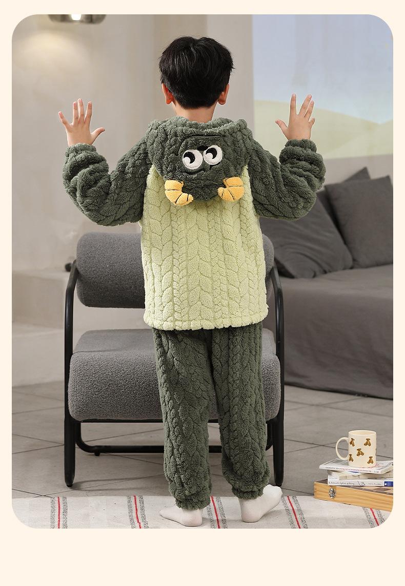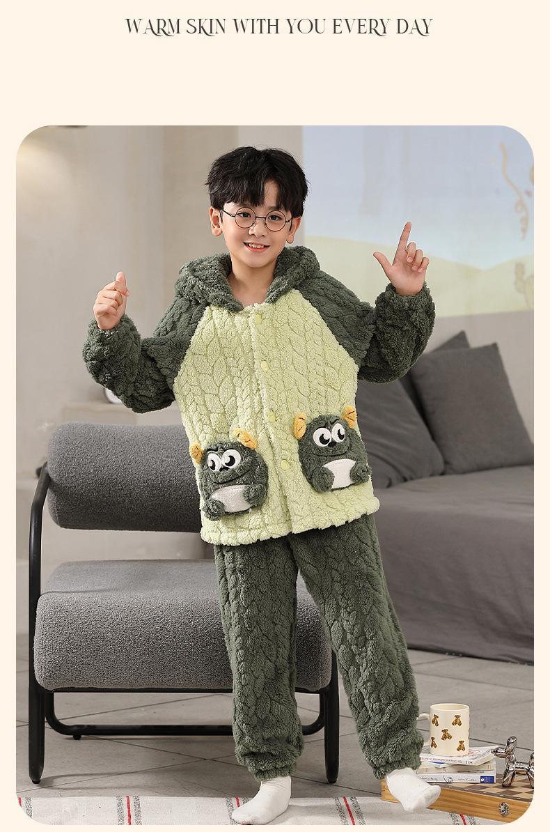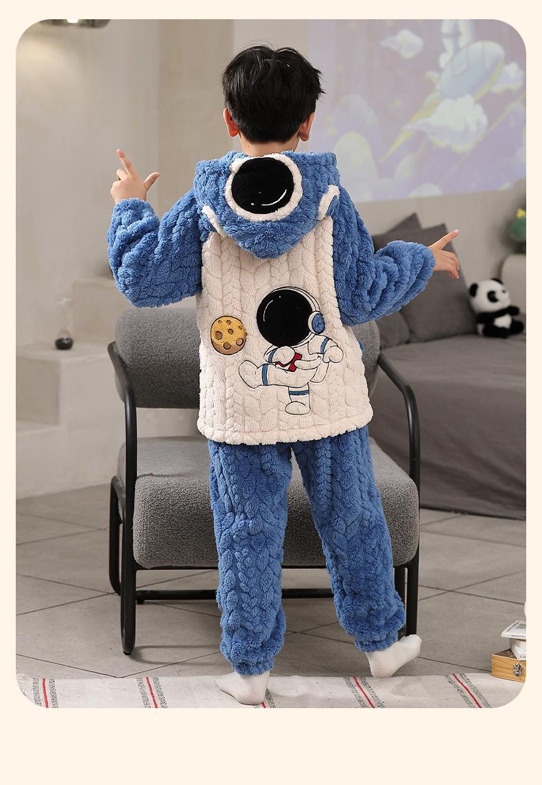 Pijamas para Niños Otoño e Invierno 2024 Nuevo Terciopelo Jacquard Grueso para Niños, Hombres y Mujeres con Capucha, Conjunto de Ropa para el Hogar de Dibujos Animados