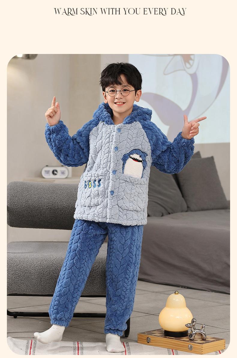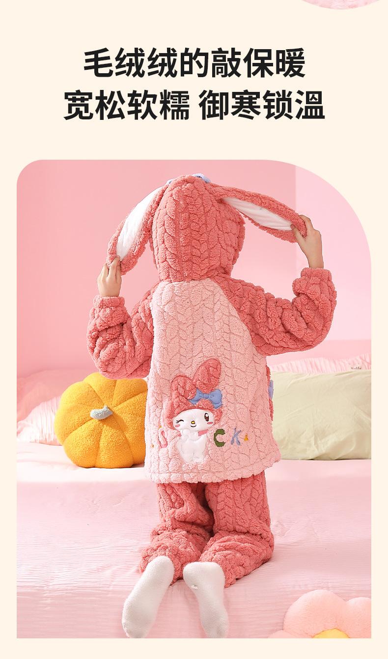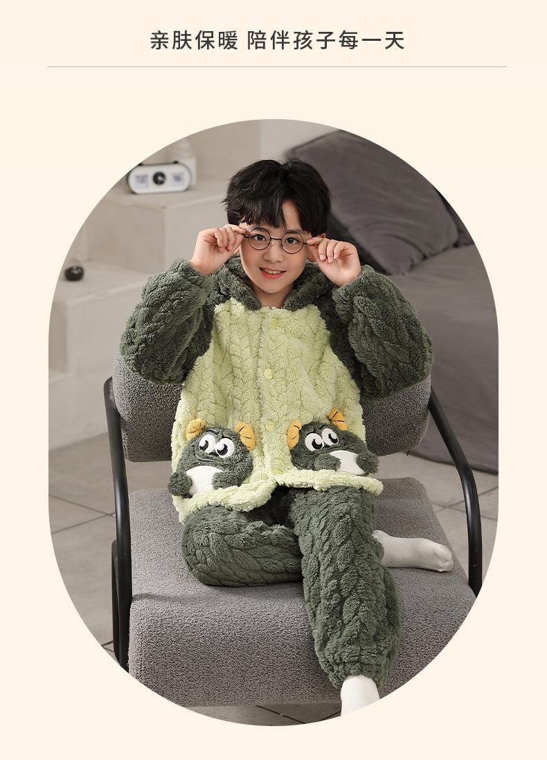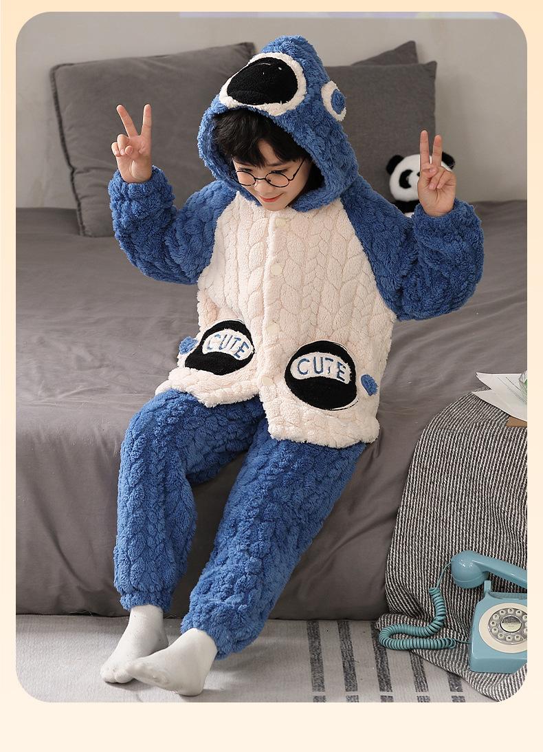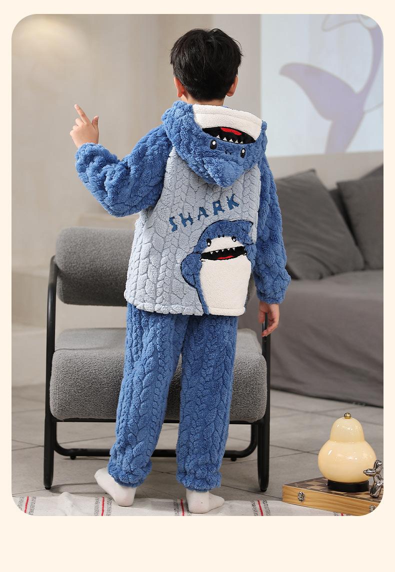 Pijamas para Niños Otoño e Invierno 2024 Nuevo Terciopelo Jacquard Grueso para Niños, Hombres y Mujeres con Capucha, Conjunto de Ropa para el Hogar de Dibujos Animados