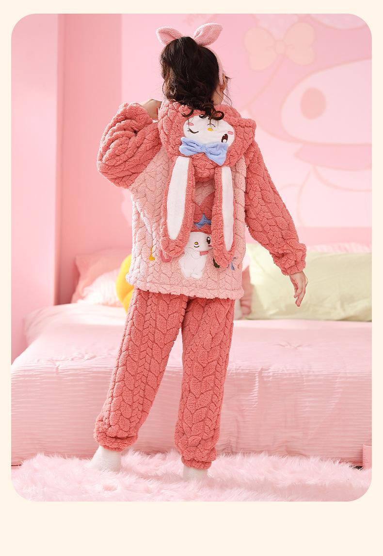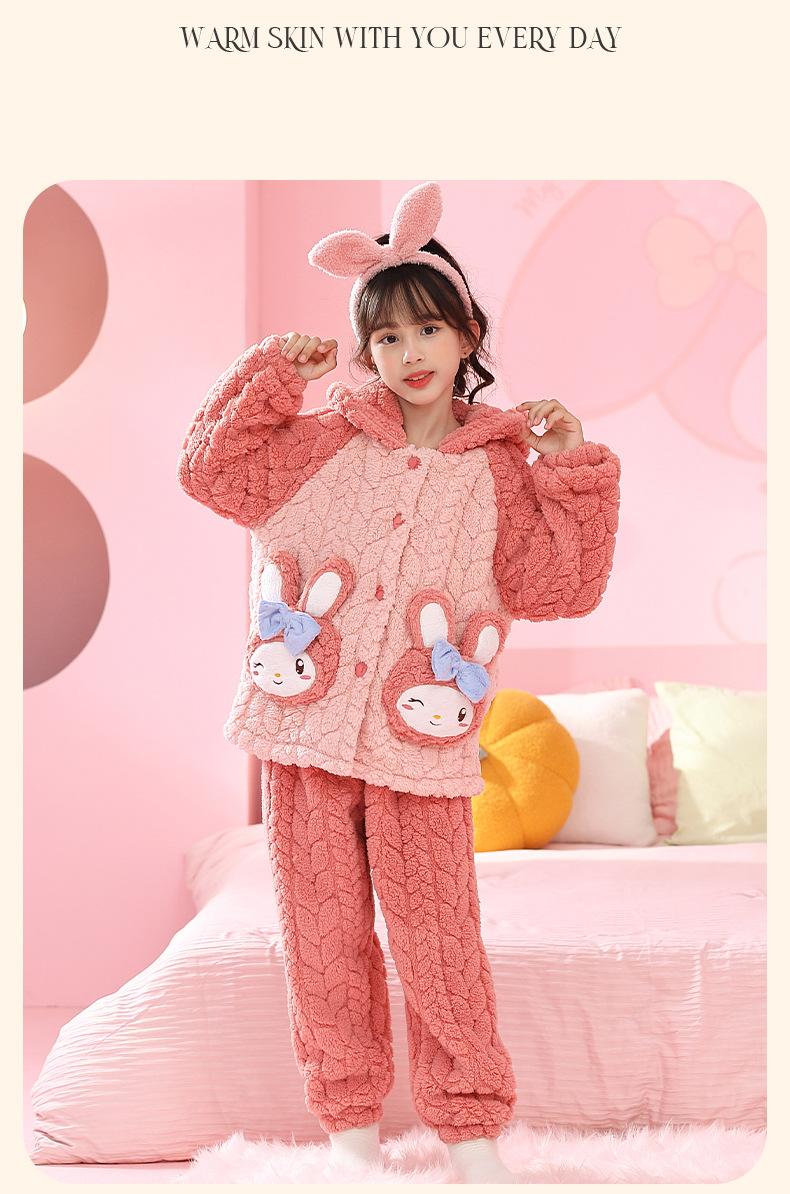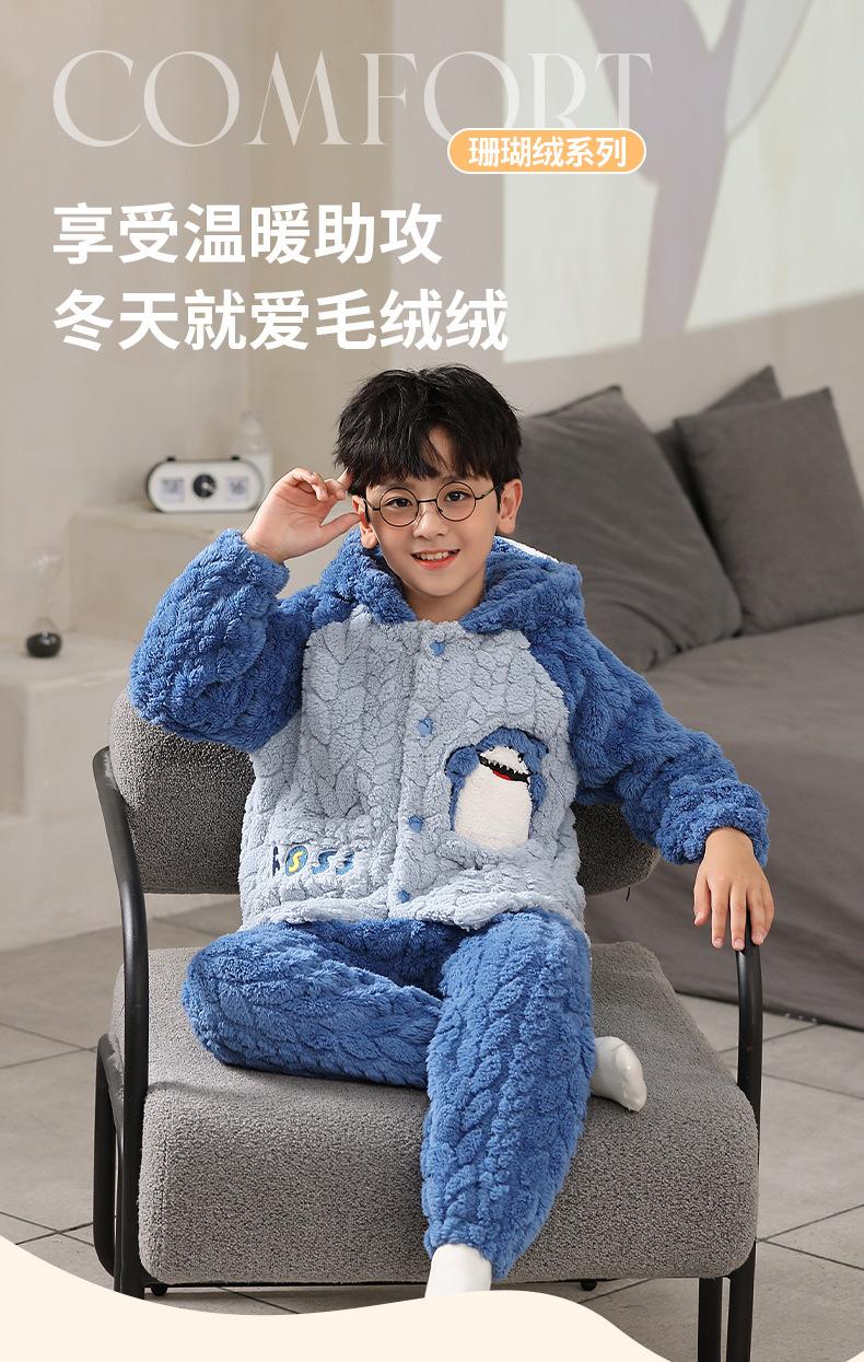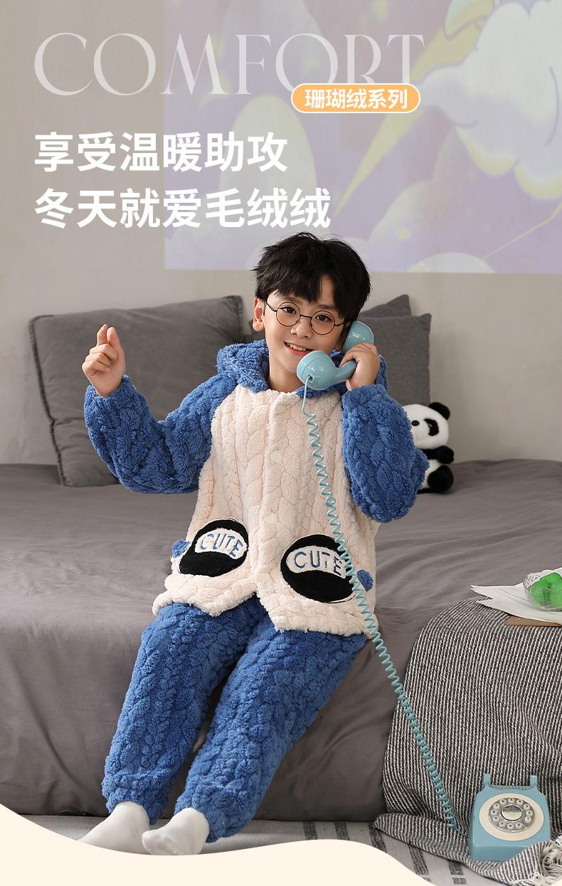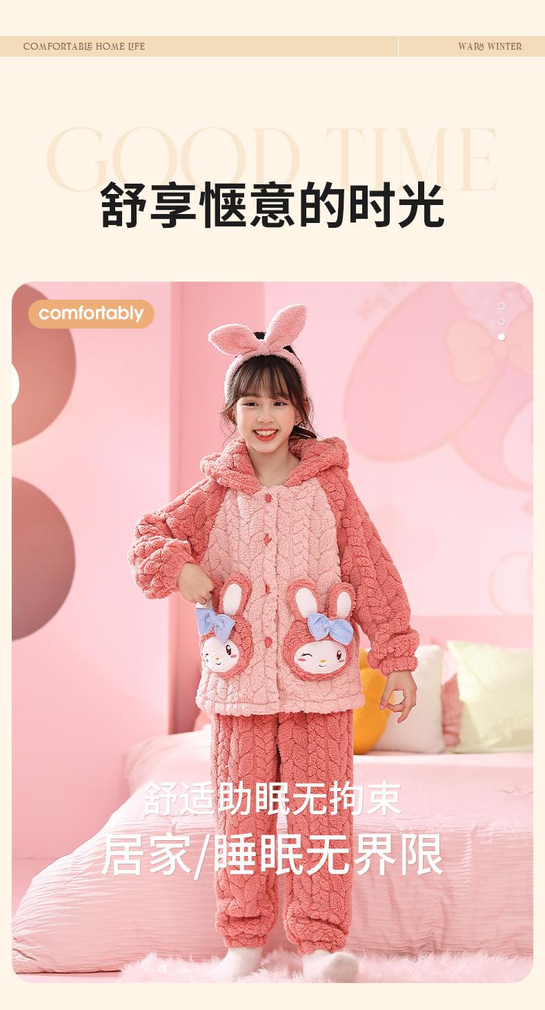 Pijamas para Niños Otoño e Invierno 2024 Nuevo Terciopelo Jacquard Grueso para Niños, Hombres y Mujeres con Capucha, Conjunto de Ropa para el Hogar de Dibujos Animados