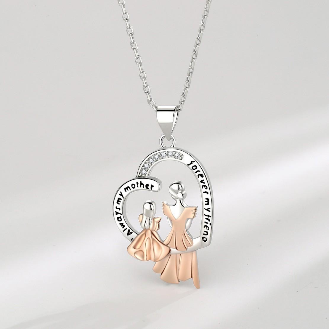 Amazon Ventas Calientes Transfronterizas Collar Regalo Día de la Madre Mamá Colgante Forma de Personaje Zircón Electrochapado Bicolor
