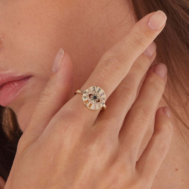 Anillo Ajustable de Ojo Turco de Circonita de Color Transfronterizo de Amazon para Mujer, Moda Simple, Estilo Europeo y Americano, Anillo de Comida, Marea