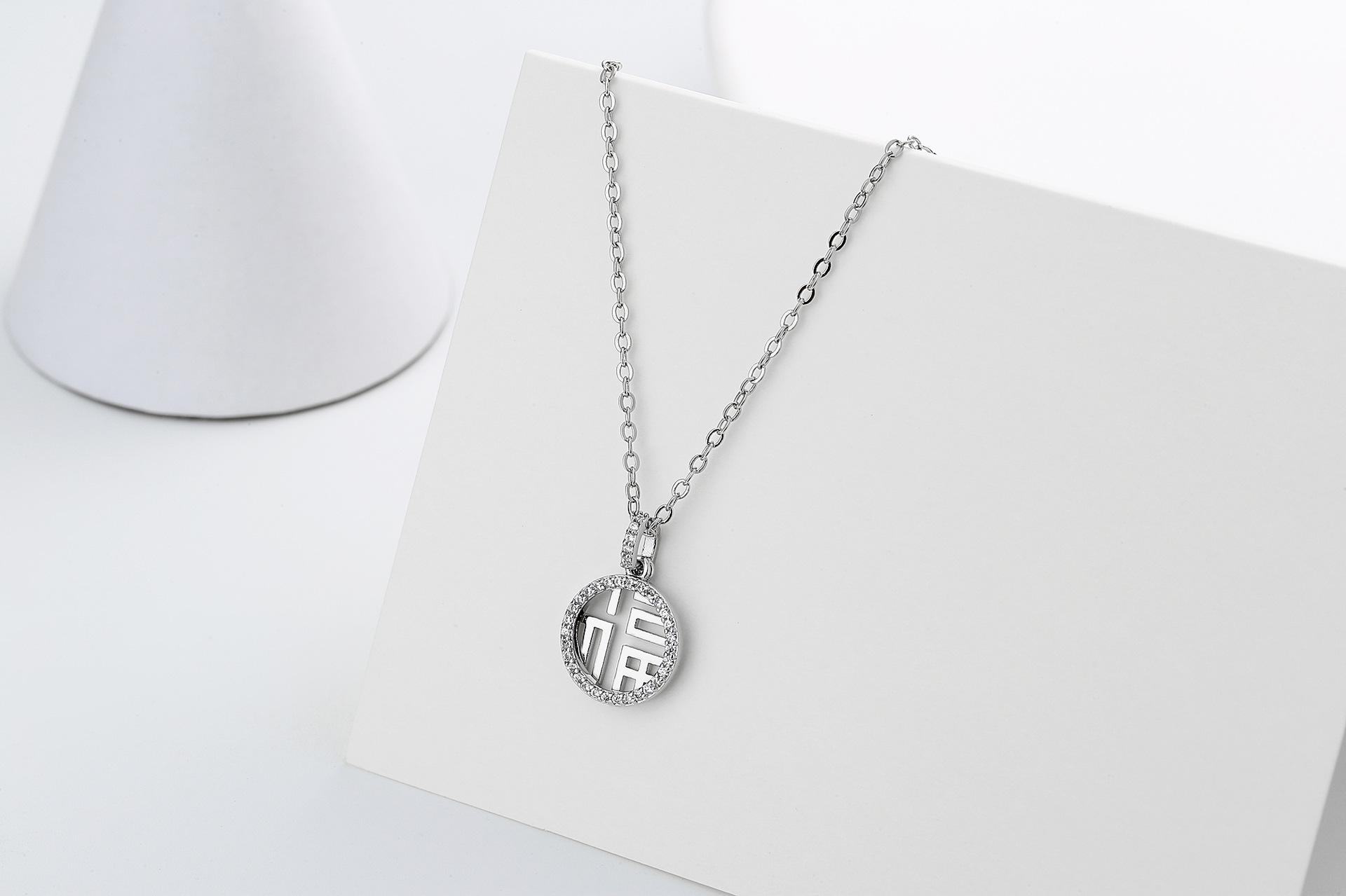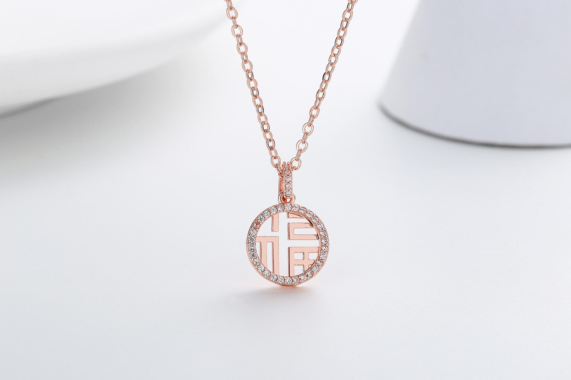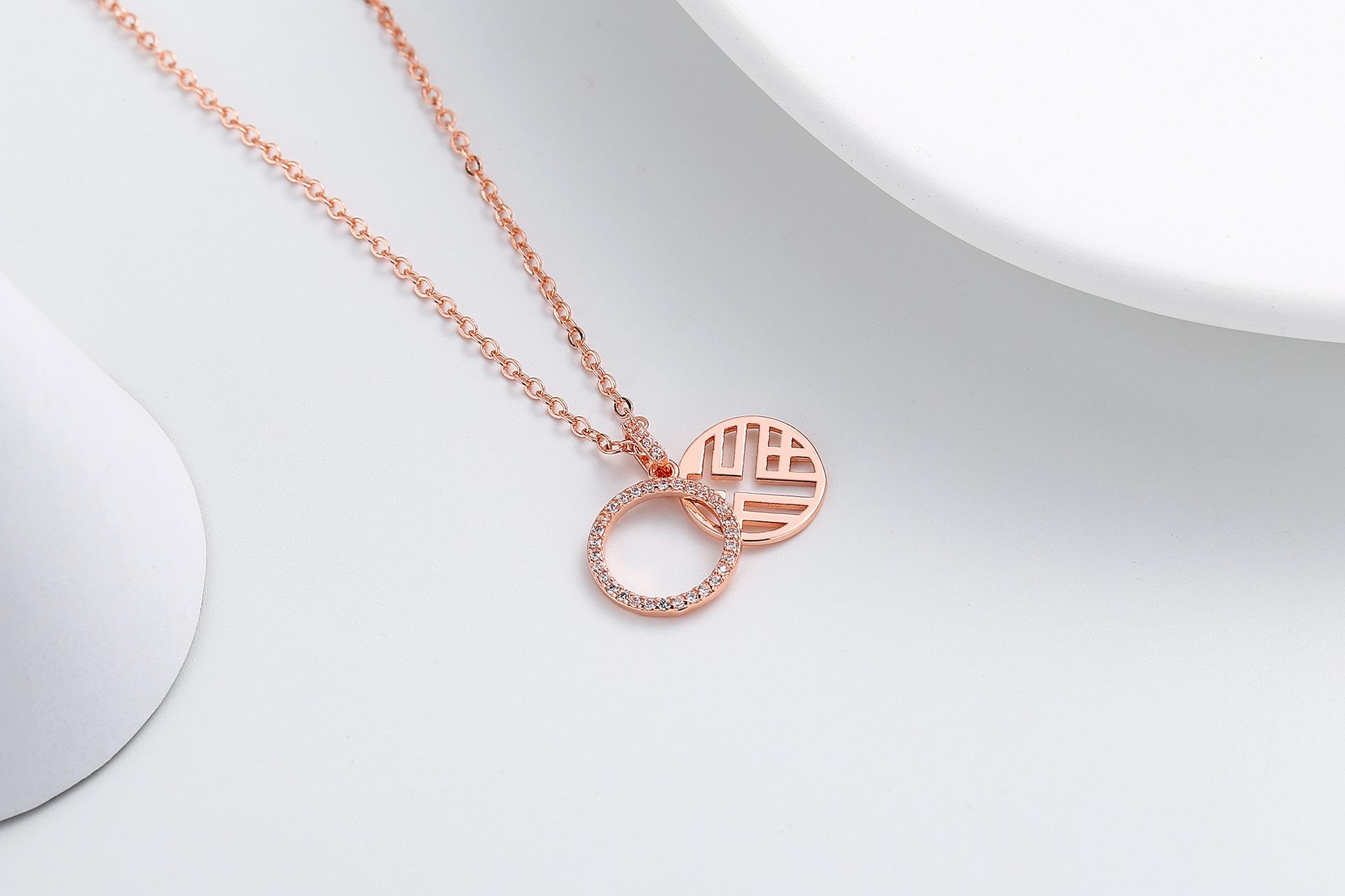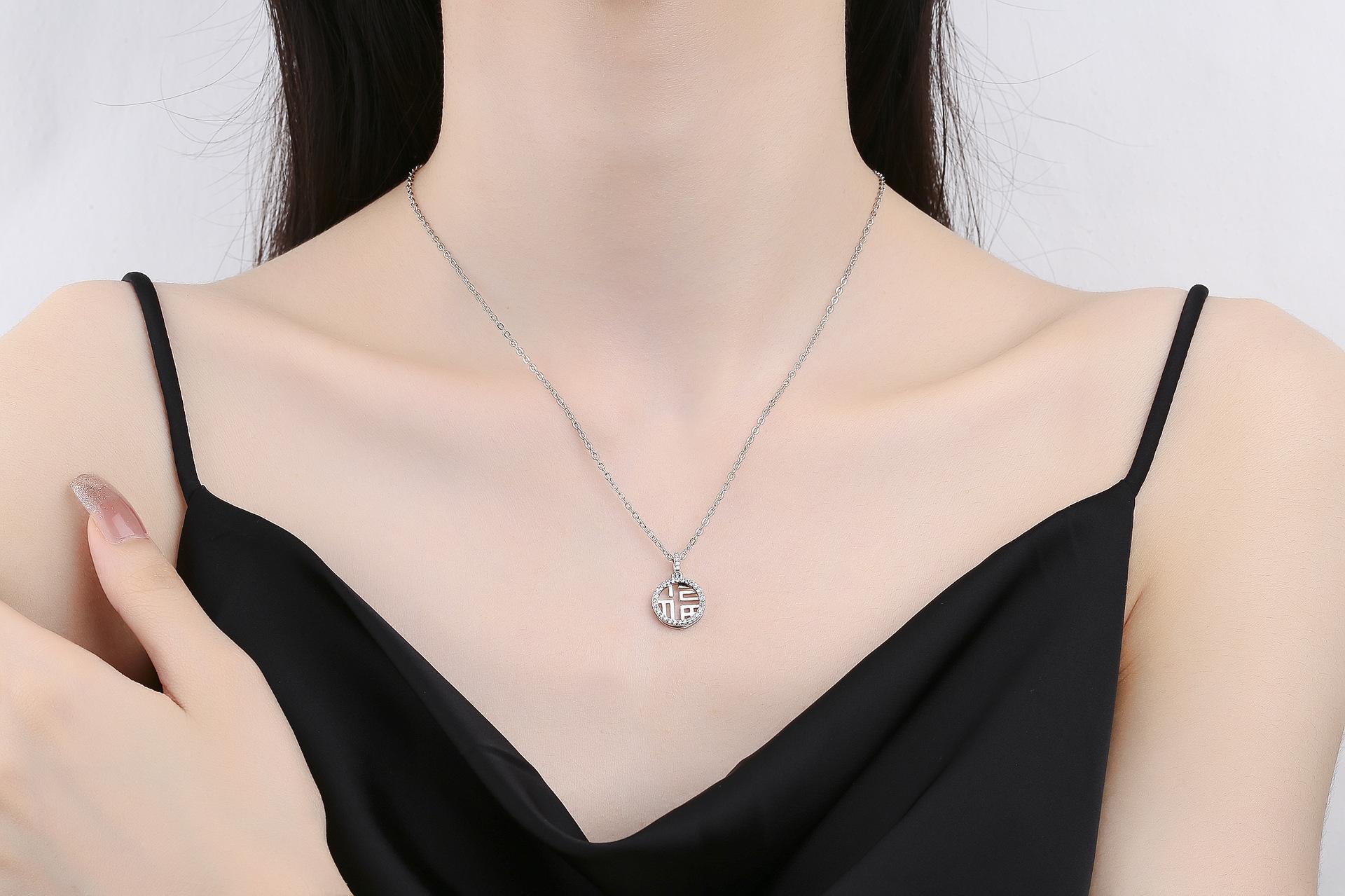 Collar colgante de doble capa con diseño hueco de personaje Fu para mujer, nueva marca Lucky Lucky, diseño de nicho de lujo ligero y sencillo, cadena de clavícula con sentido de moda.