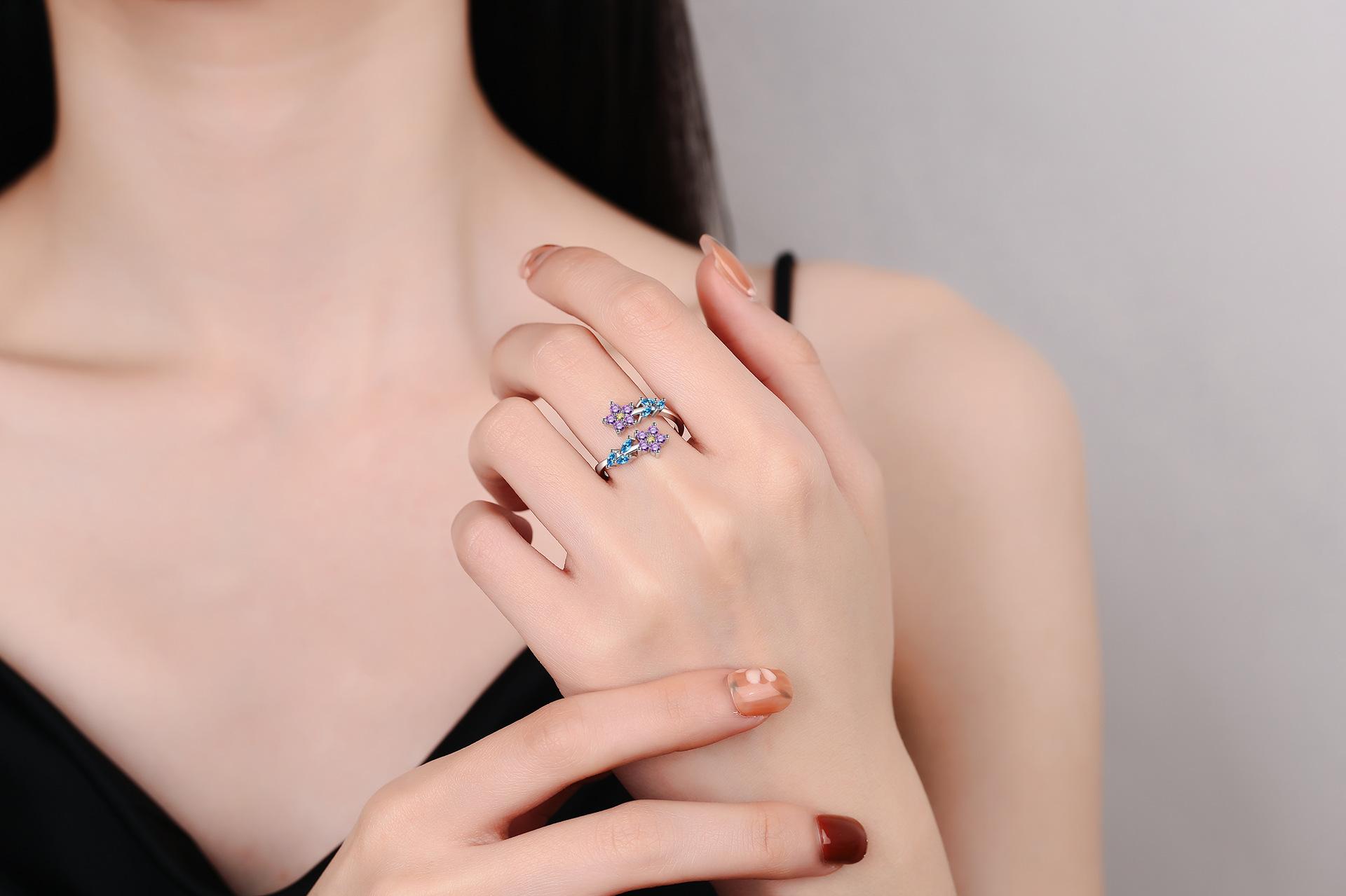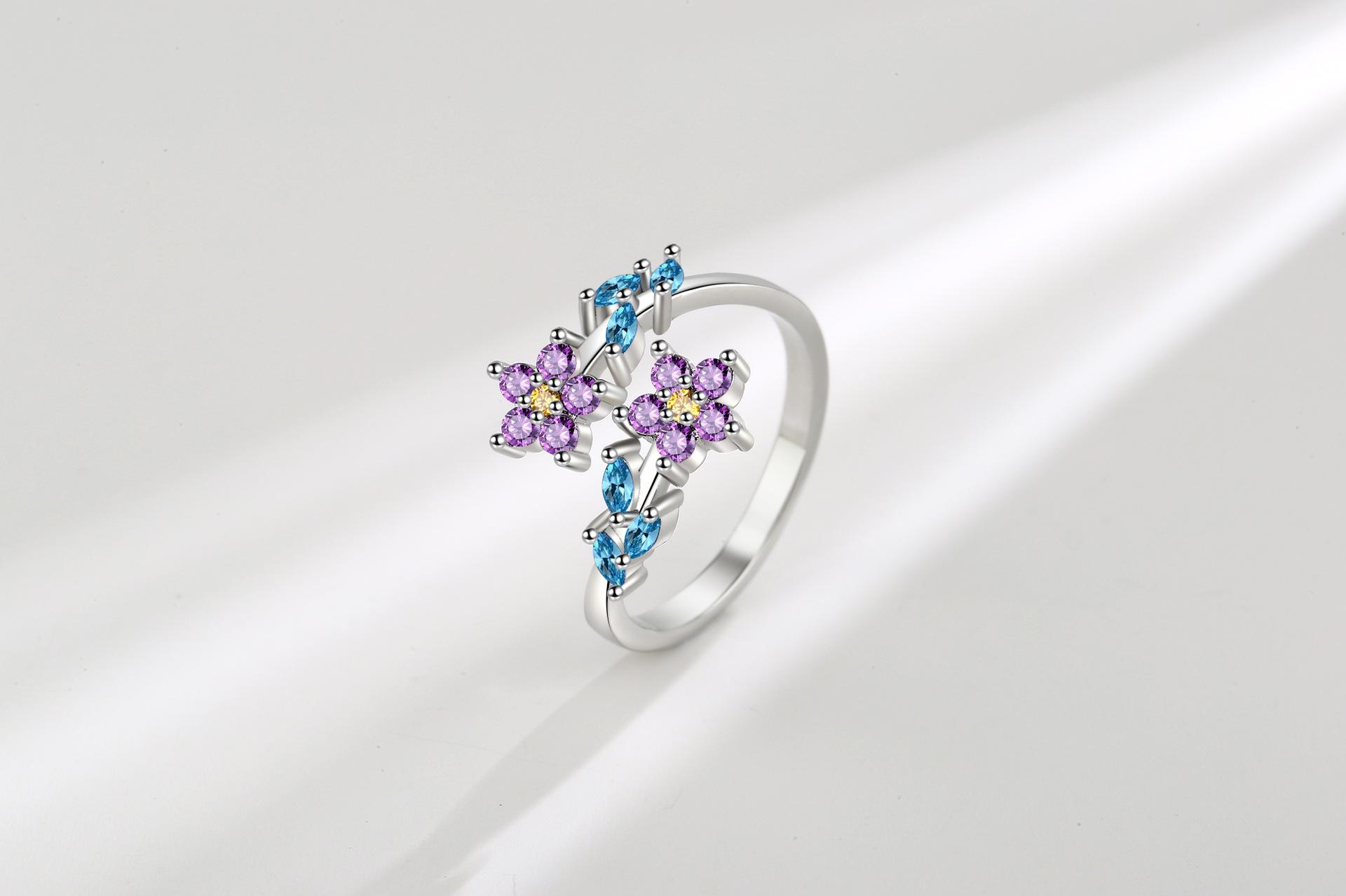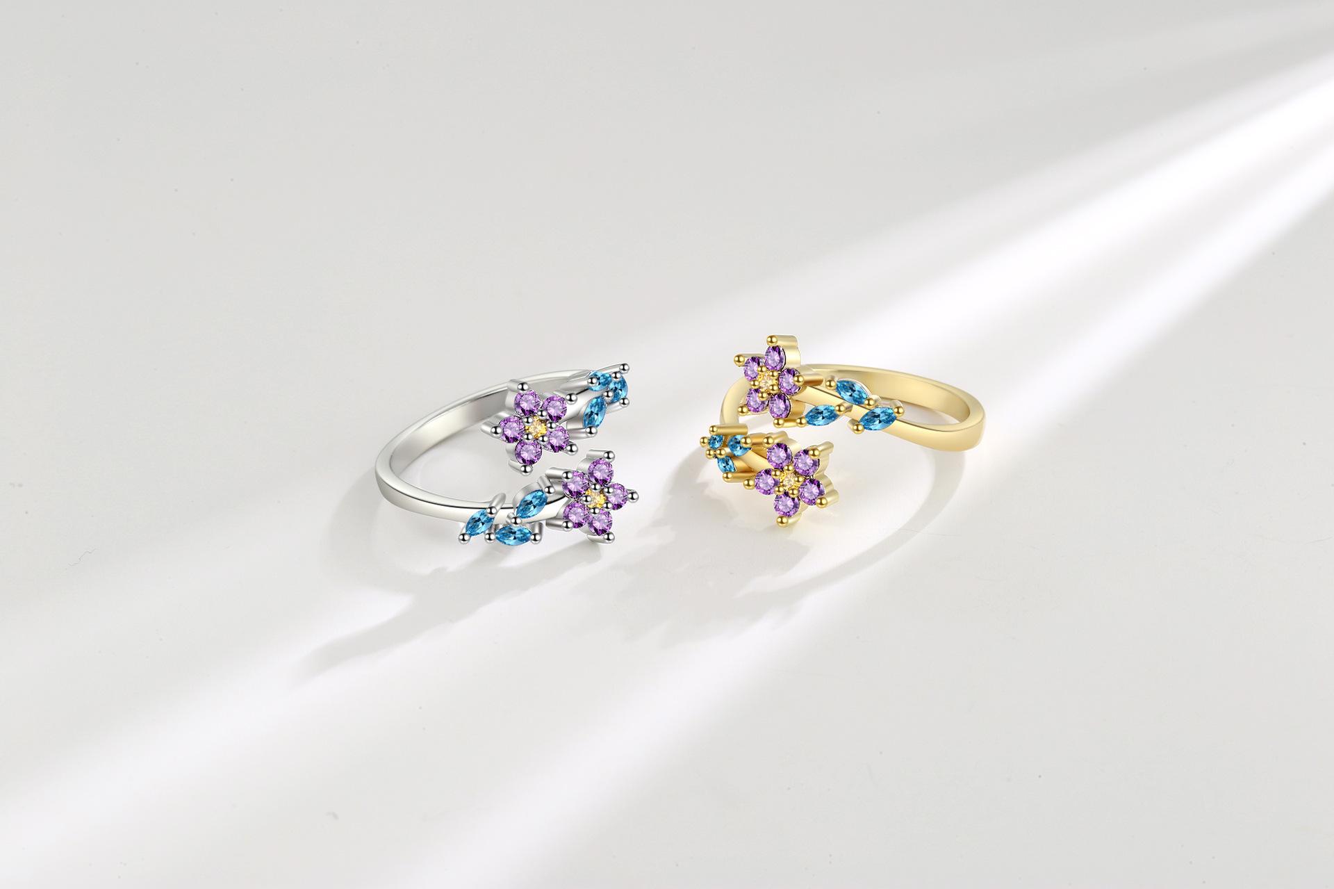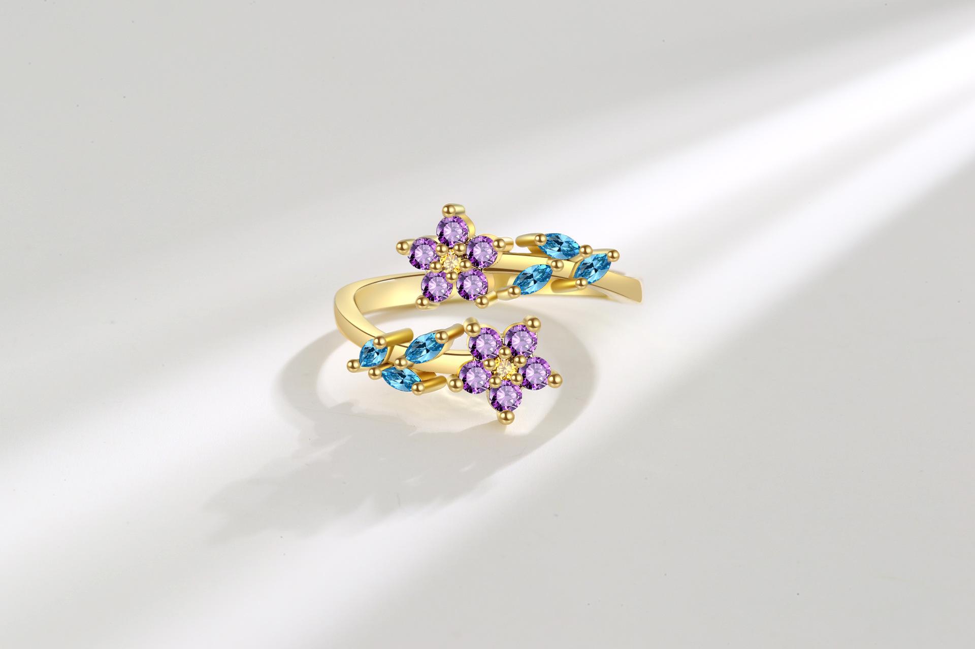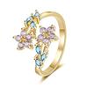 Wish Venta Caliente Transfronteriza Nuevo Anillo de Hoja de Flor para Mujer Moda Europea y Americana Creativo Circonita Incrustada Anillo Abierto para Dedo