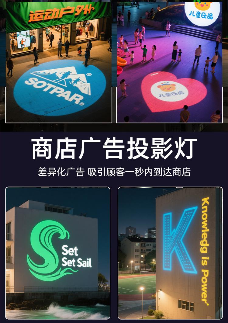 Lámpara de proyección publicitaria de alta potencia patrón de logotipo de pared exterior impermeable giratorio logotipo lámpara de proyección comercial