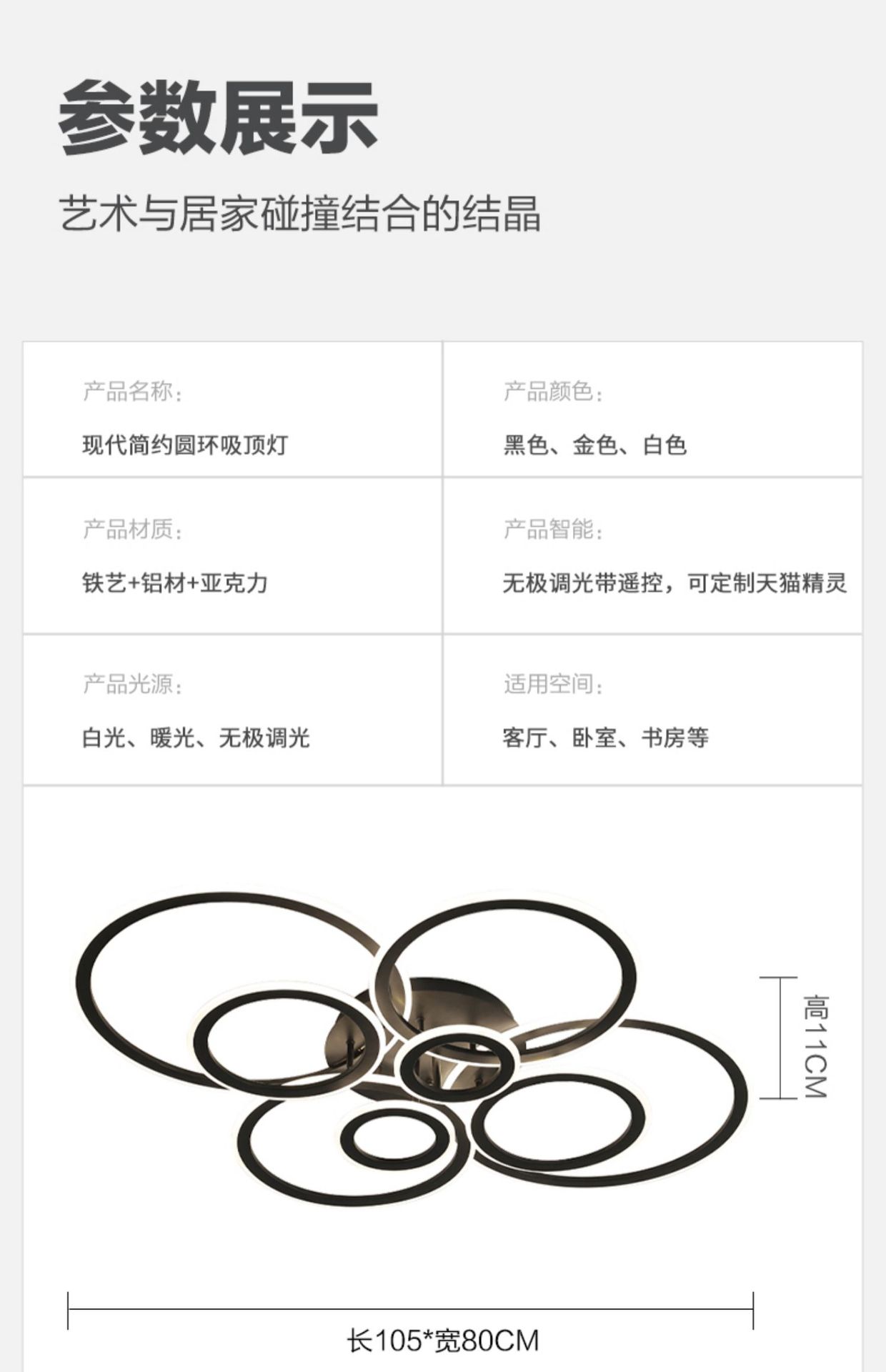 Lámpara de sala de estar nórdica simple moderna anillo dormitorio lámpara de techo lámpara de comedor luz de lujo atmósfera lámpara para toda la casa paquete