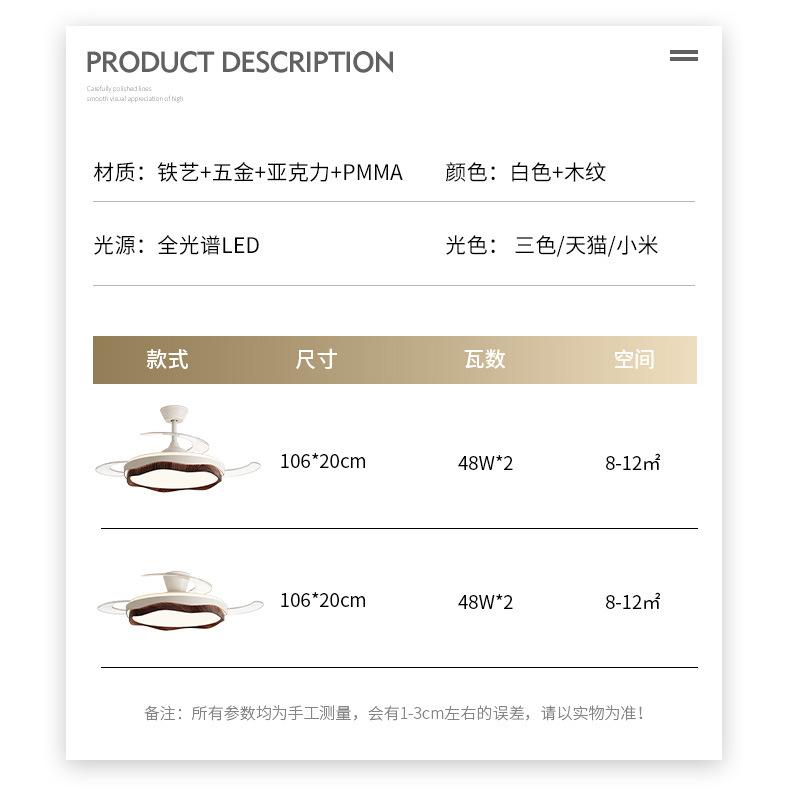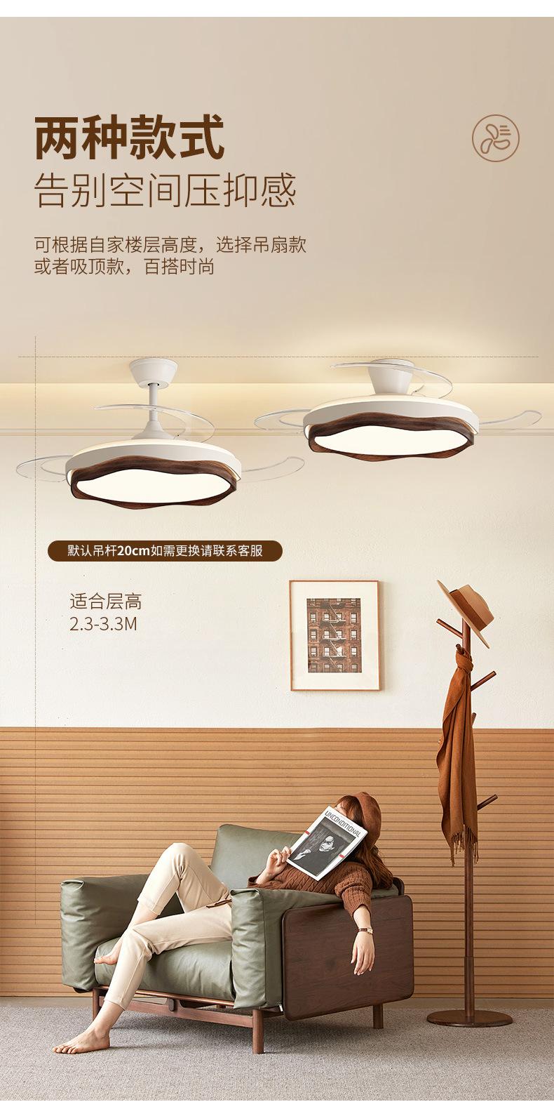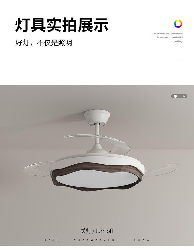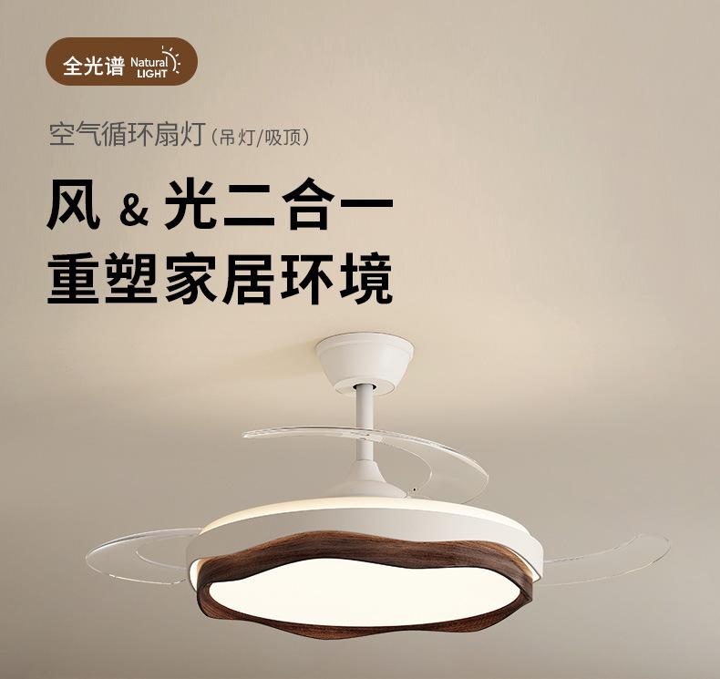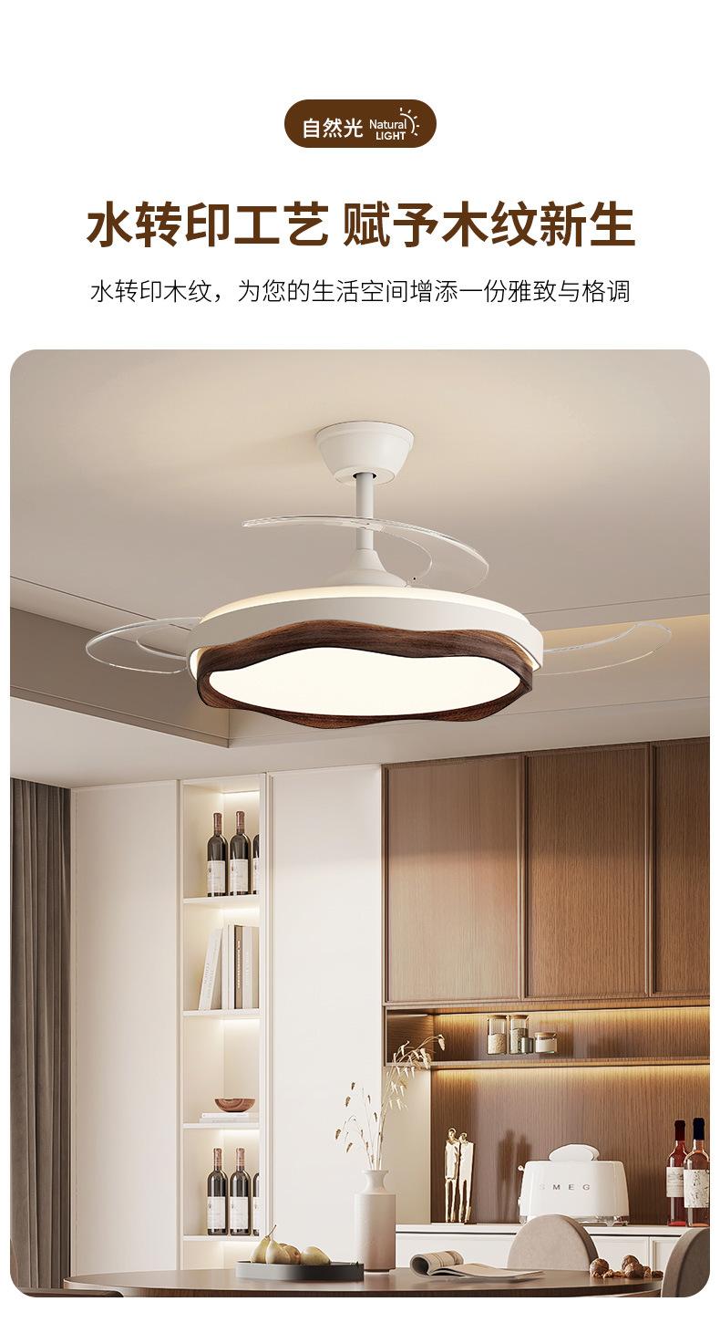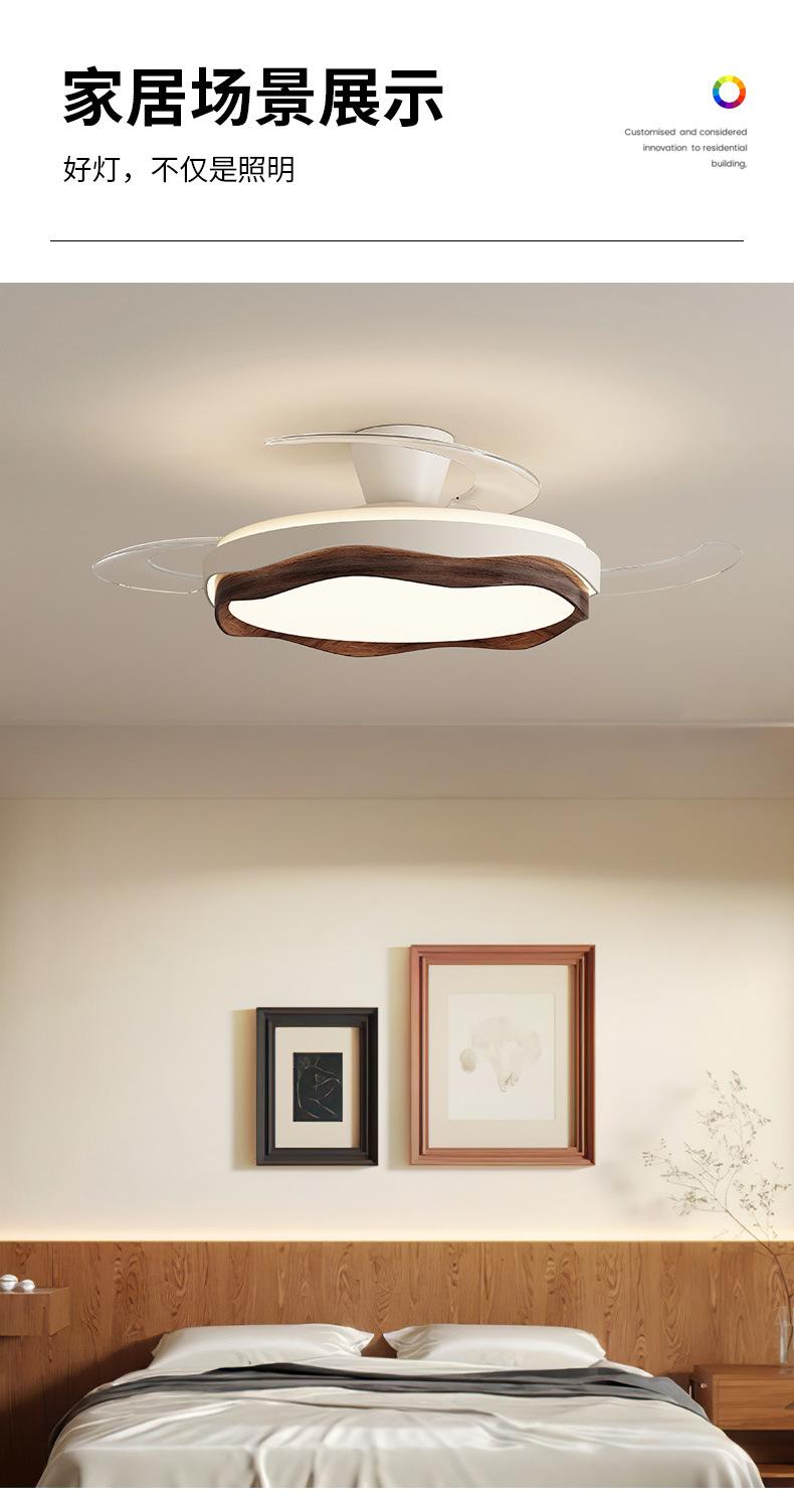 Lámpara de ventilador invisible 2024 nueva lámpara de ventilador de techo de color nogal para restaurante, comedor, dormitorio, lámpara de ventilador de techo integrada
