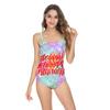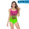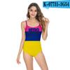 Traje de baño de Amazon 2020 con estampado artístico de palabras transfronterizas, bikini sexy europeo y americano con tirantes, traje de baño de una pieza sin espalda para mujer