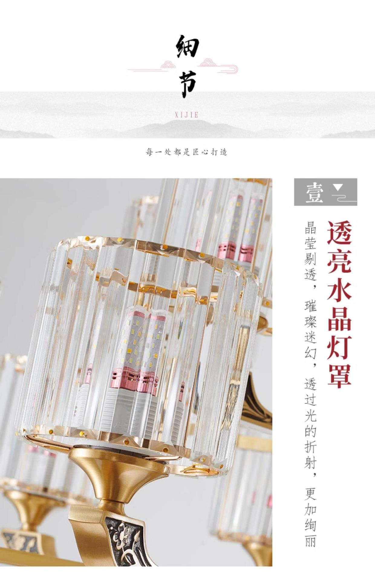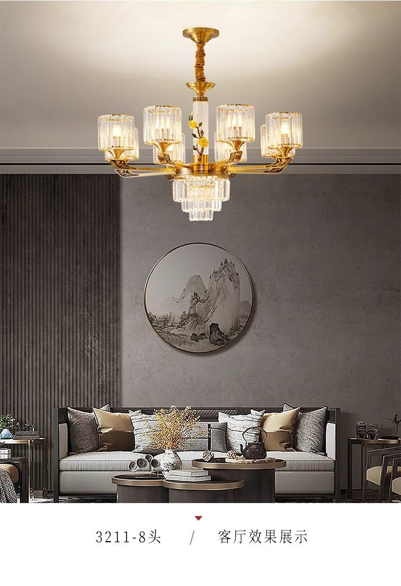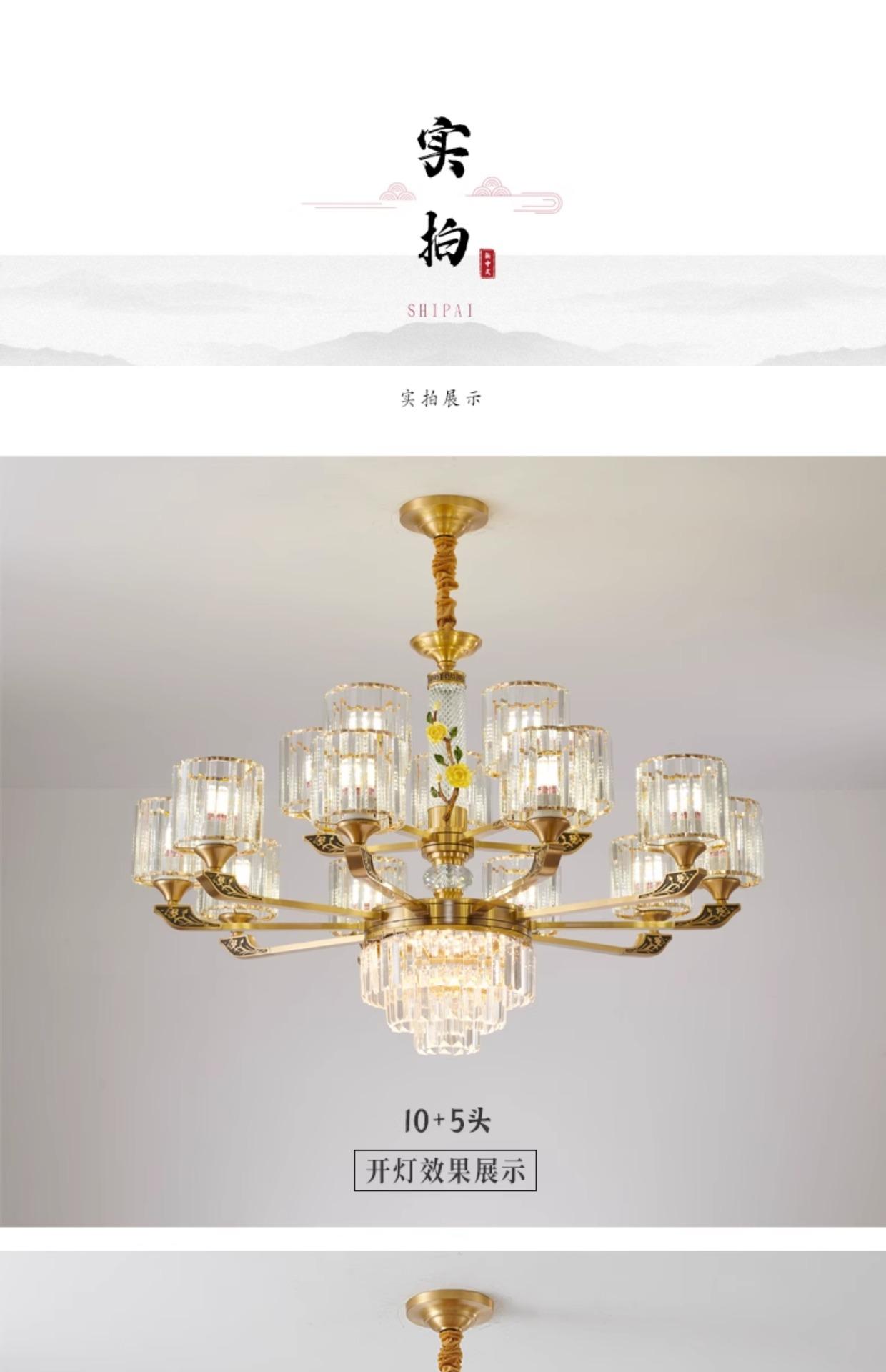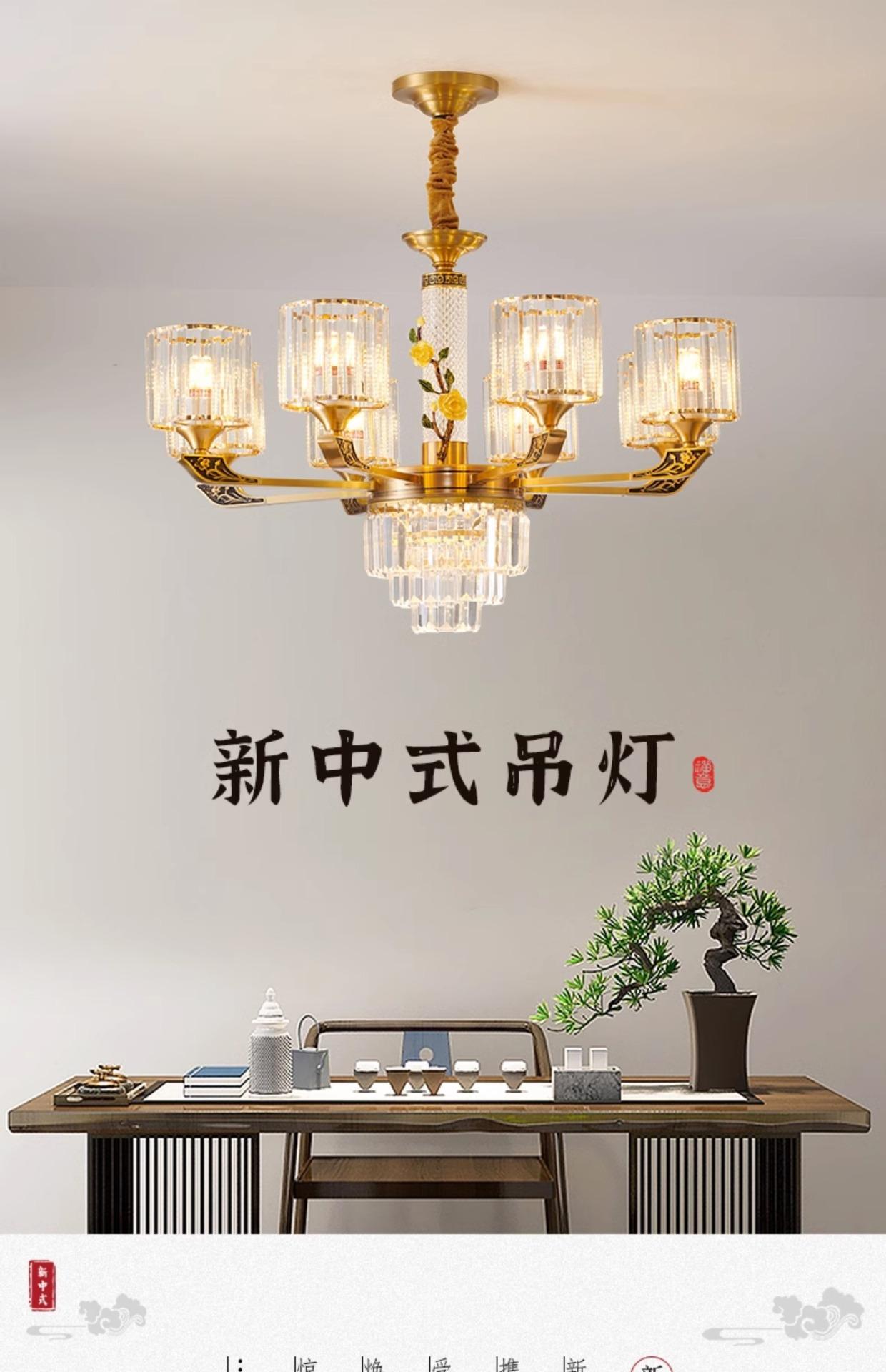 Lámpara de araña china nueva de cobre para sala de estar, moderna y sencilla, estilo chino, para comedor, villa, luz atmosférica, lámparas de cristal de lujo.
