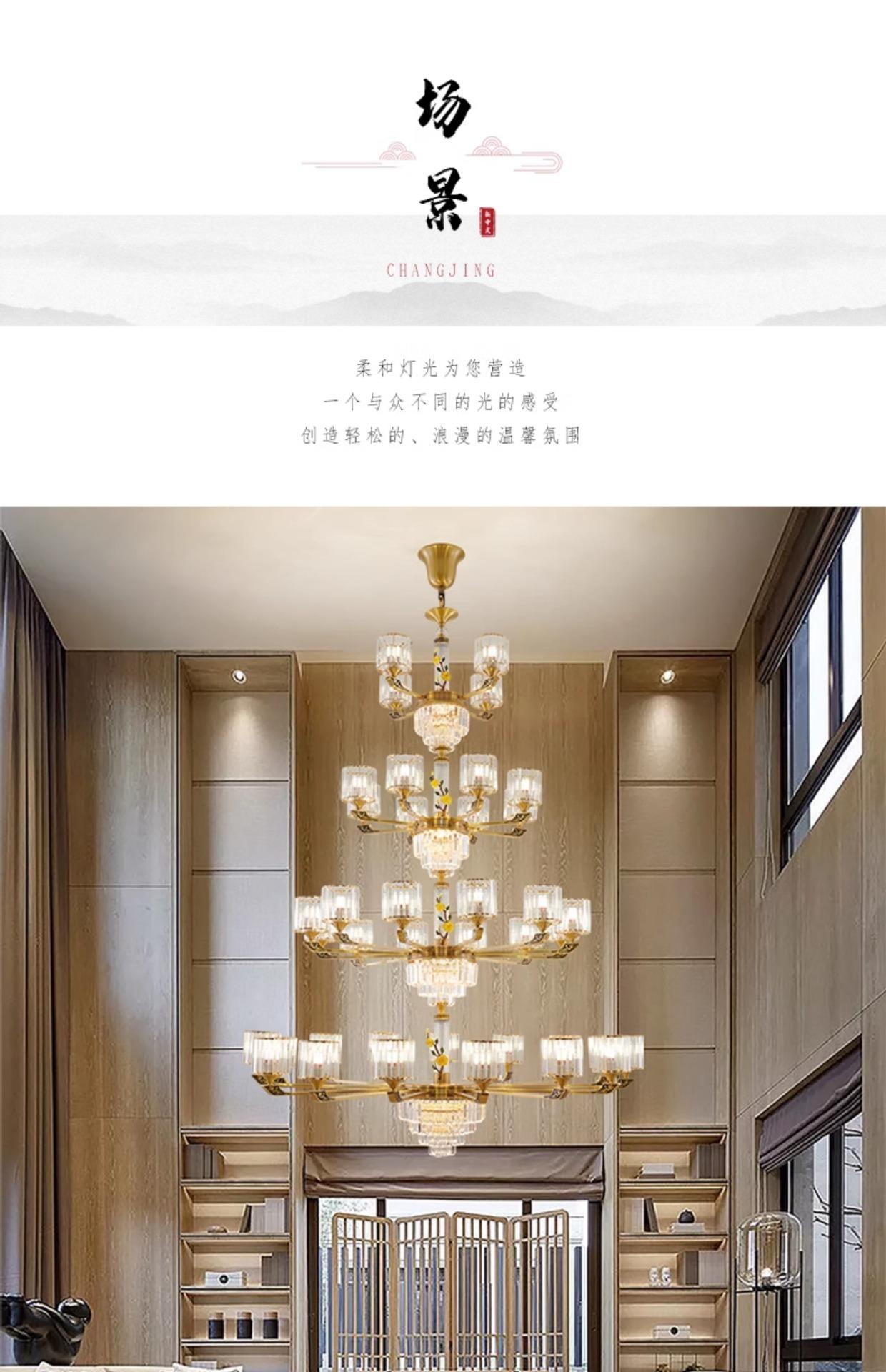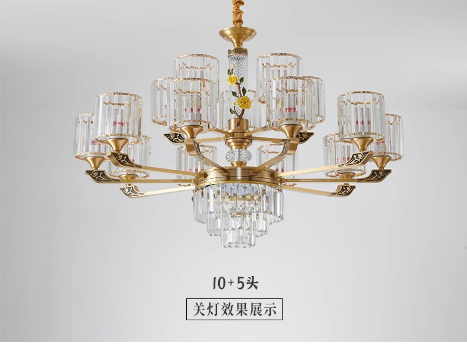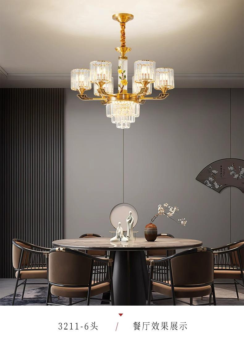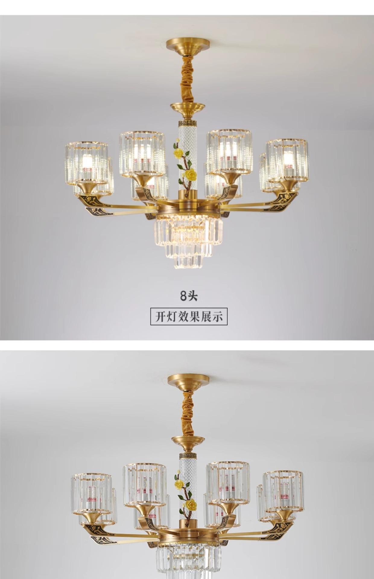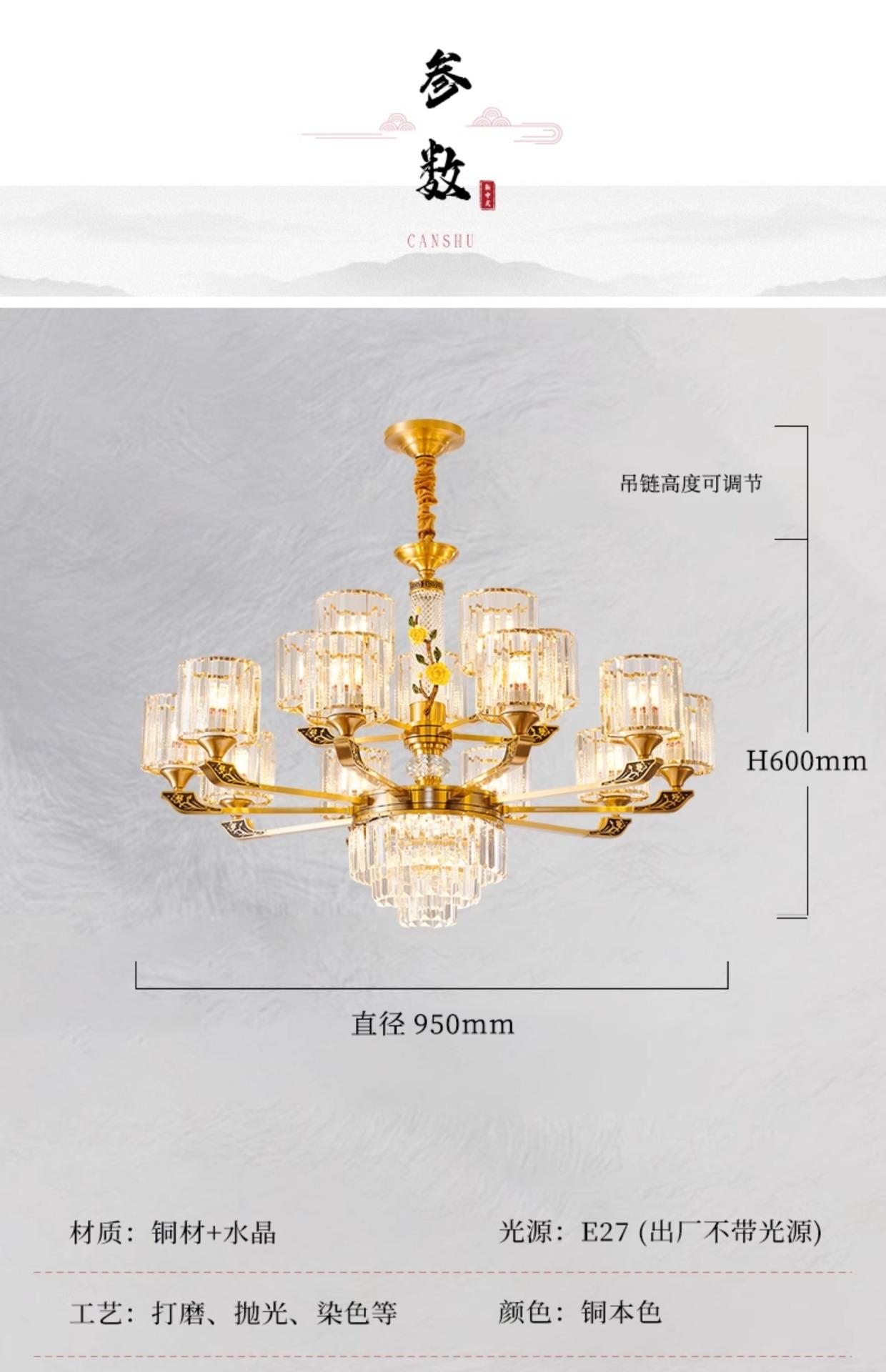 Lámpara de araña china nueva de cobre para sala de estar, moderna y sencilla, estilo chino, para comedor, villa, luz atmosférica, lámparas de cristal de lujo.