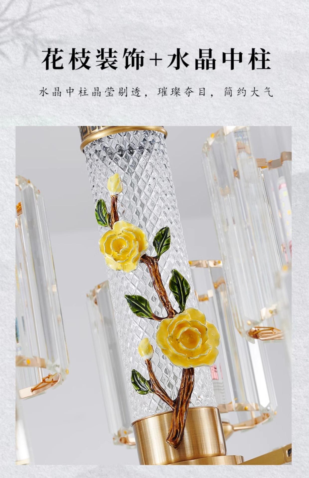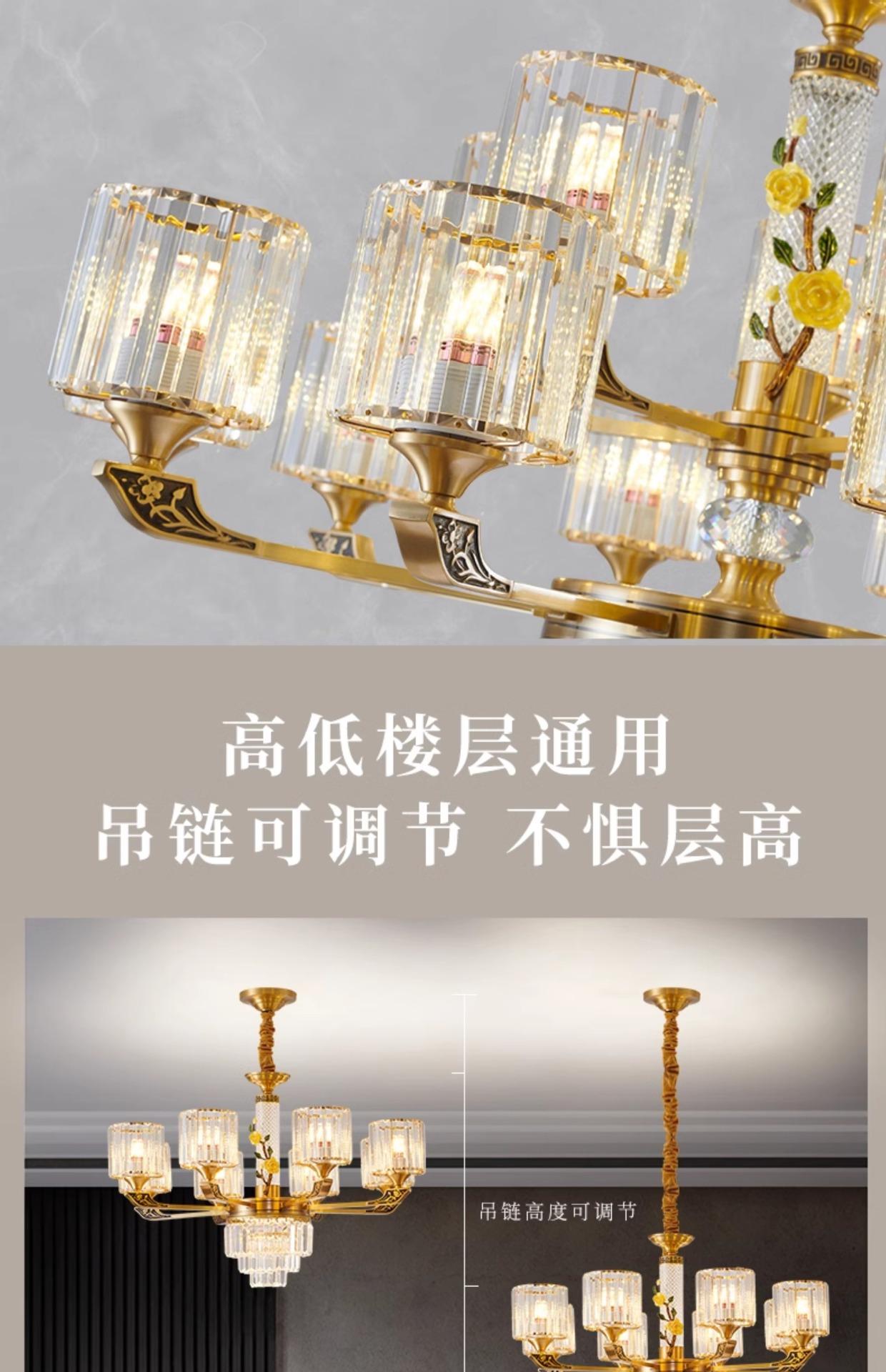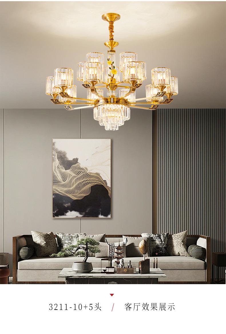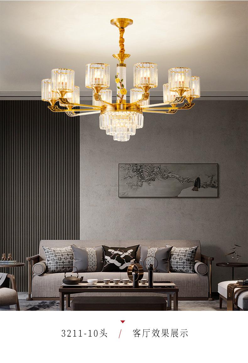 Lámpara de araña china nueva de cobre para sala de estar, moderna y sencilla, estilo chino, para comedor, villa, luz atmosférica, lámparas de cristal de lujo.