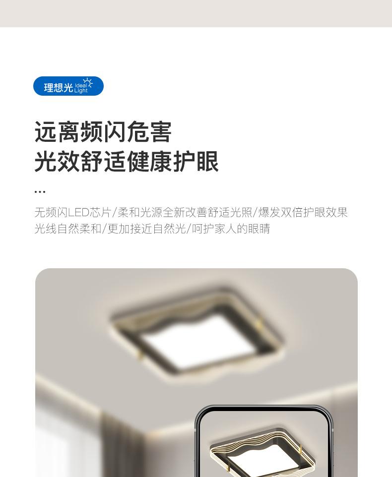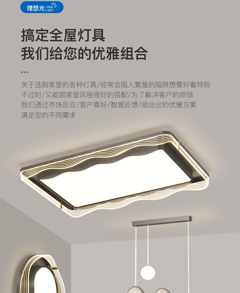 Lámpara de sala de estar moderna, sencilla, atmosférica, cuadrada, para dormitorio, estilo italiano, luz de lujo, protección ocular para toda la casa, paquete combinado