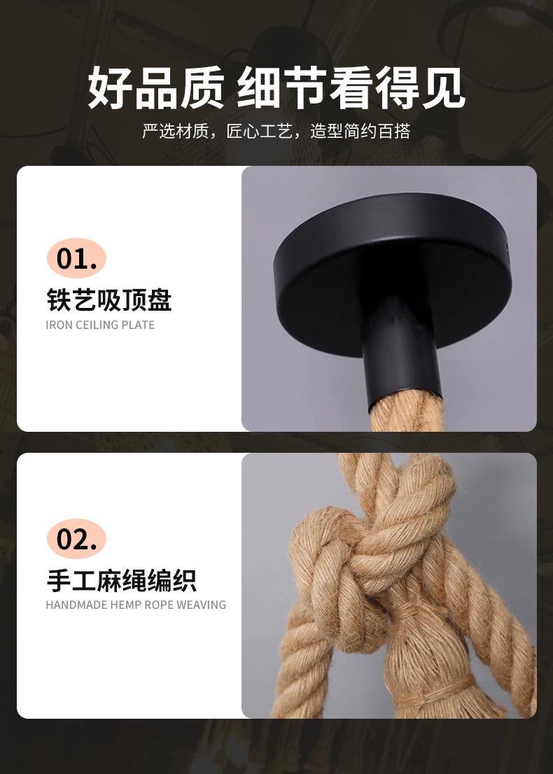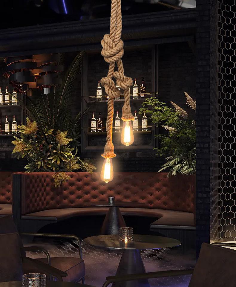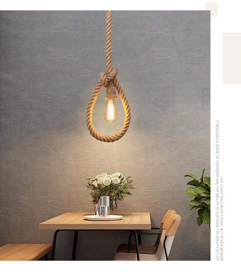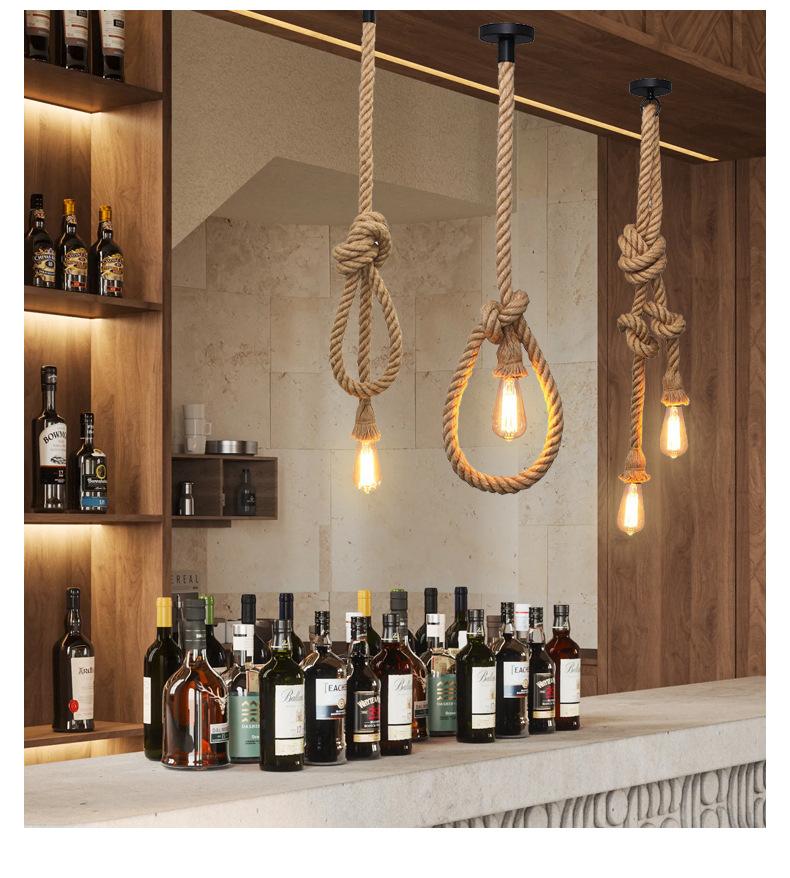 Lámpara de cuerda de cáñamo de un solo cabezal, estilo industrial vintage, para barra de viento, lámpara de cáñamo, lámpara de ventana para cafetería o restaurante, lámpara decorativa estilo country americano.