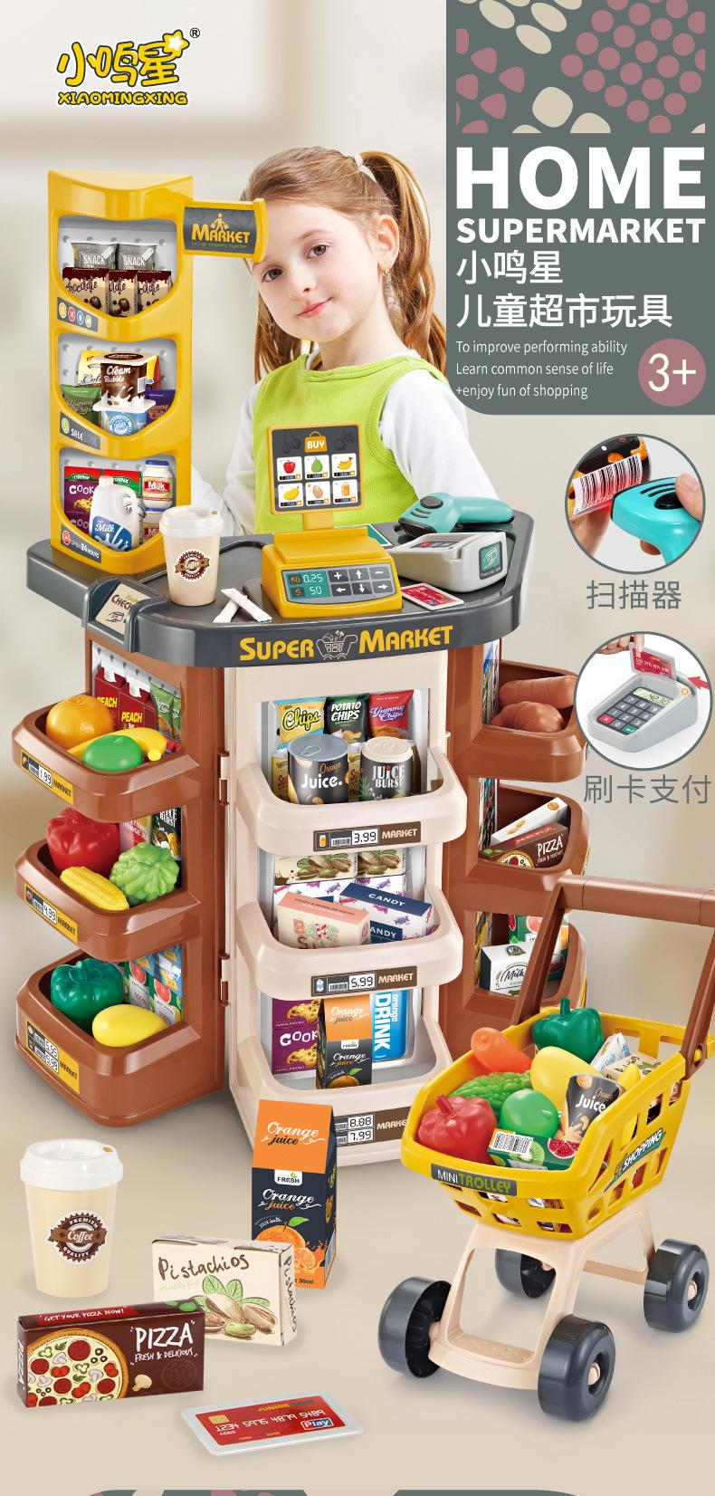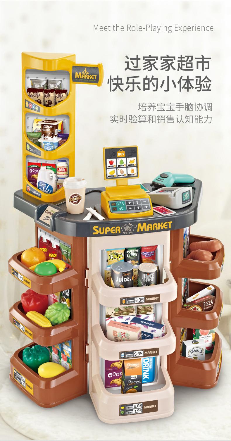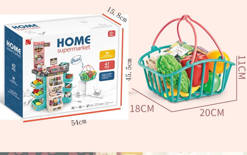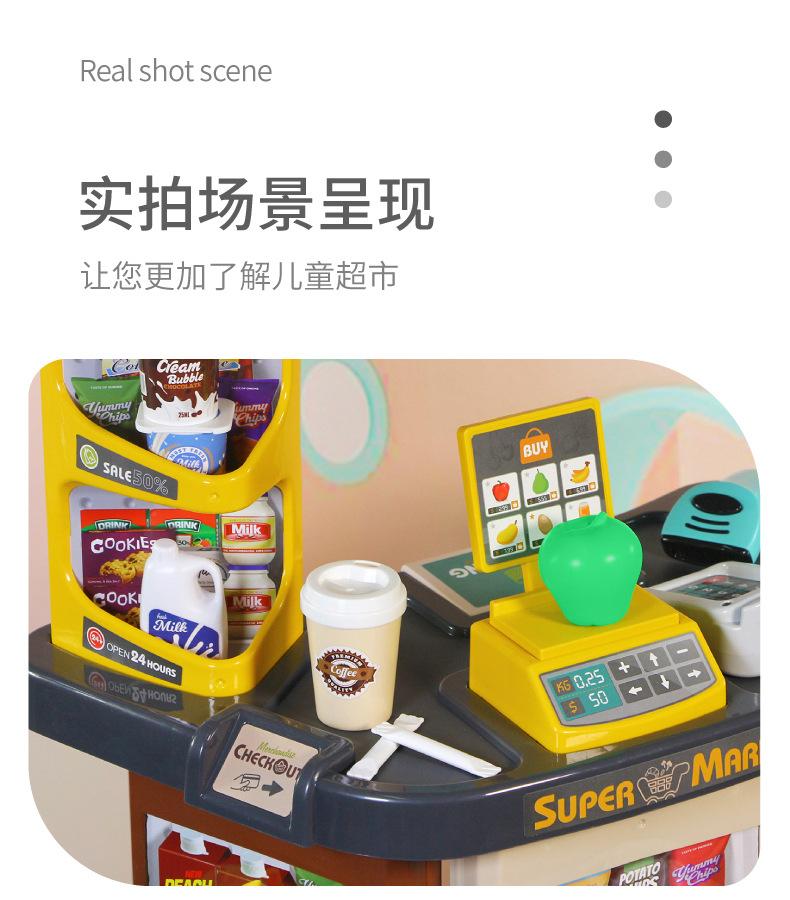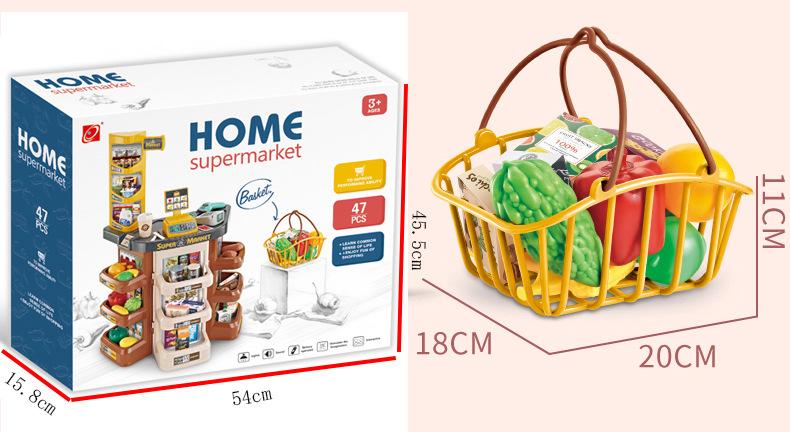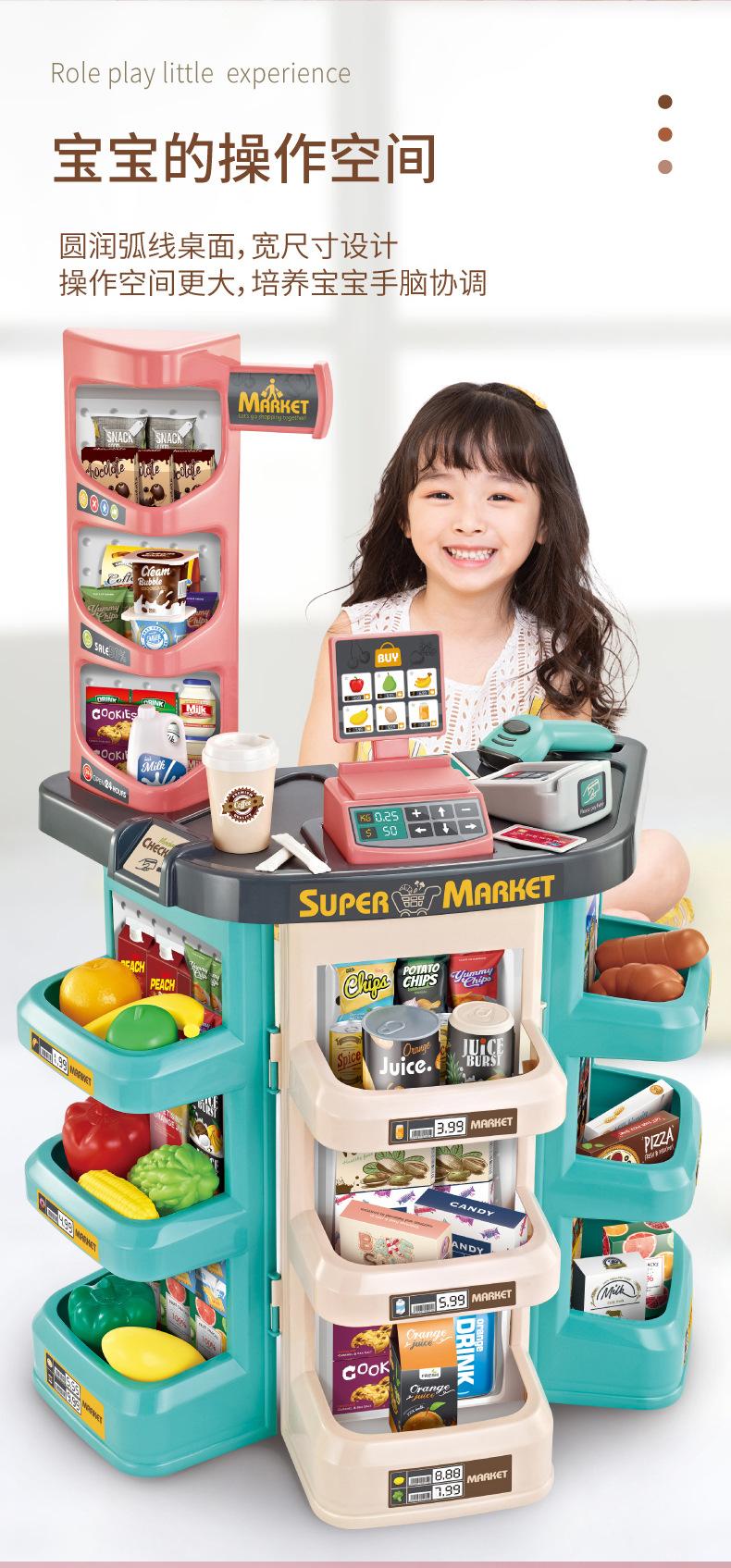 Conjunto de simulación de supermercado para niños transfronterizos con mostrador de ventas, cesta de compra, casa de juegos, escáner de supermercado, cajero, juguetes