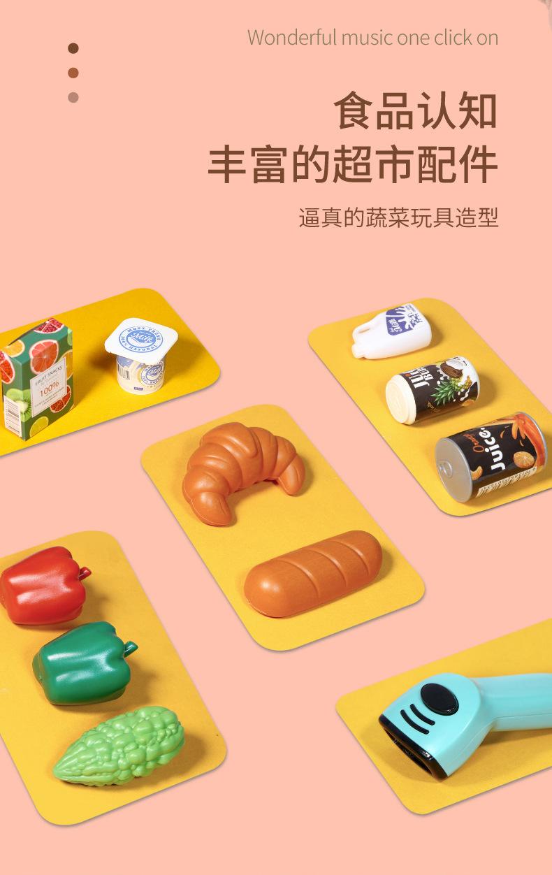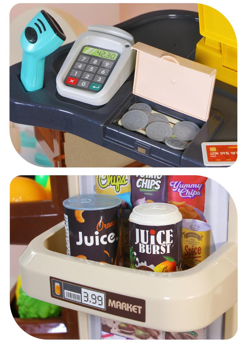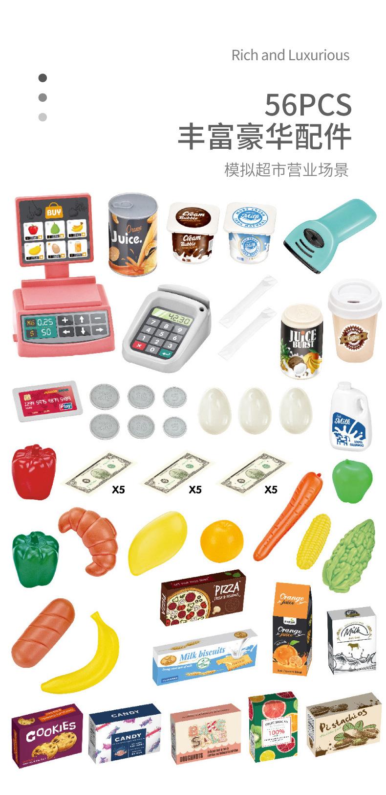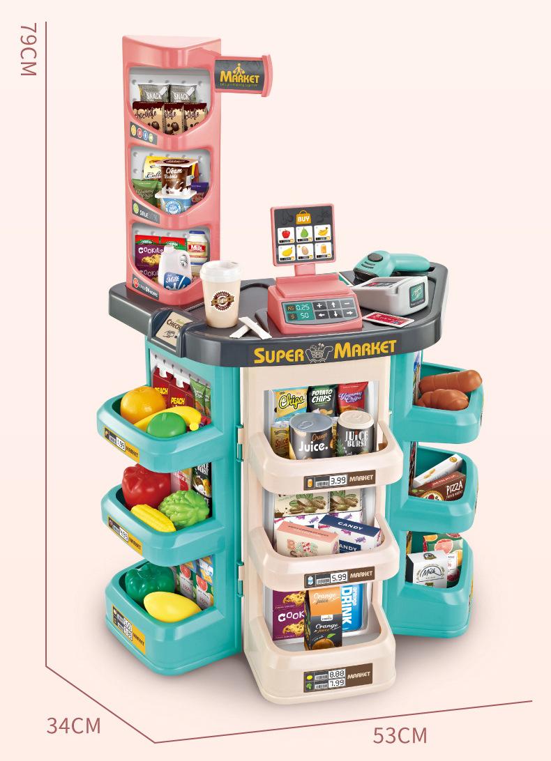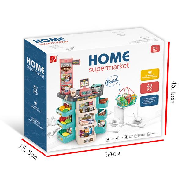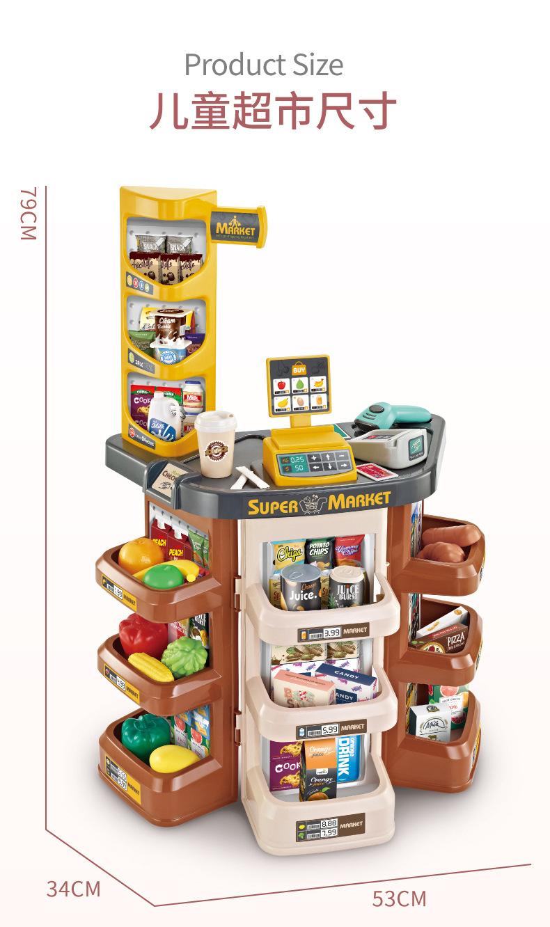 Conjunto de simulación de supermercado para niños transfronterizos con mostrador de ventas, cesta de compra, casa de juegos, escáner de supermercado, cajero, juguetes