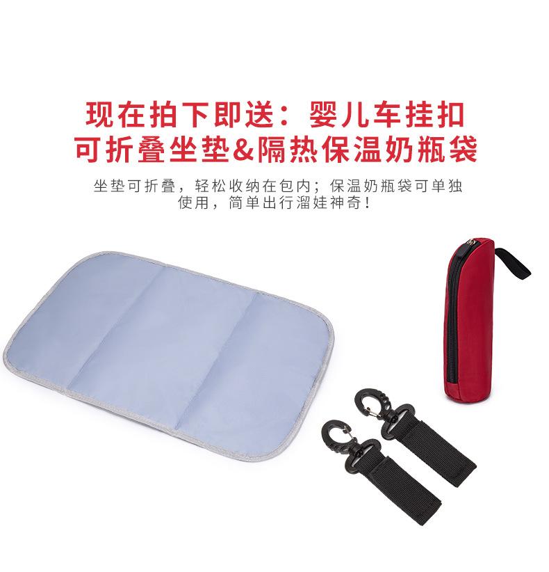 El producto incluye: bolsa, asiento para bebé, gancho para carriola y bolsa térmica independiente para biberón