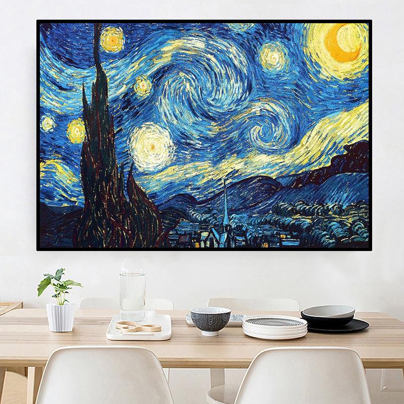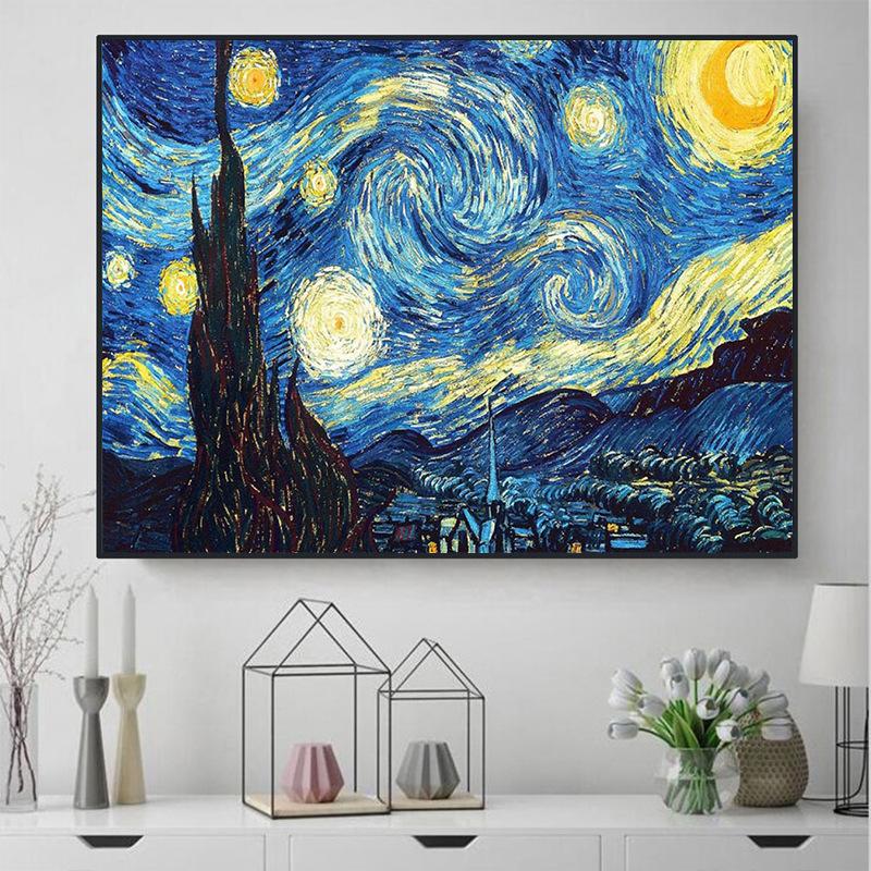 Pintura de paisaje con diamantes, nueva 2023, Van Gogh, cielo estrellado, 5D, punto de cruz, diamante adhesivo, estilo nórdico, para sala de estar, dormitorio y comedor.
